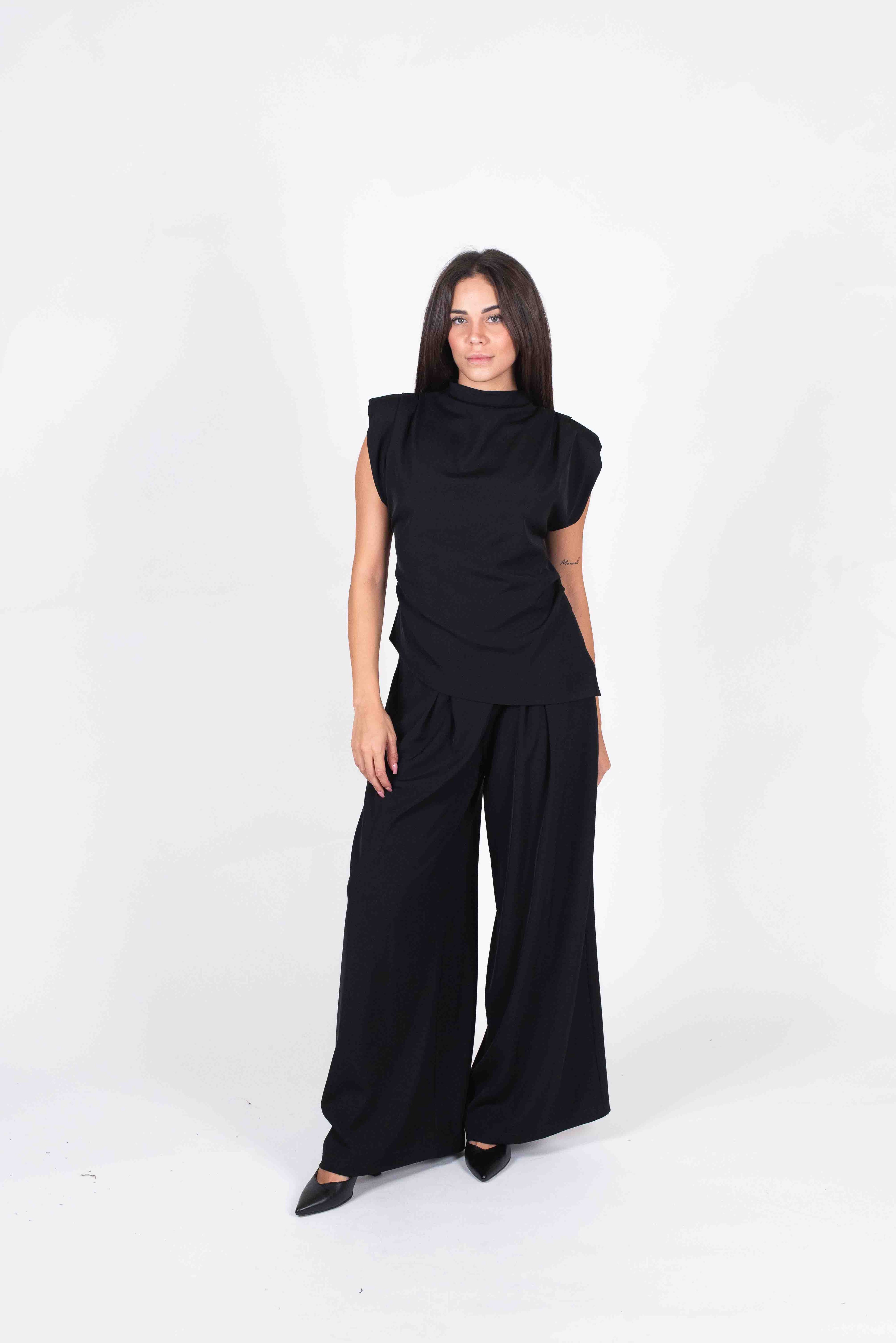 Completo Top e pantalone palazzo con elastico in vita dietro.