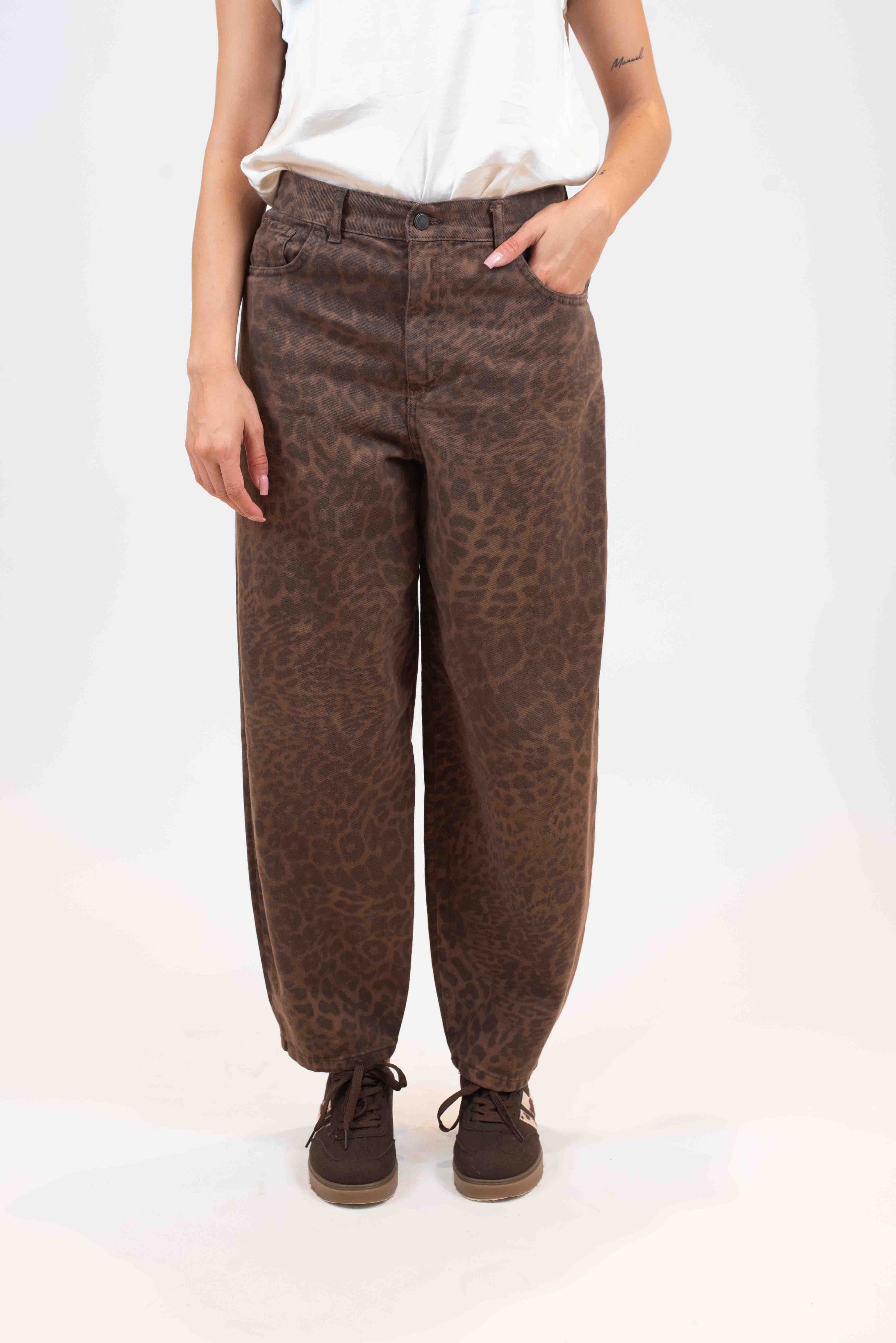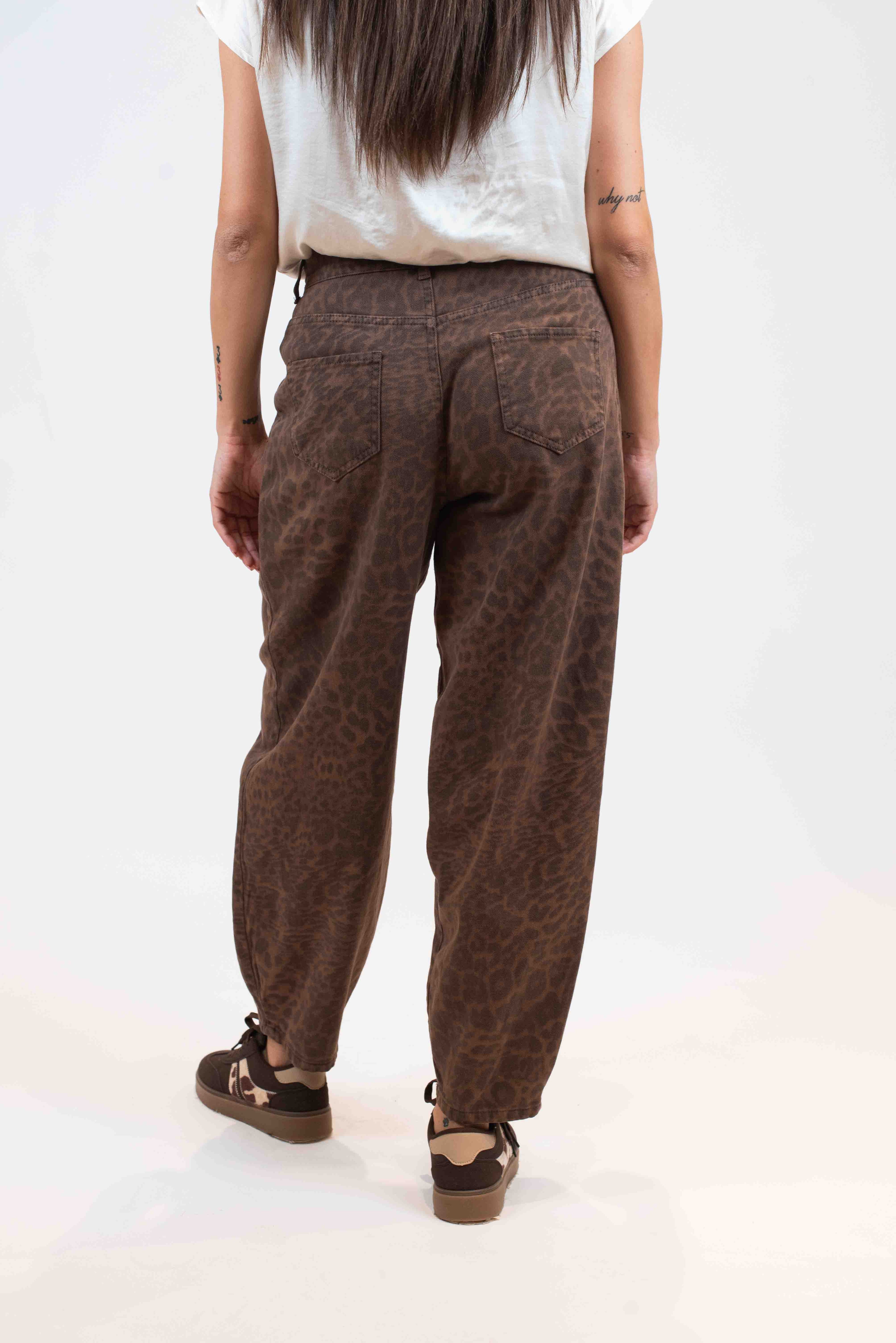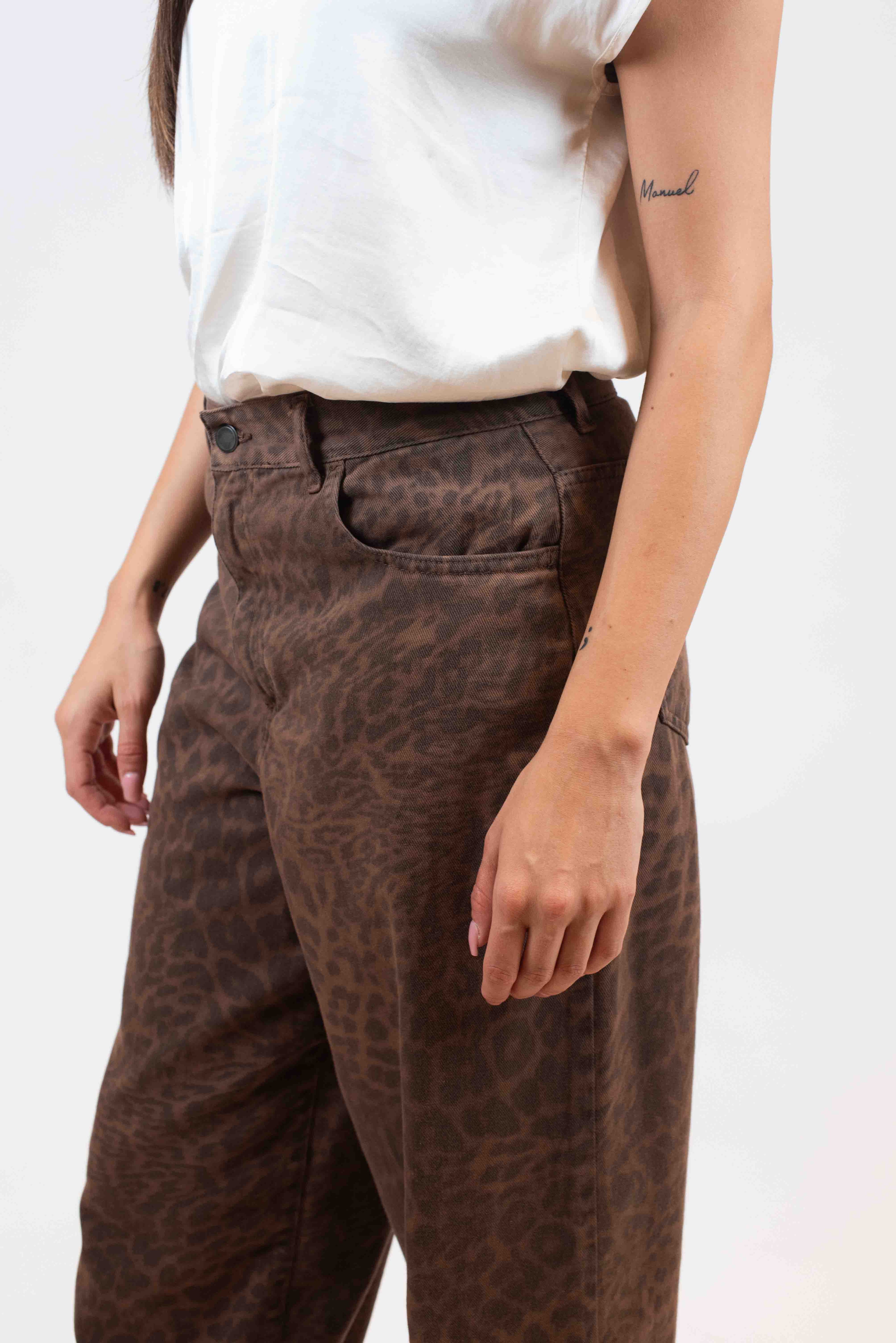 Pantalone 5 tasche stampa maculata.