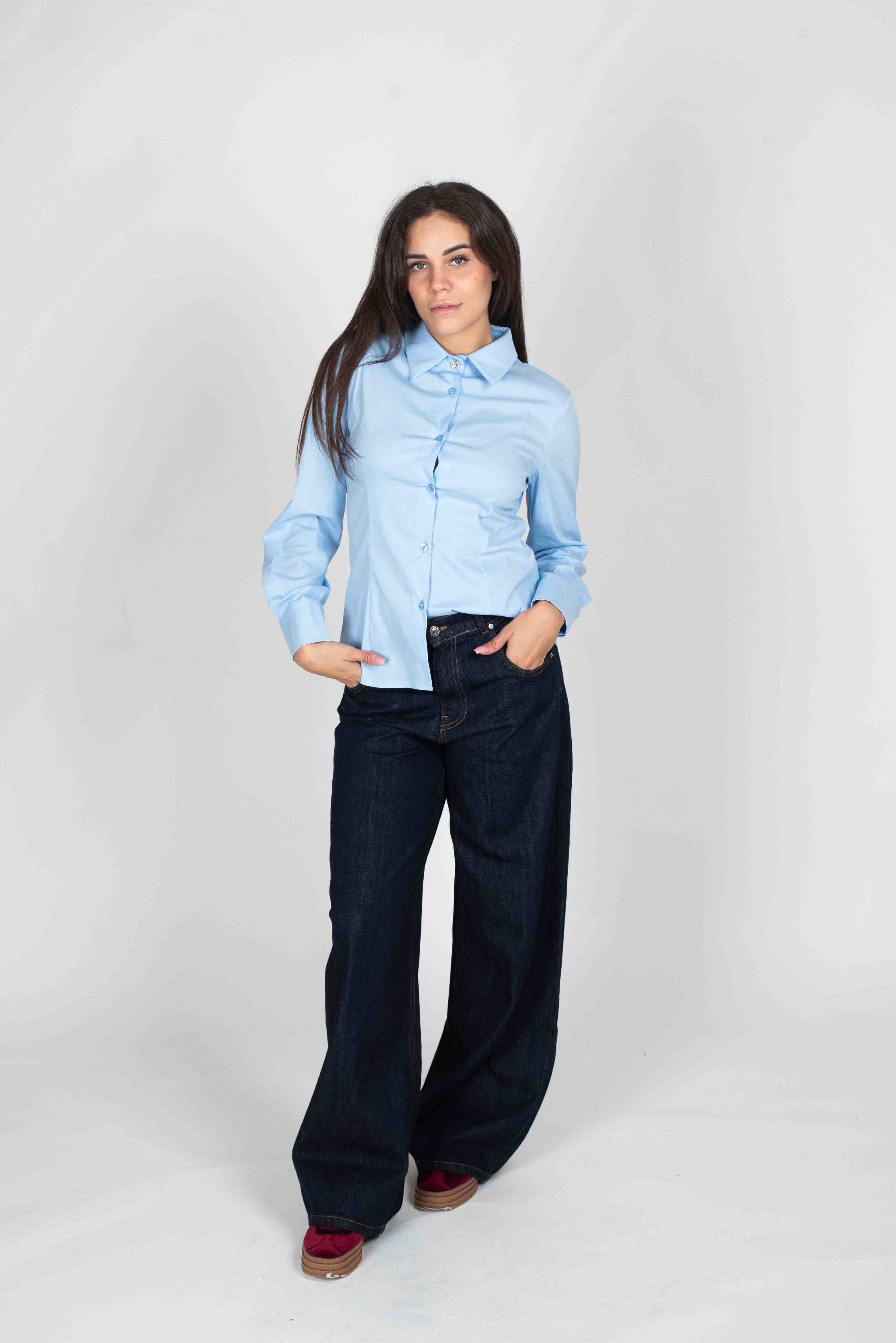 Susy Mix Camicia Bottone Gioiello - CELESTE