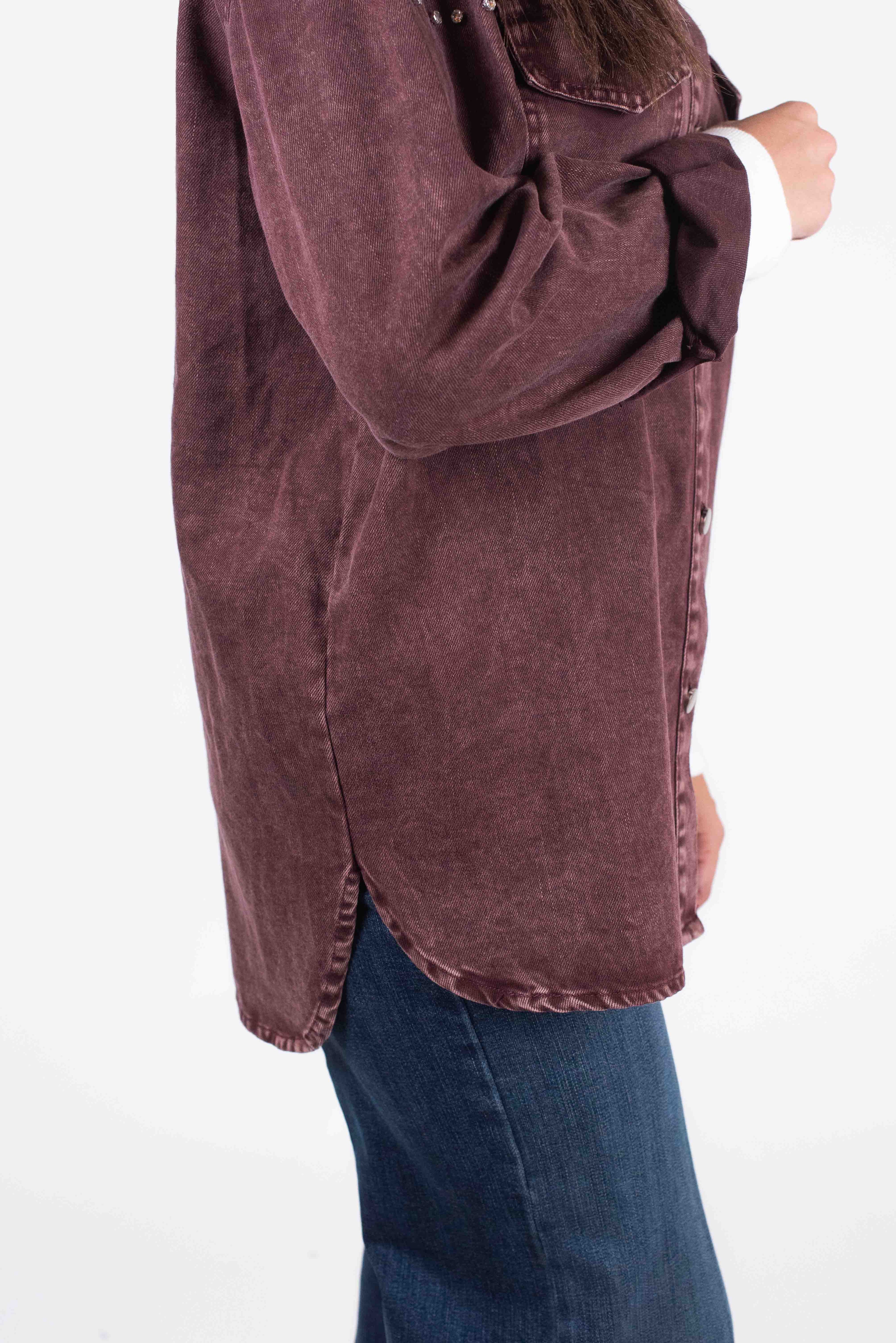 Camicia denim con tasche frontali e strass nella parte superiore