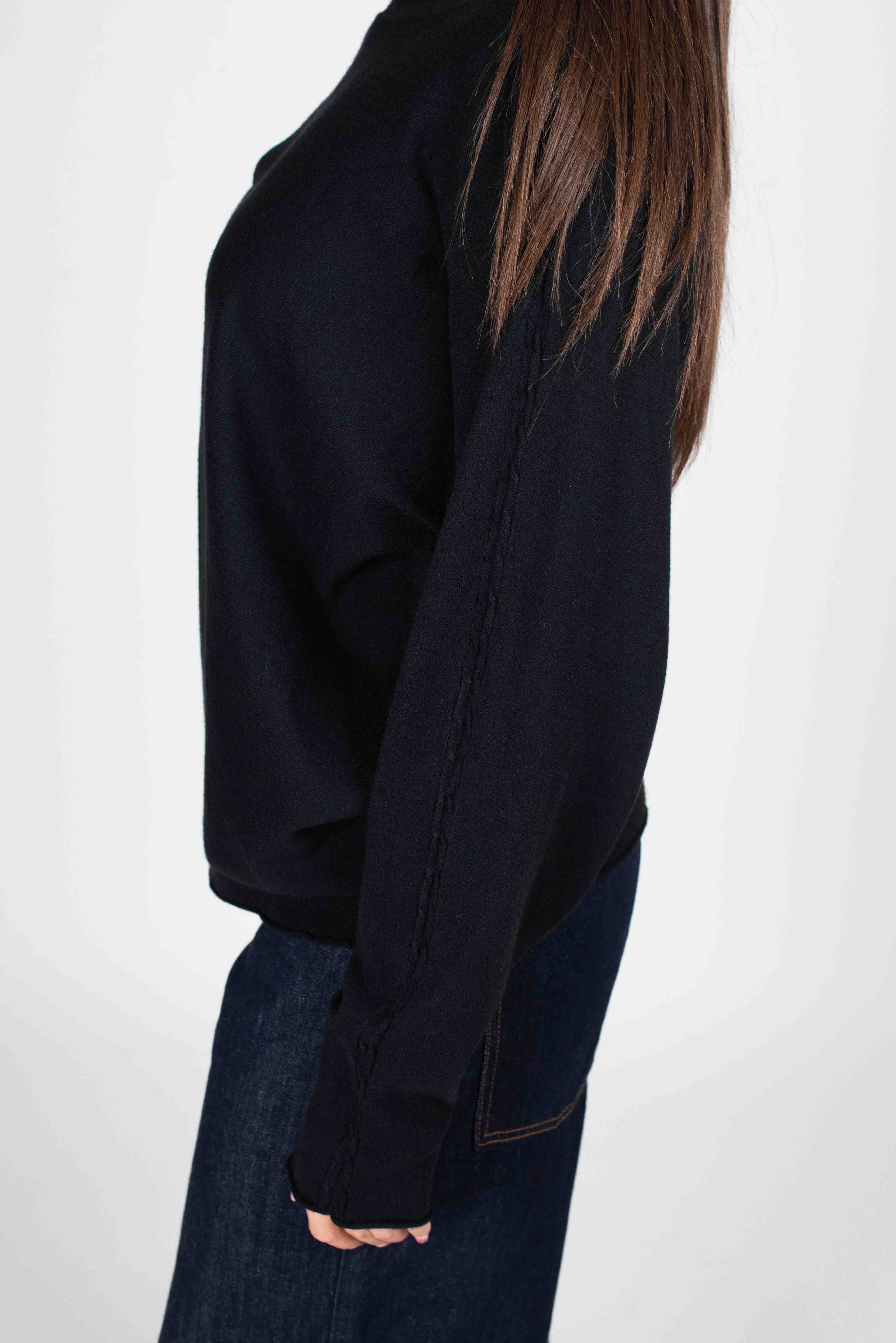 Via Vai Maglia Treccia Manica - NERO