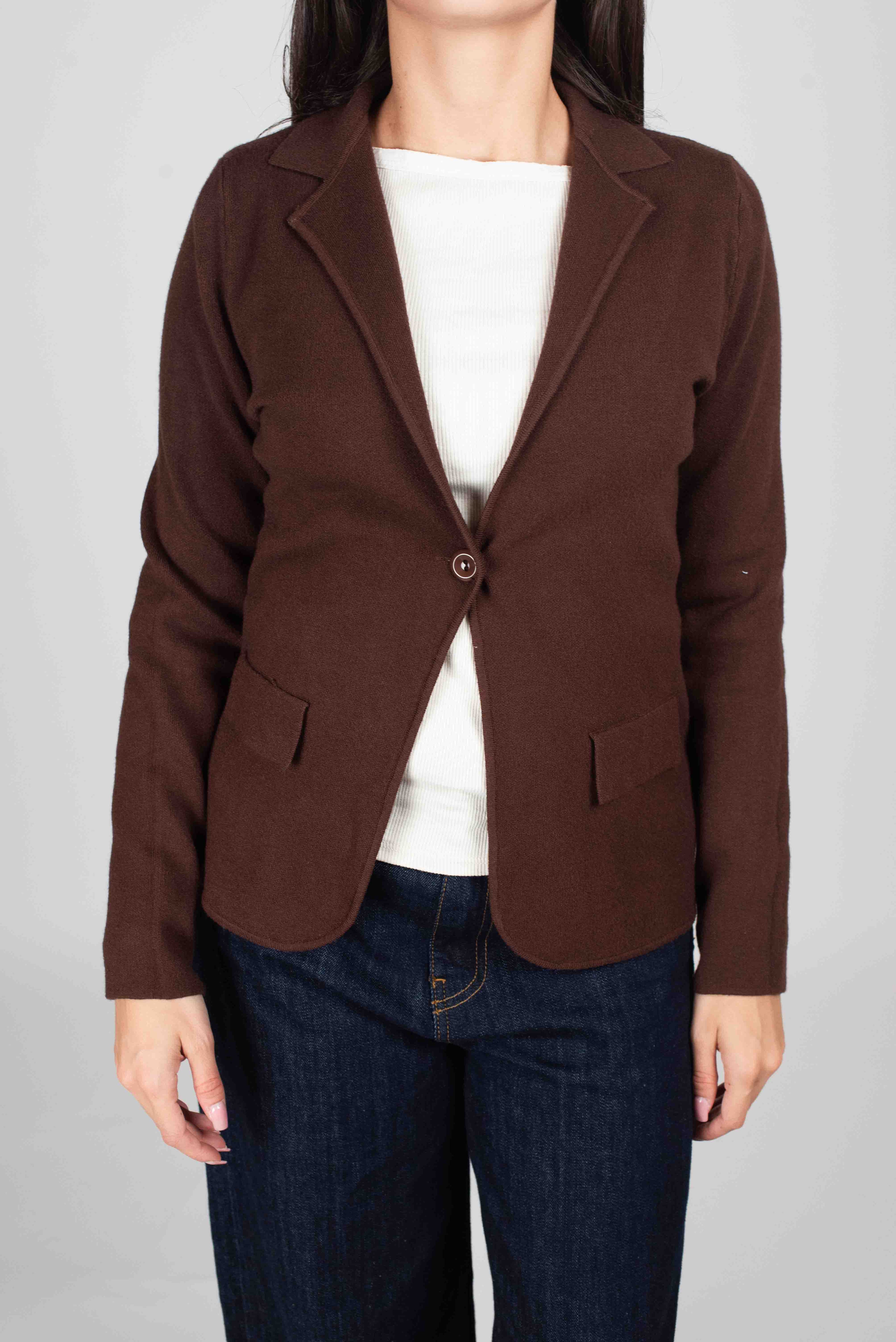 Giacca maglia 1 bottone con pattina sulla tasca.