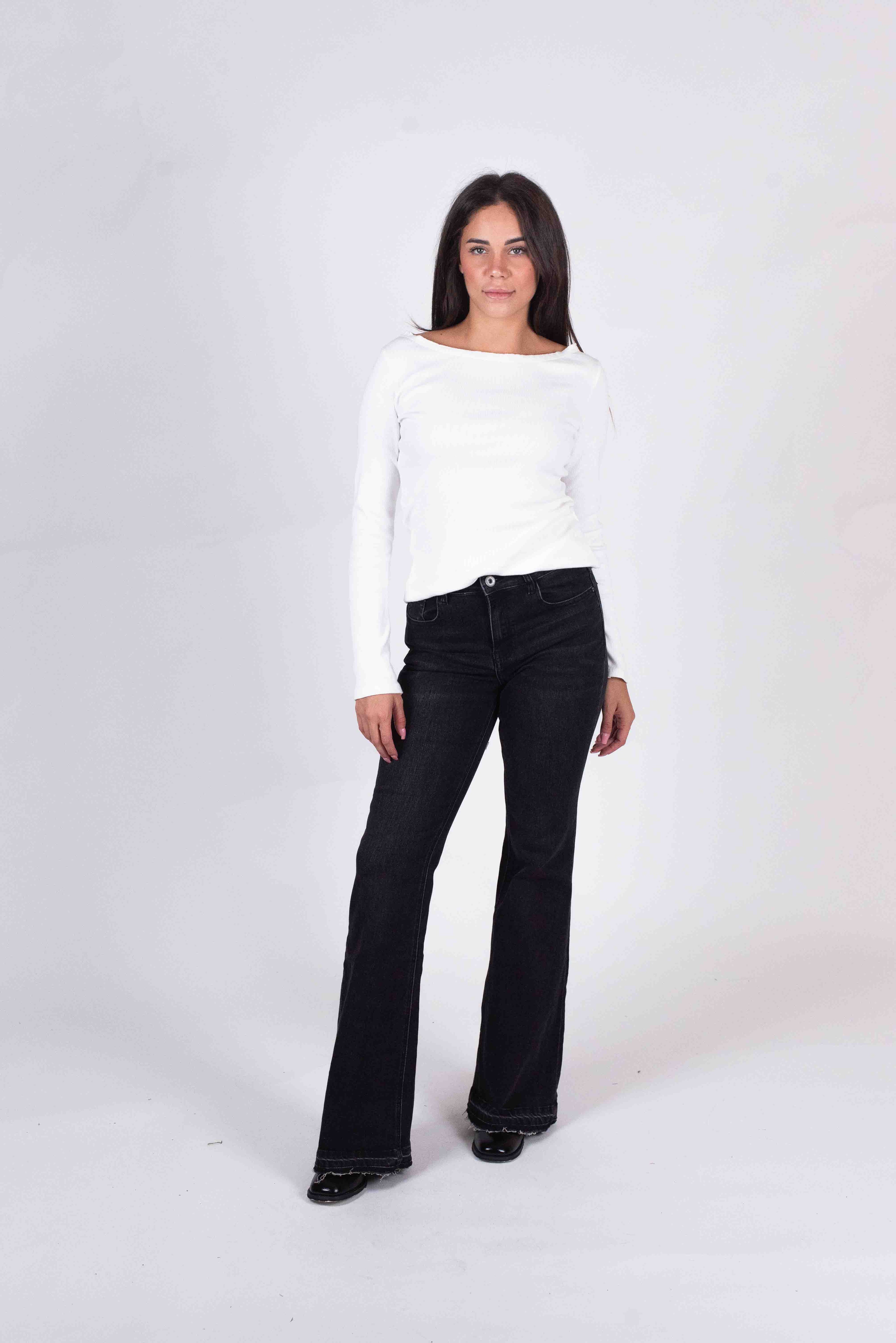Jeans zampa 5 tasche elasticizzato orlo vivo.
