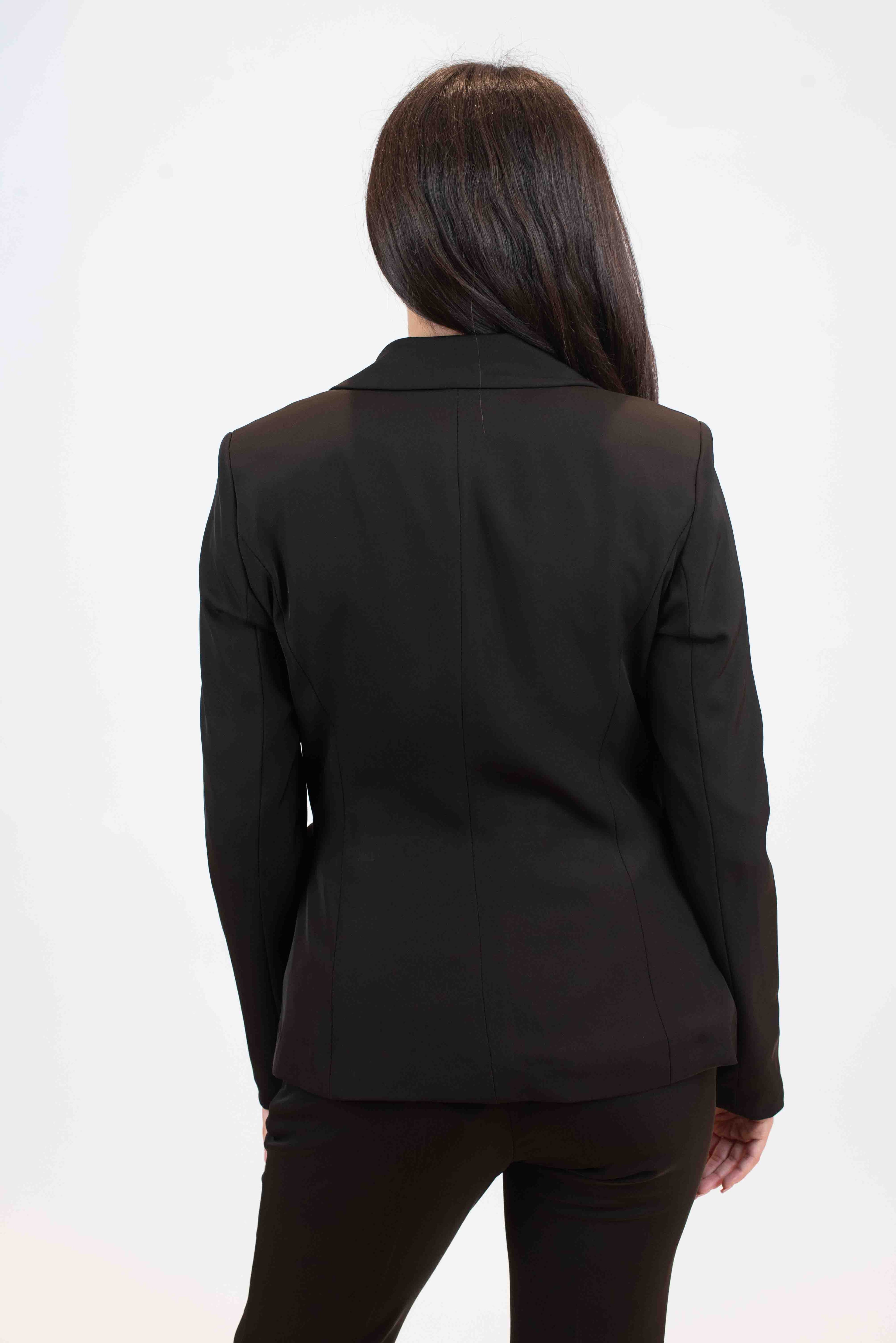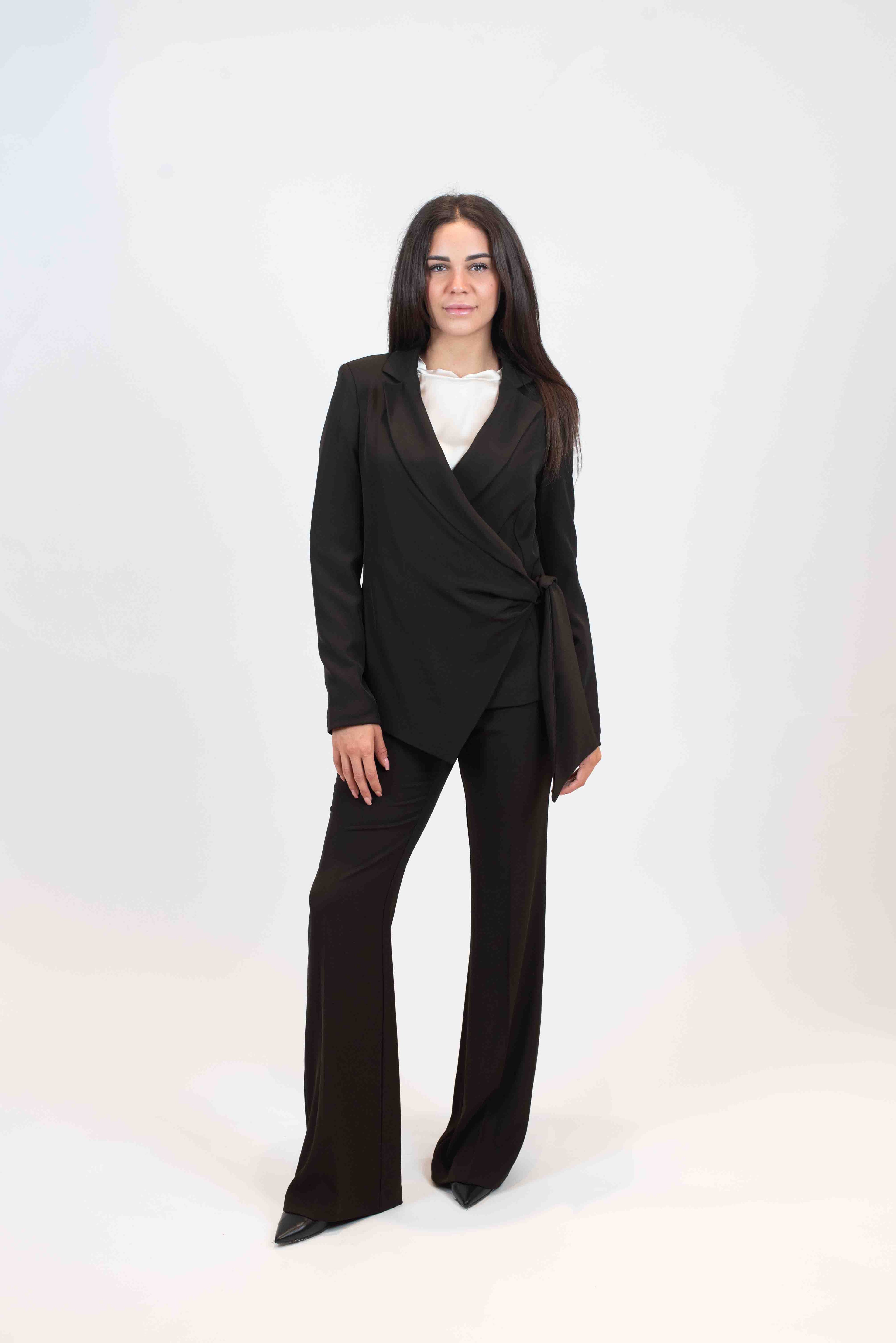 Giacca monopetto tessuto fluido con fiocco laterale.