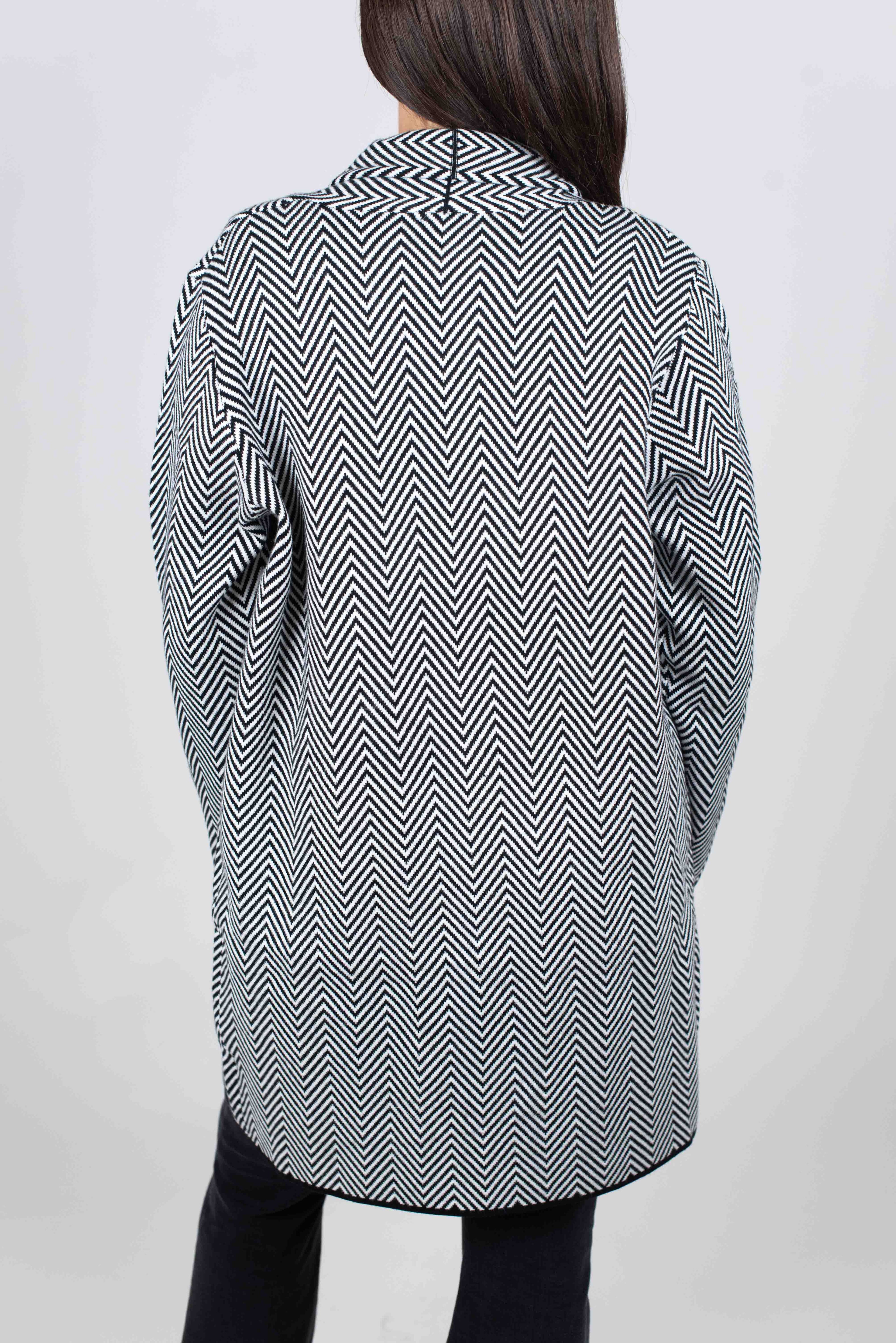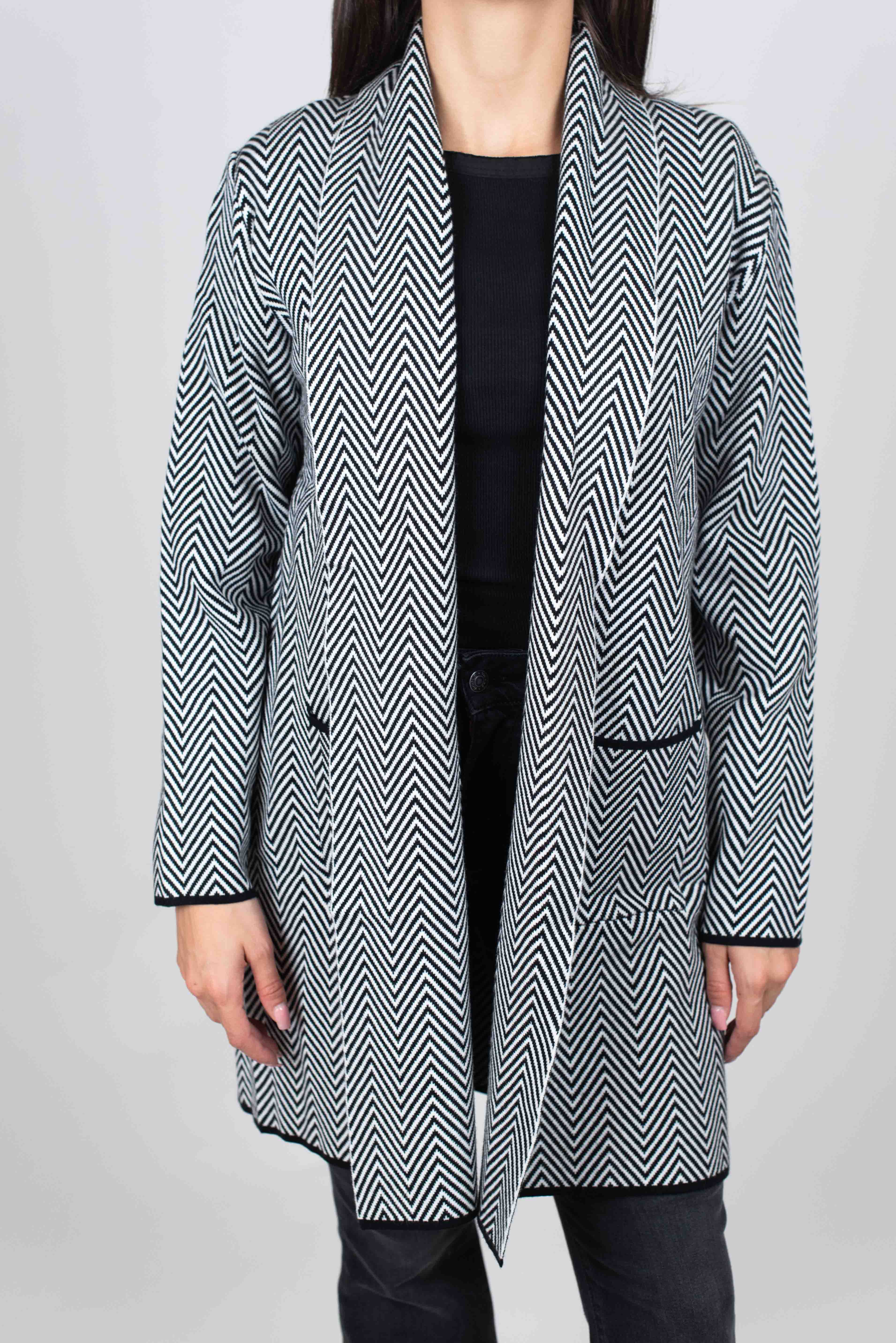 Via Vai Cardigan Lungo Fantasia Spiga - LATTE/NERO