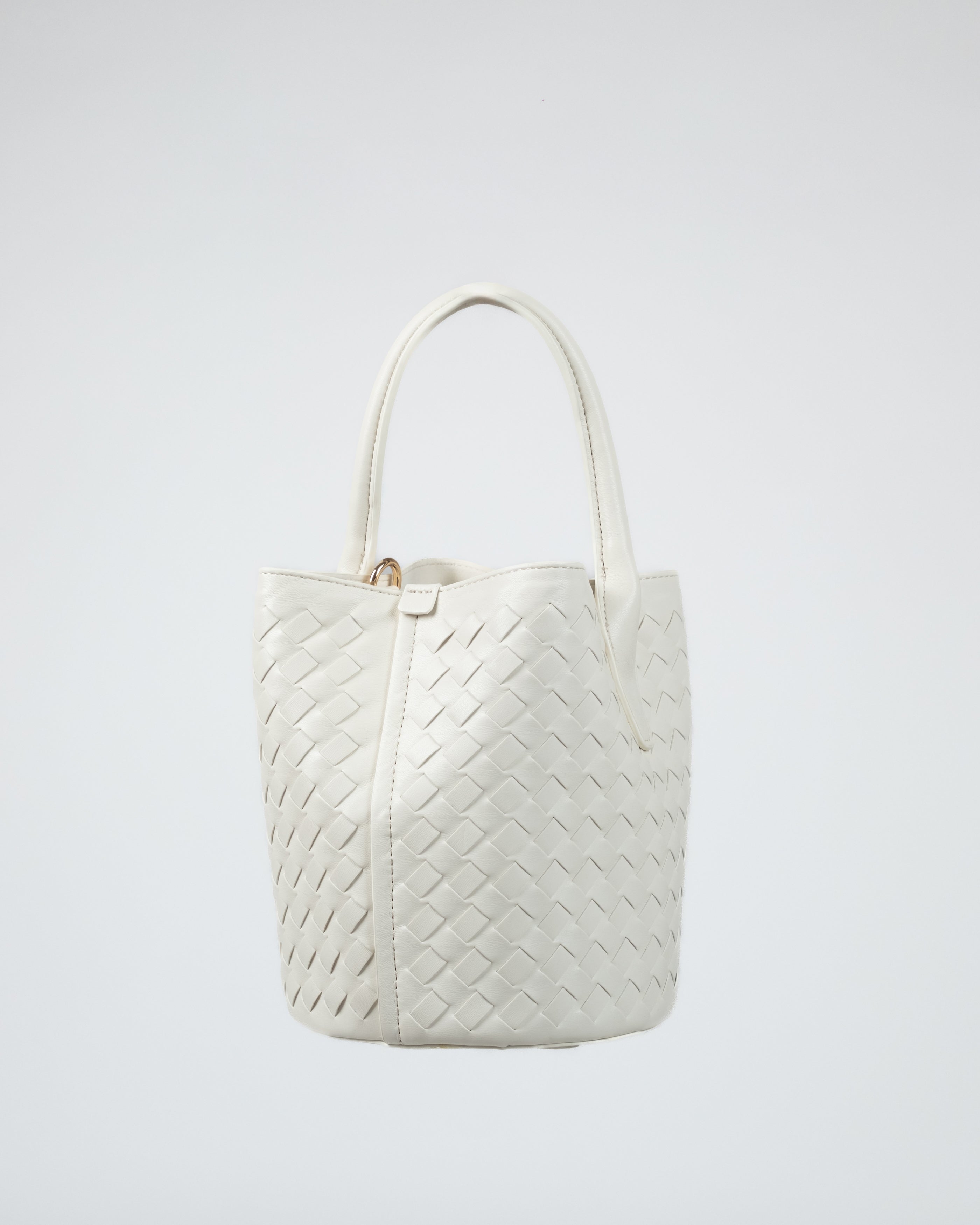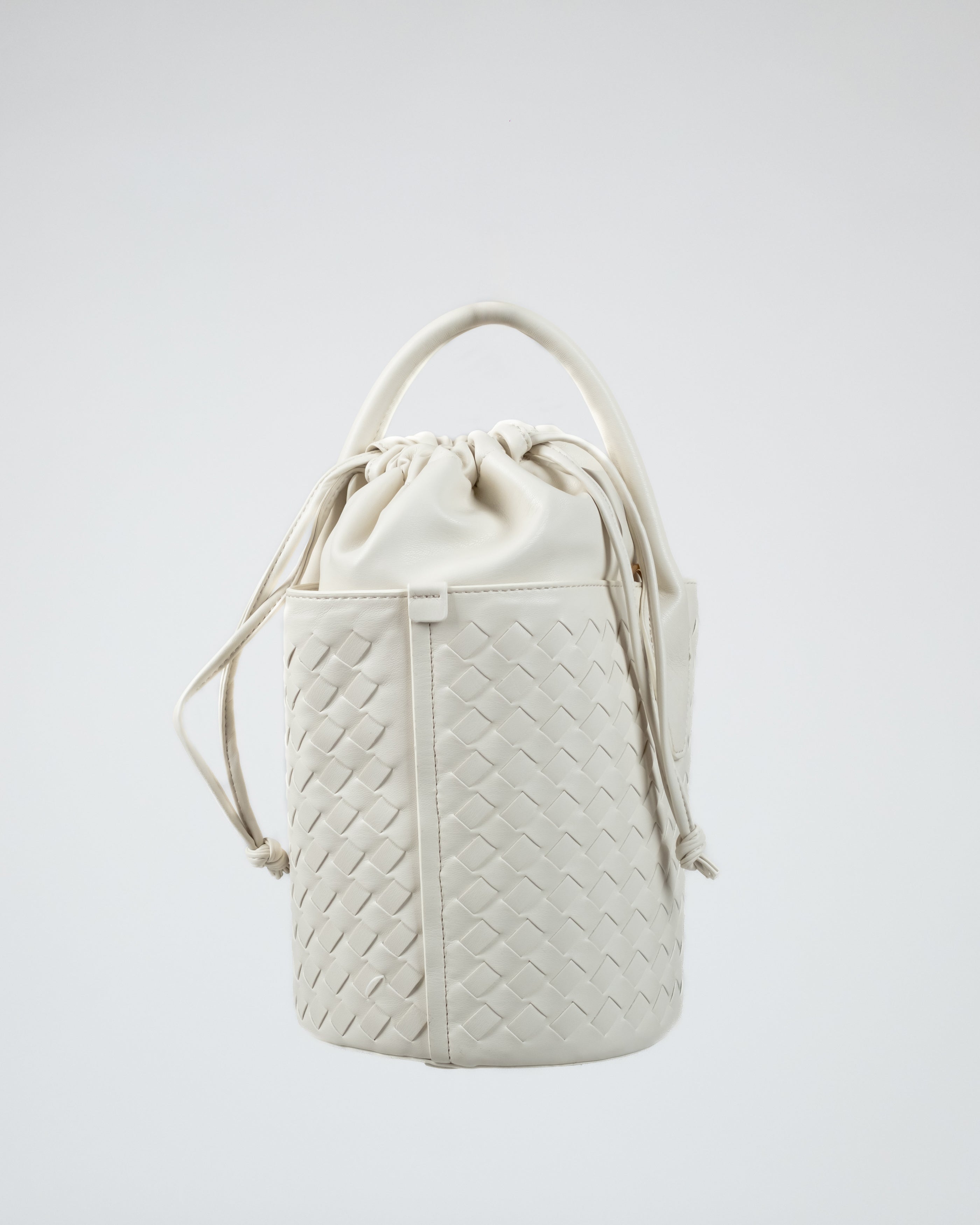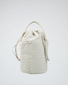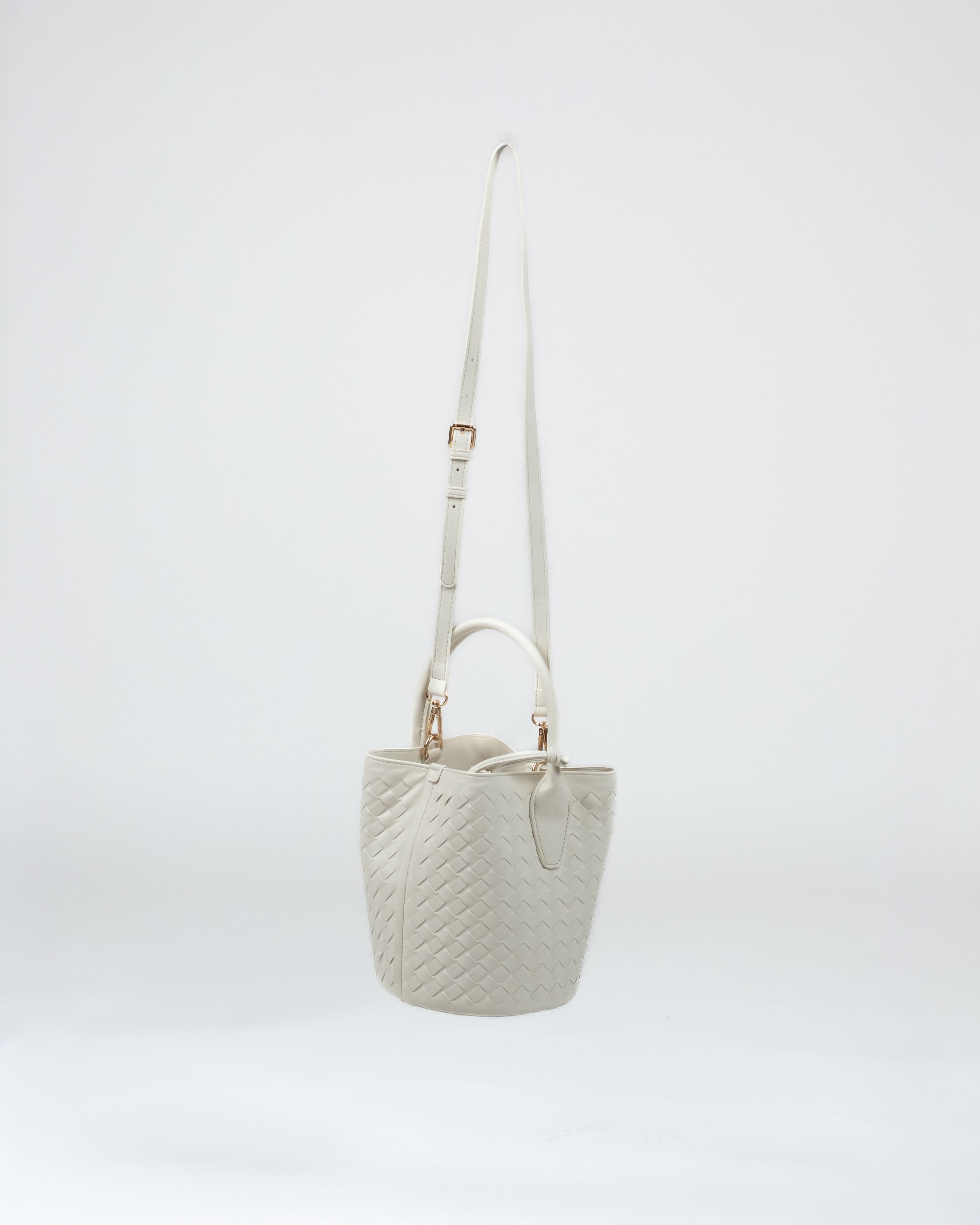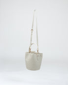 Borsa intrecciata con pochette interna e tracolla removibile.