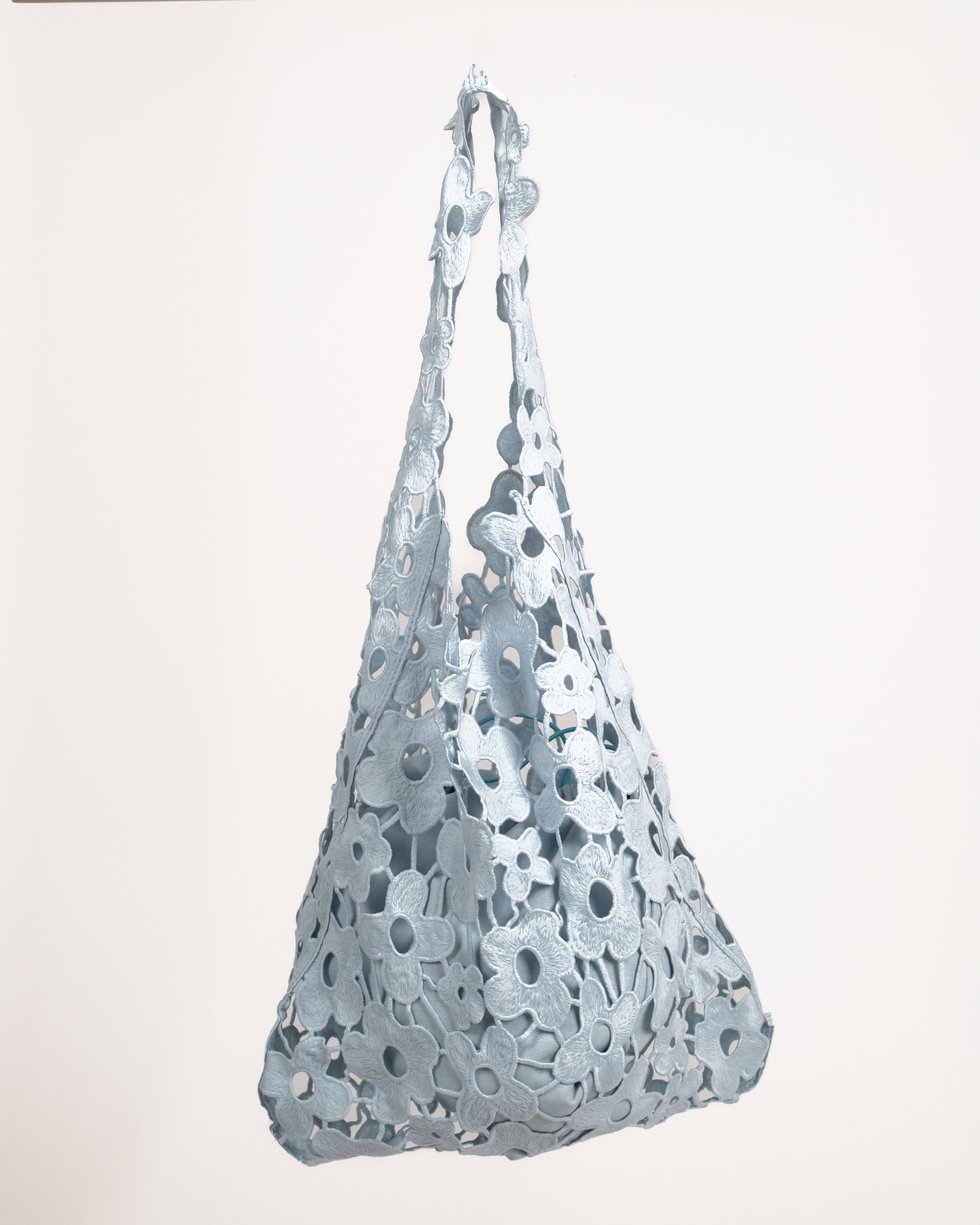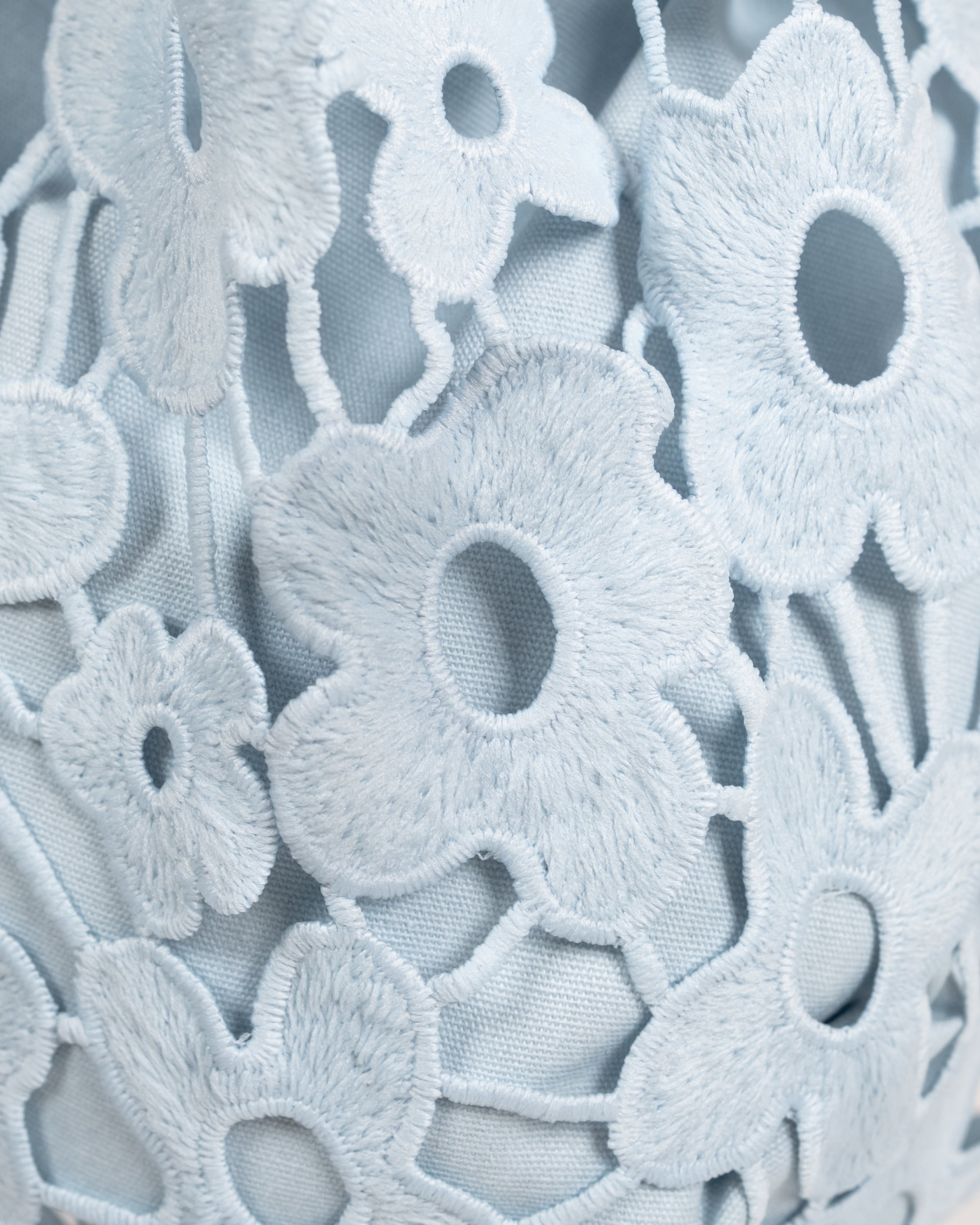 Borsa shopper con ricamo crochet con pochette estraibile.