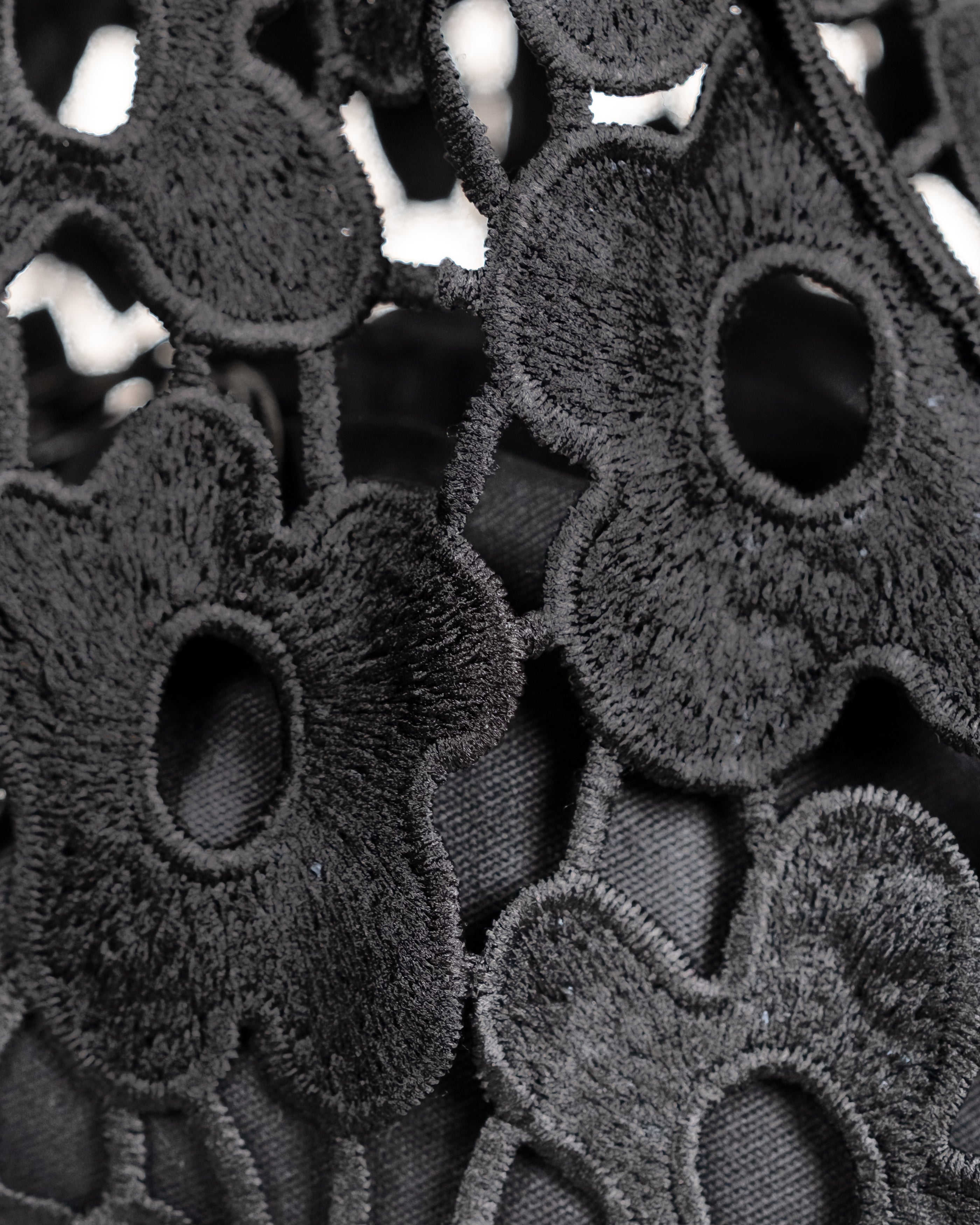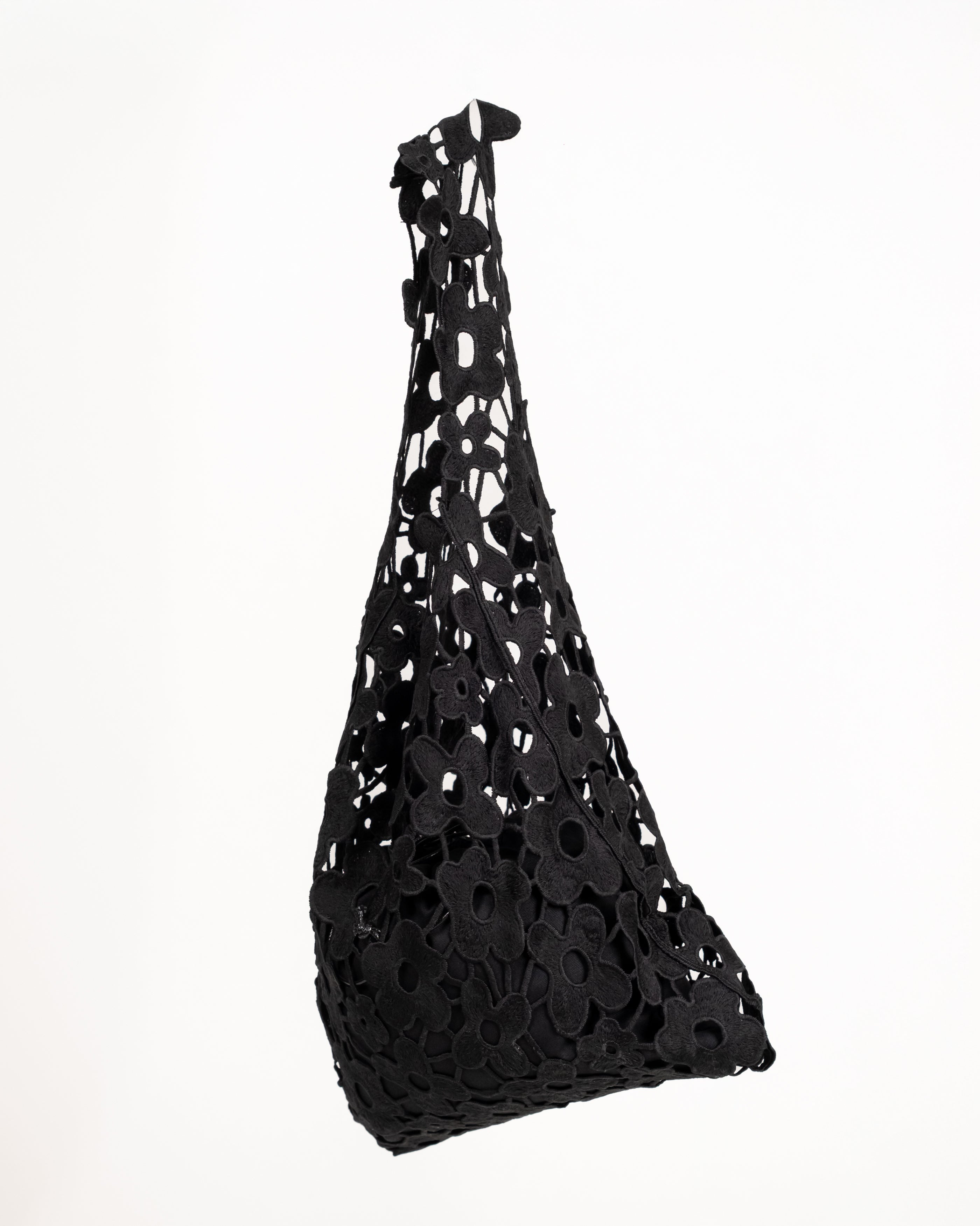 Borsa shopper con ricamo crochet con pochette estraibile.