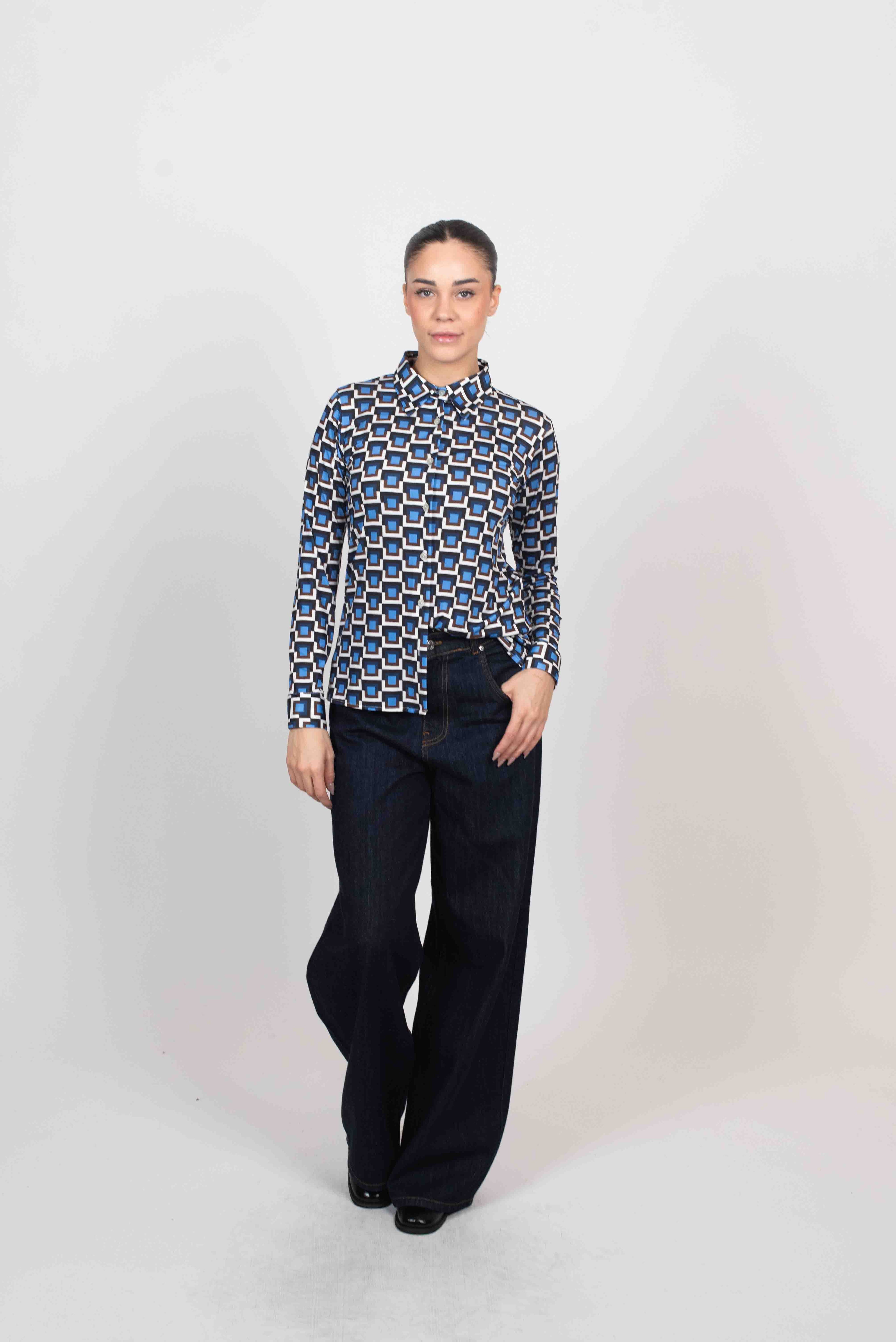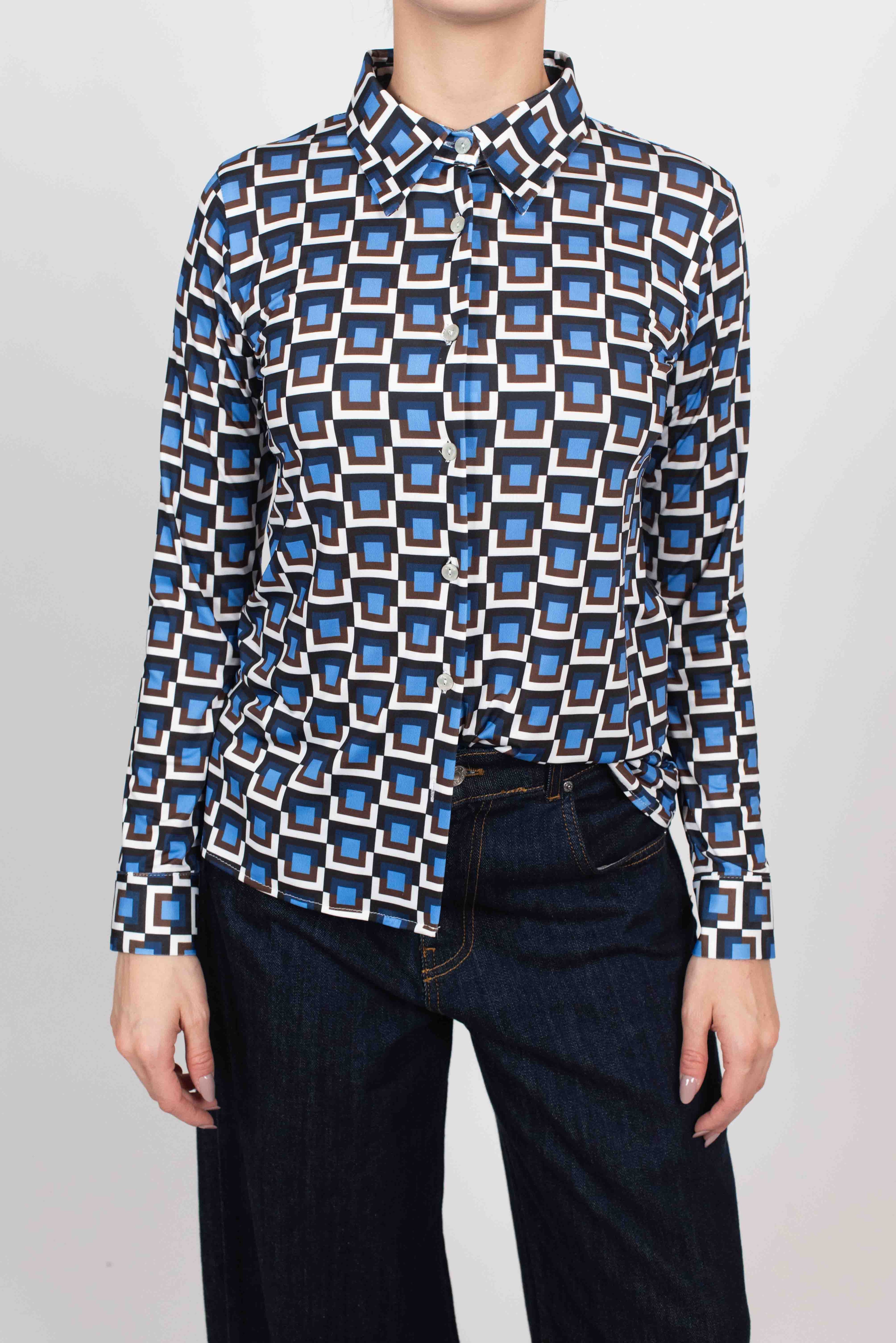 Via Vai Camicia Fantasia Quadro - AZZURRO
