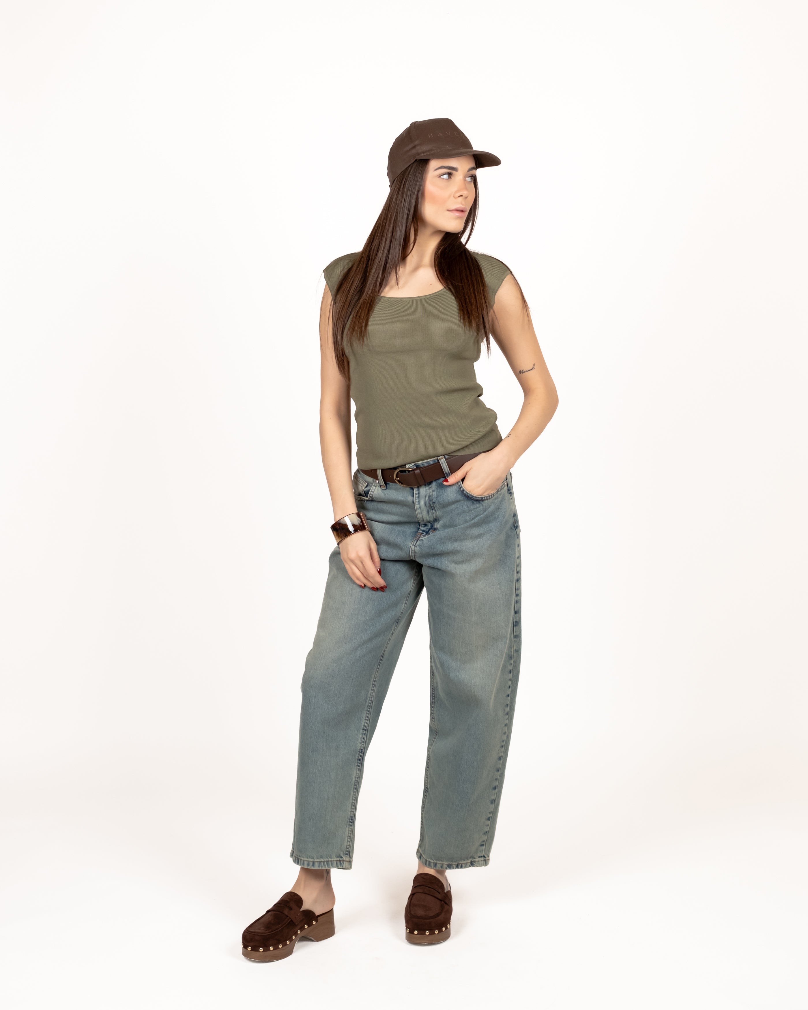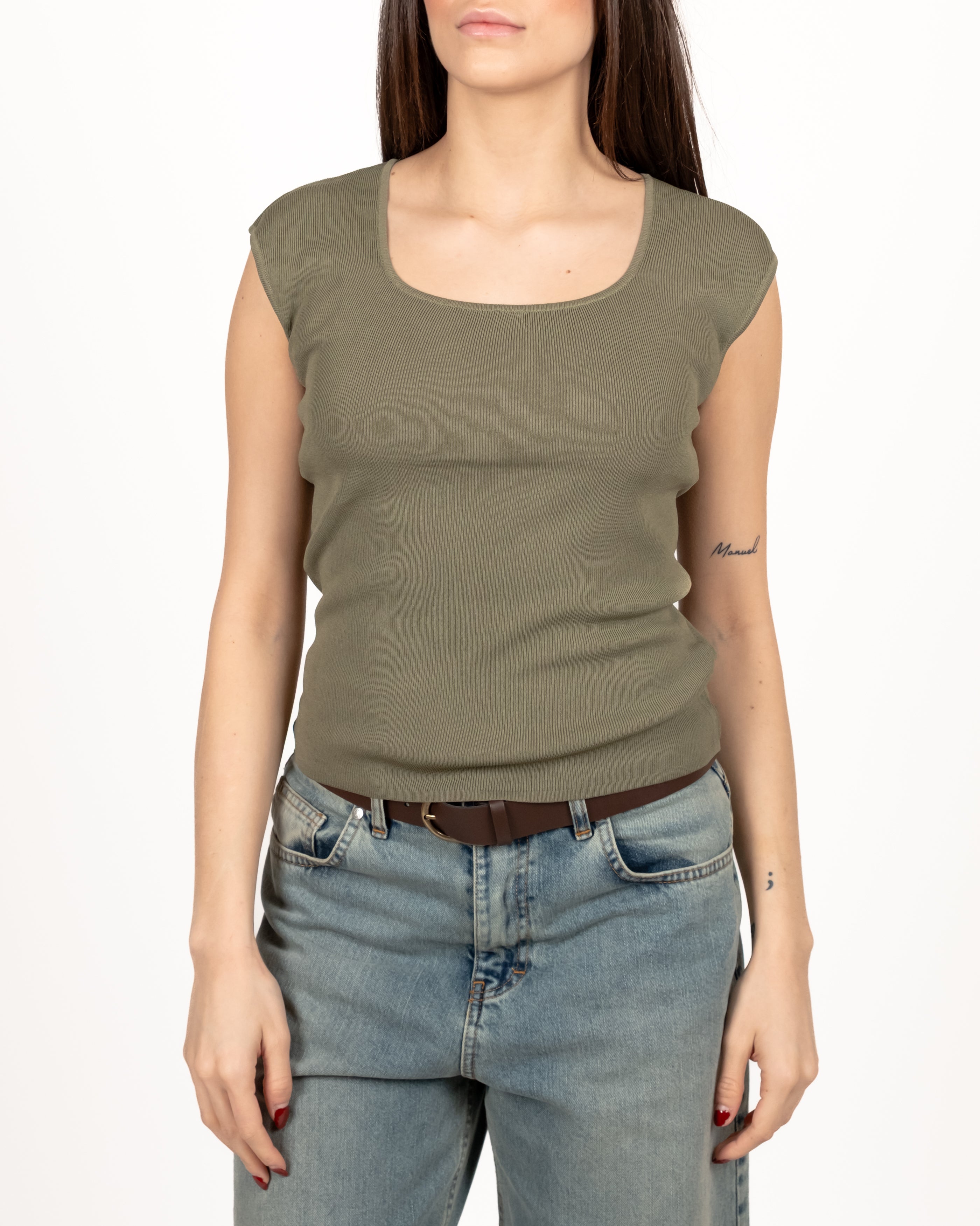 Susy Mix Canotta Con Scollatura Quadrata - VERDE MILITARE