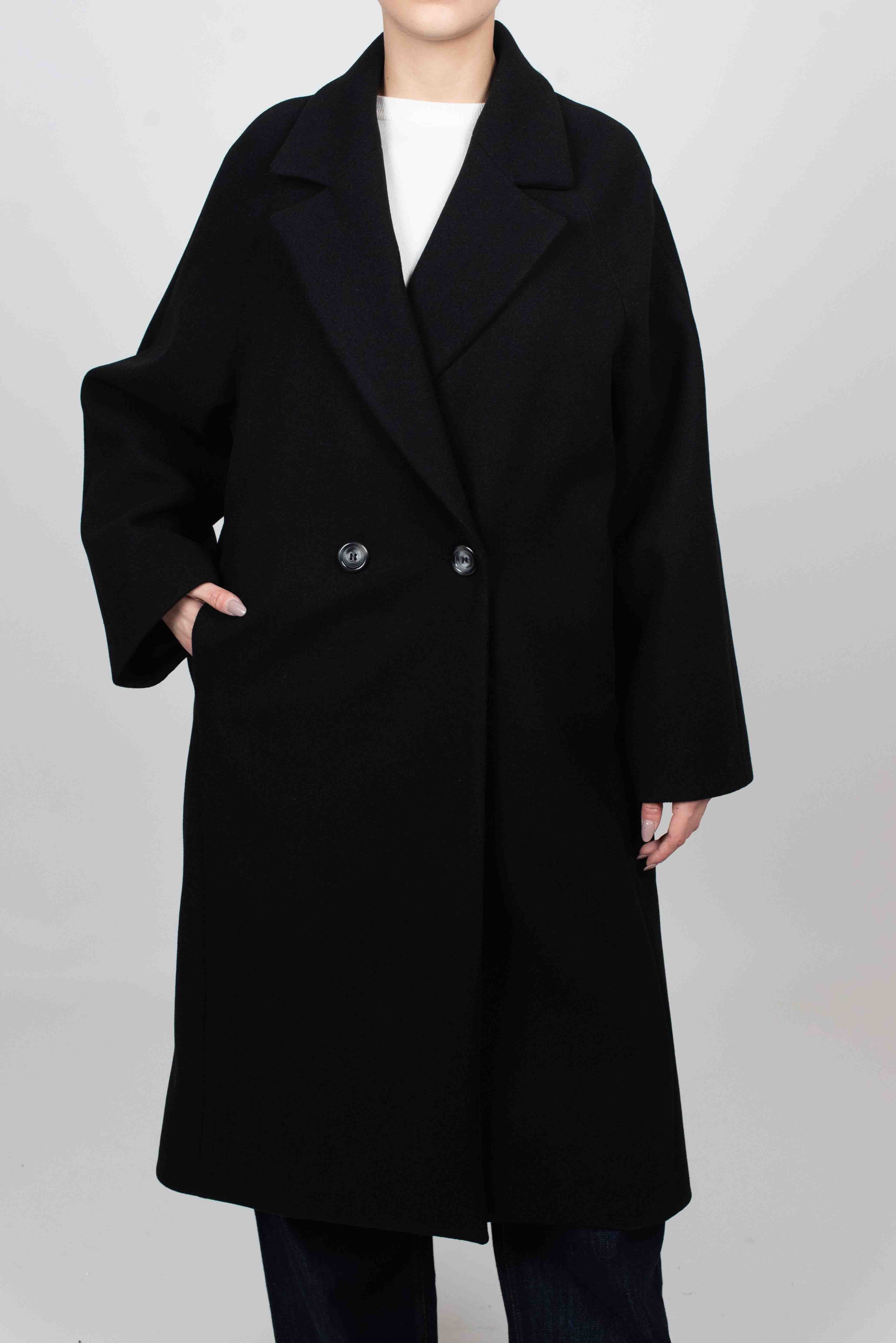 Cappotto over doppiopetto con tasche a filo.