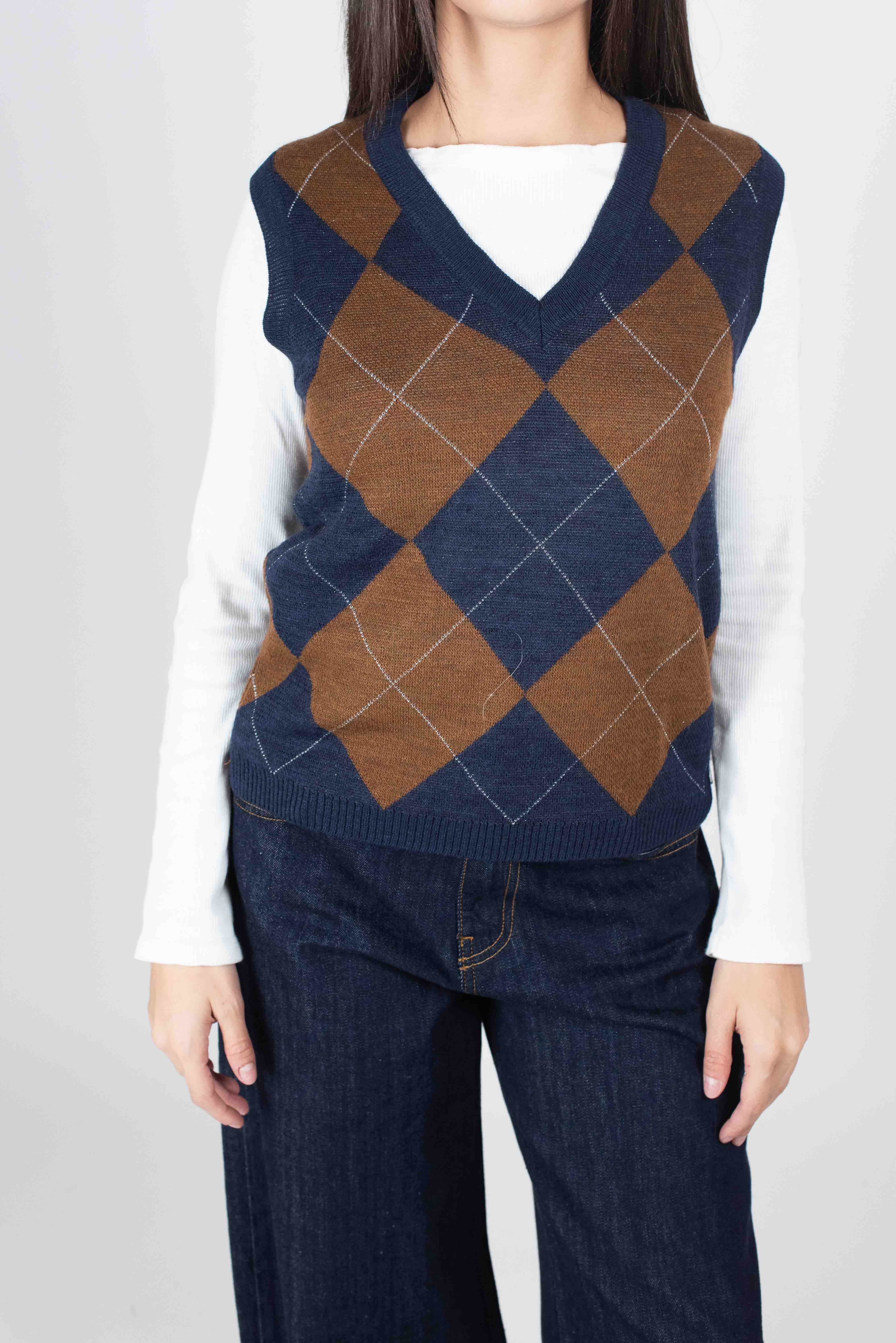 Via Vai Gilet Slim Maglia V - BLU/CUOIO