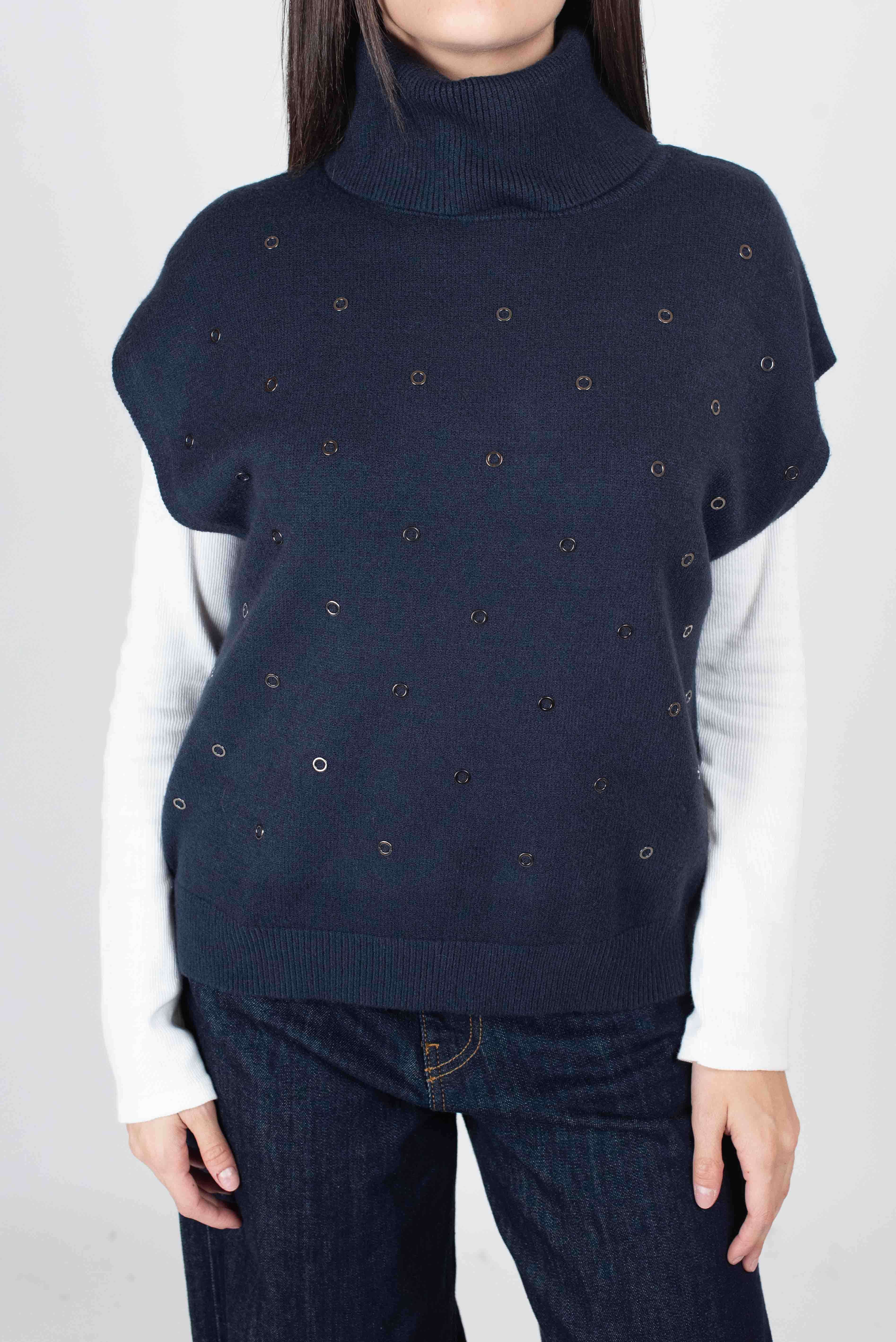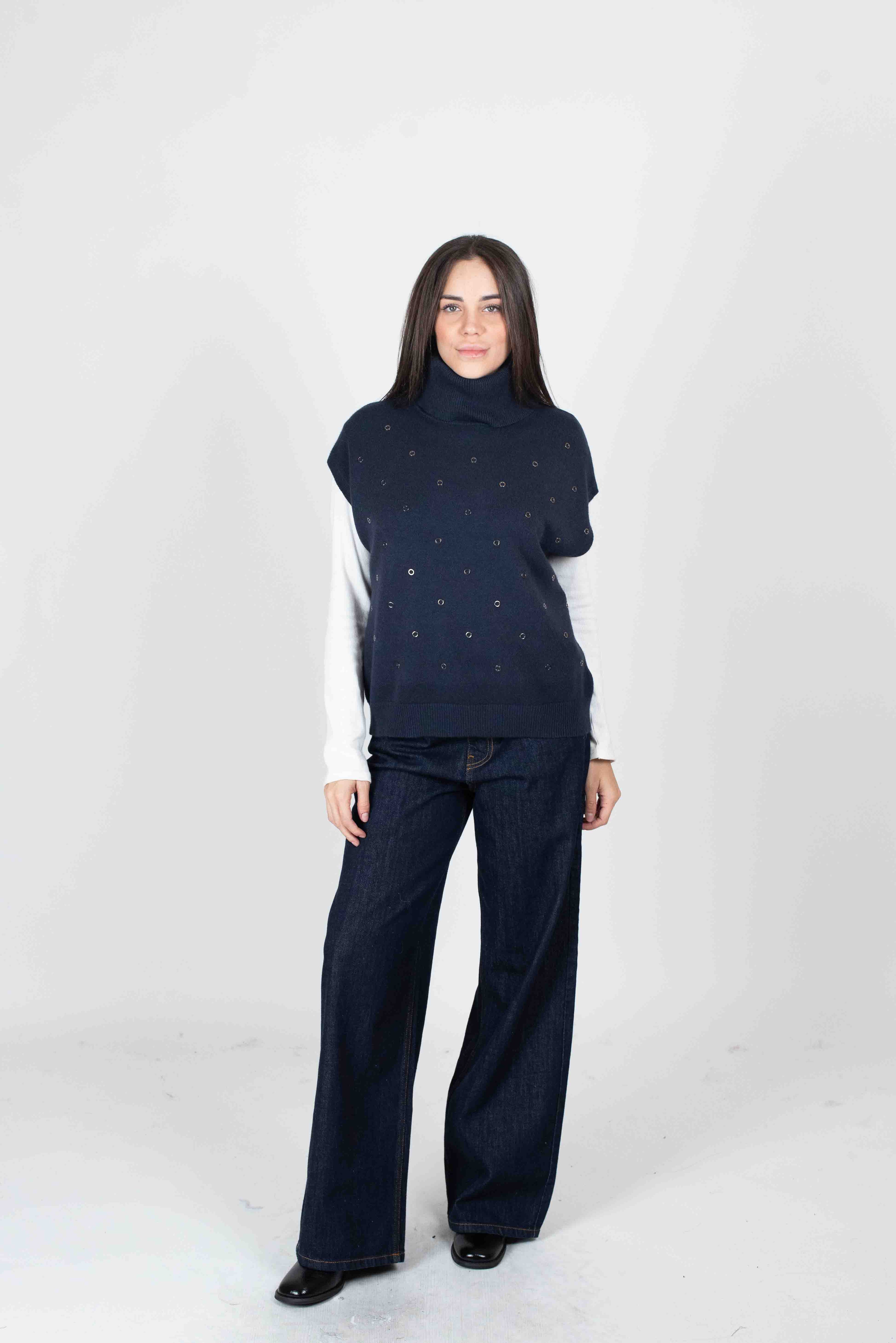 Via Vai Gilet Collo Alto C/Applicazioni - blu