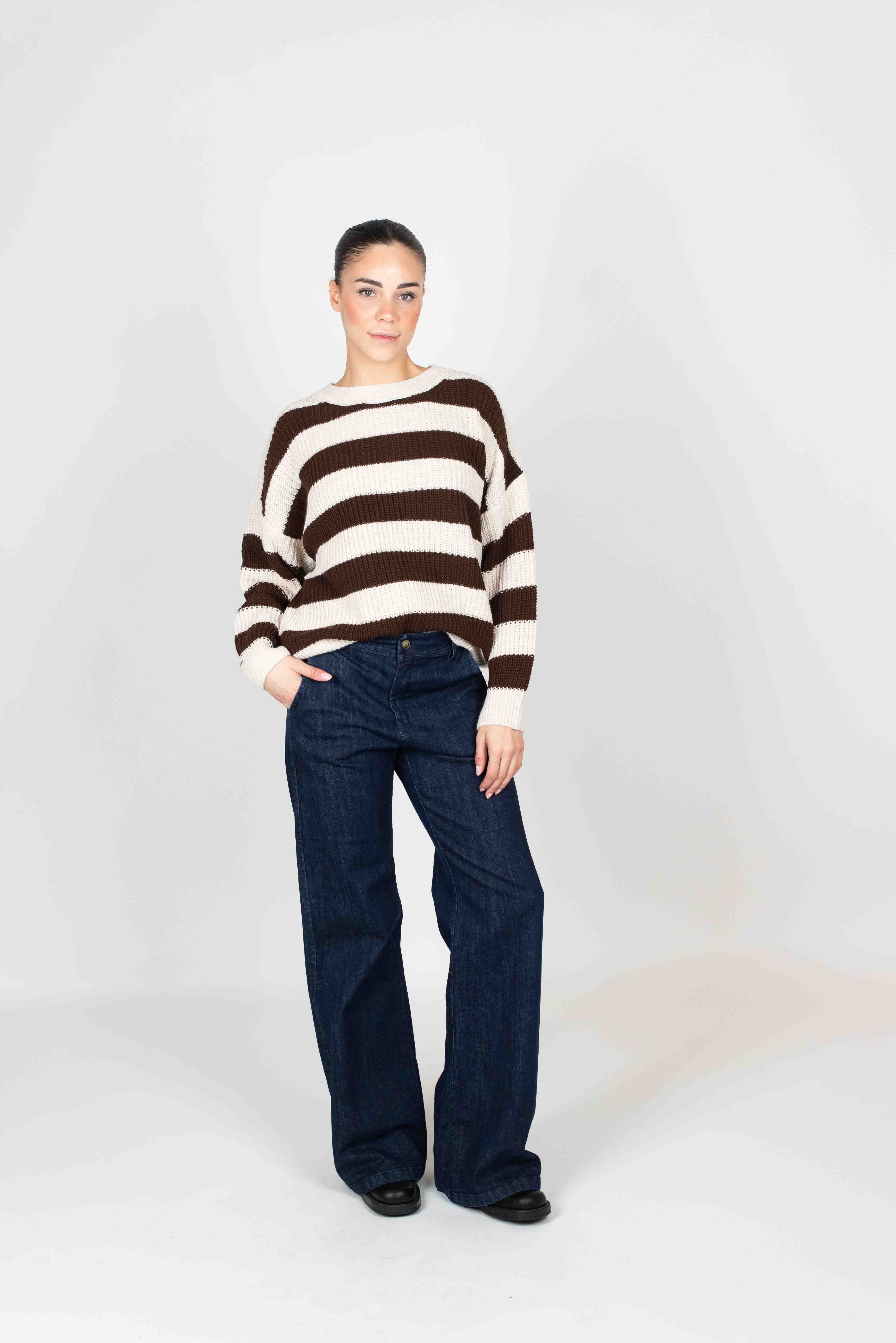 Maglia girocollo a righe.