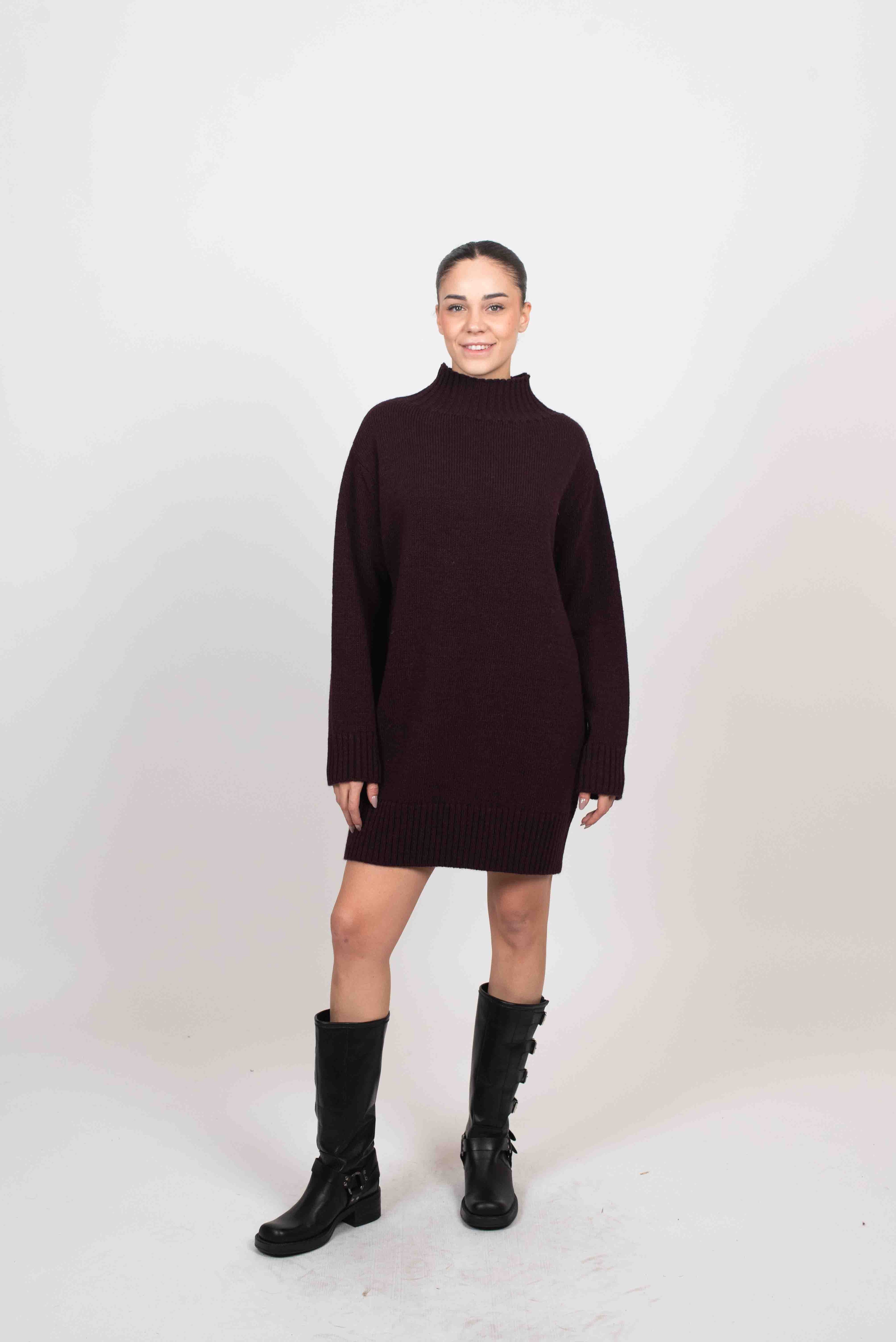 Tensione In Maglia Maxi Pull Lupetto - BORDEAUX