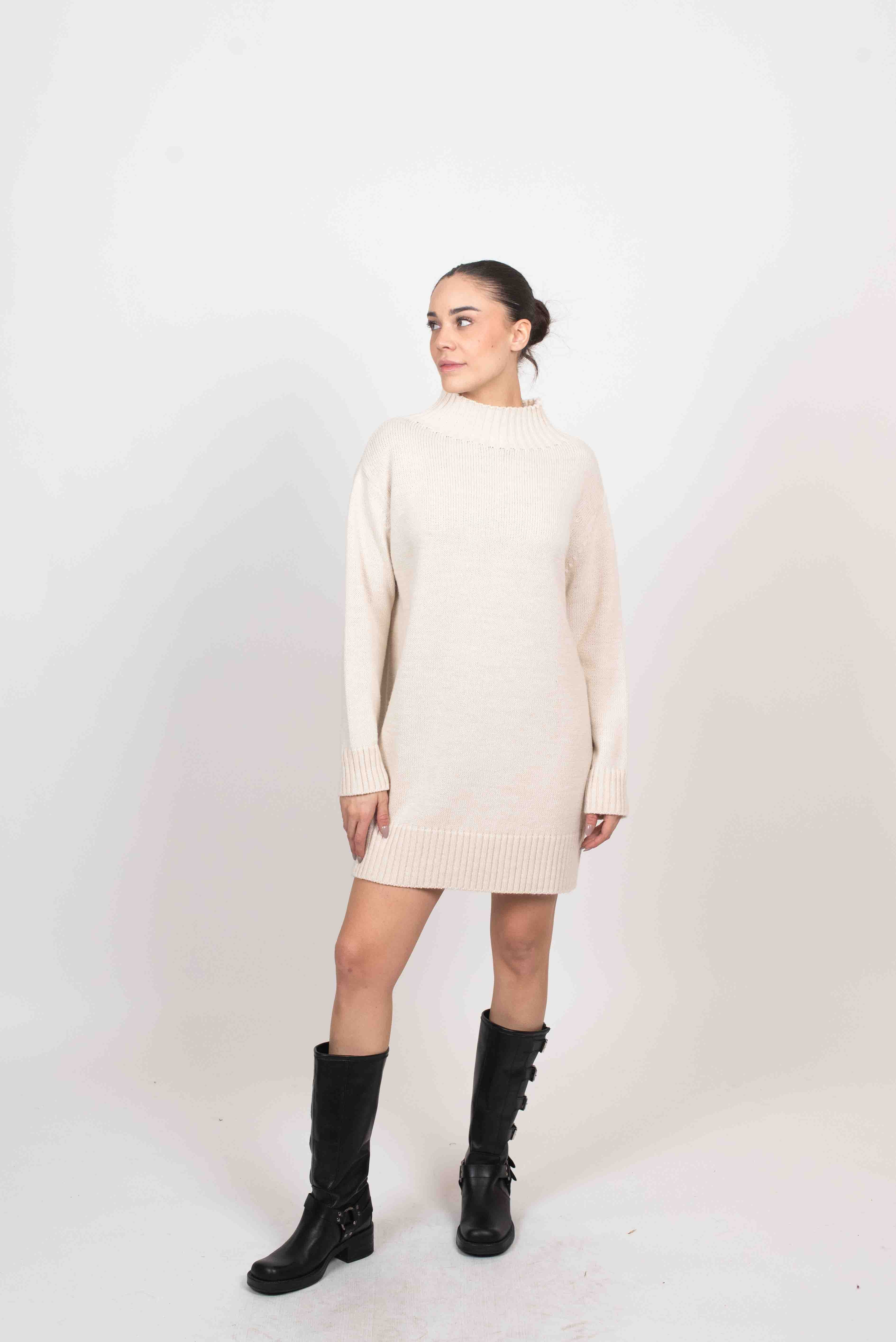 Maxi pull con collo montato e bordi a coste.