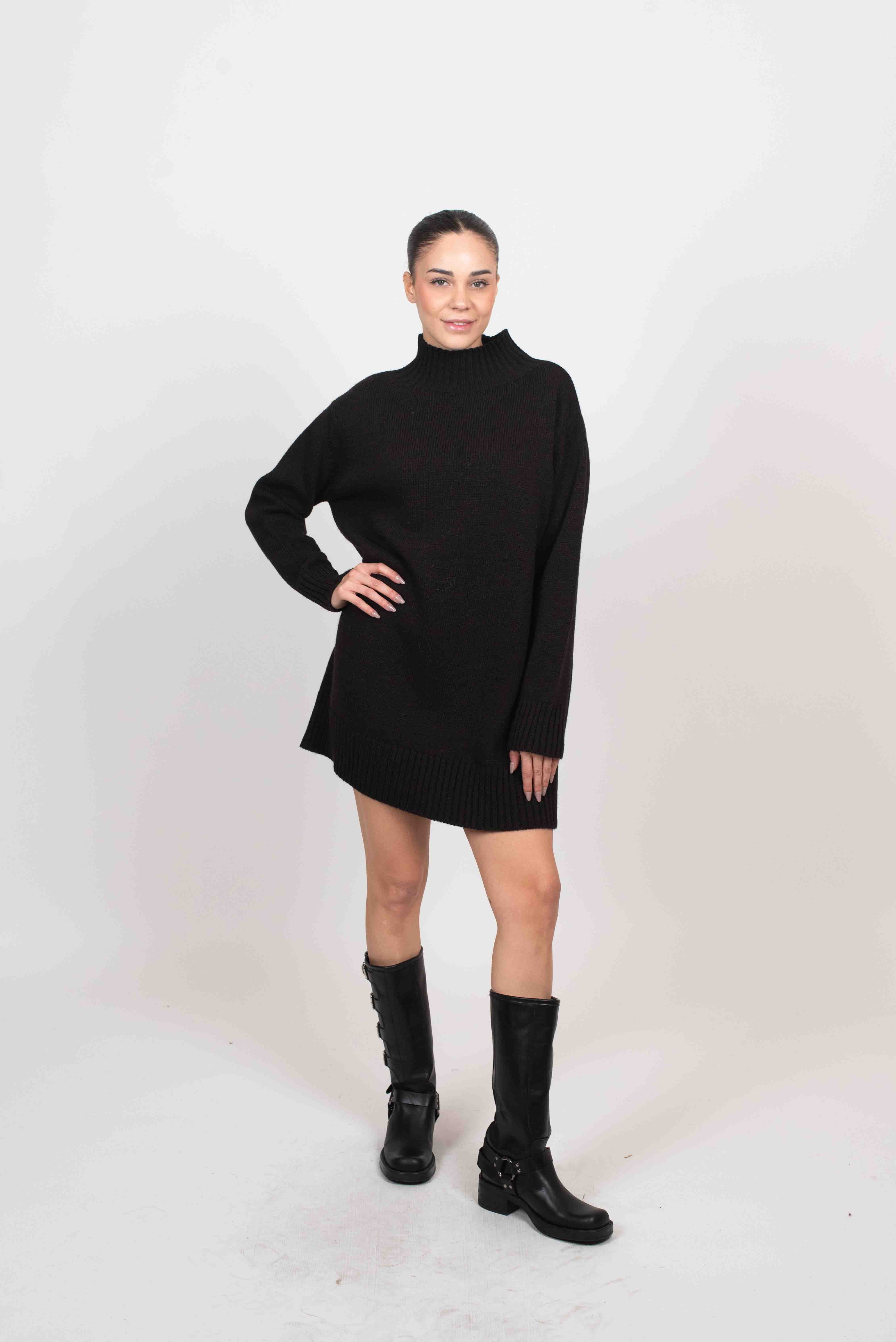 Maxi pull con collo montato e bordi a coste.