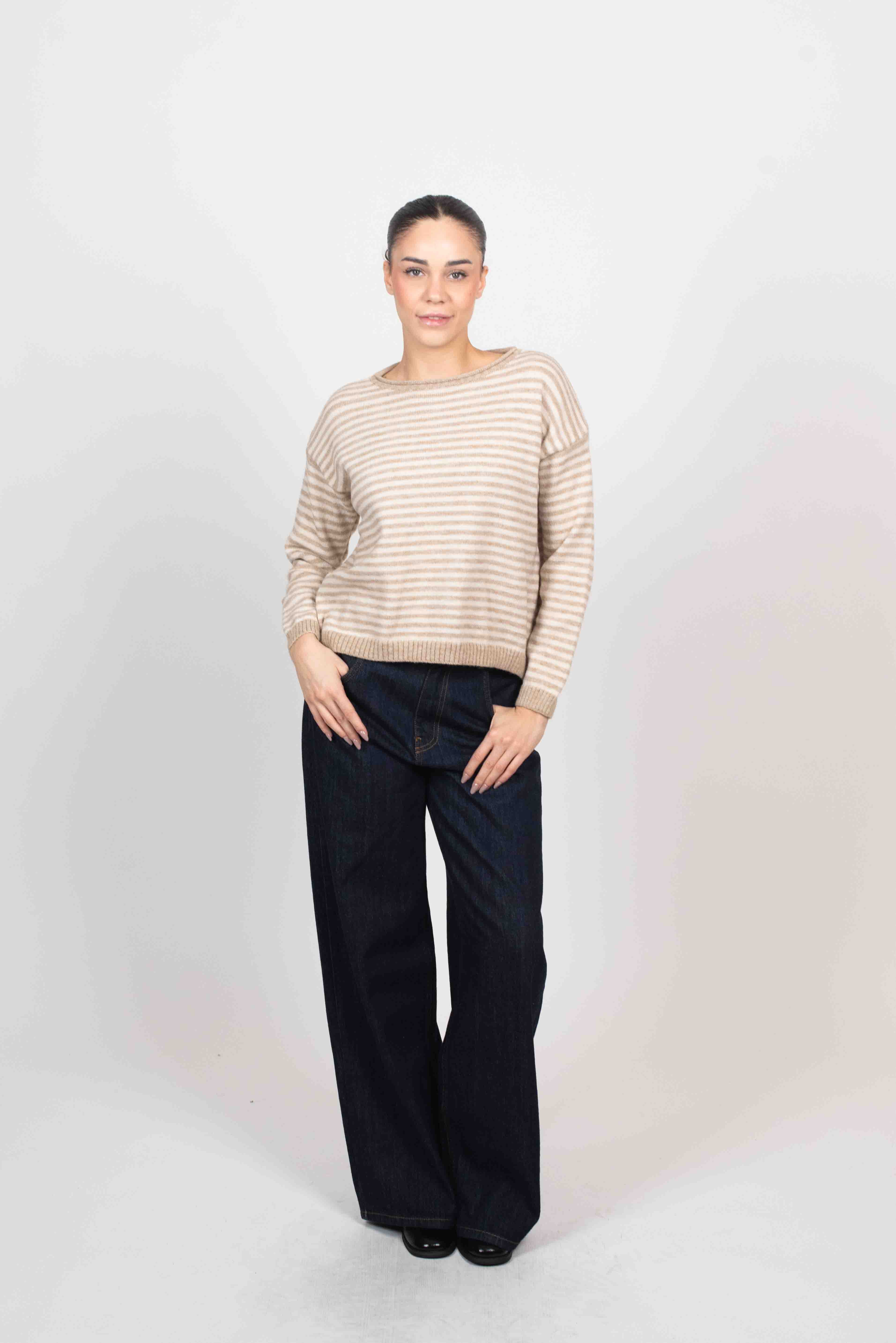 Maglia girocollo righe sottili.