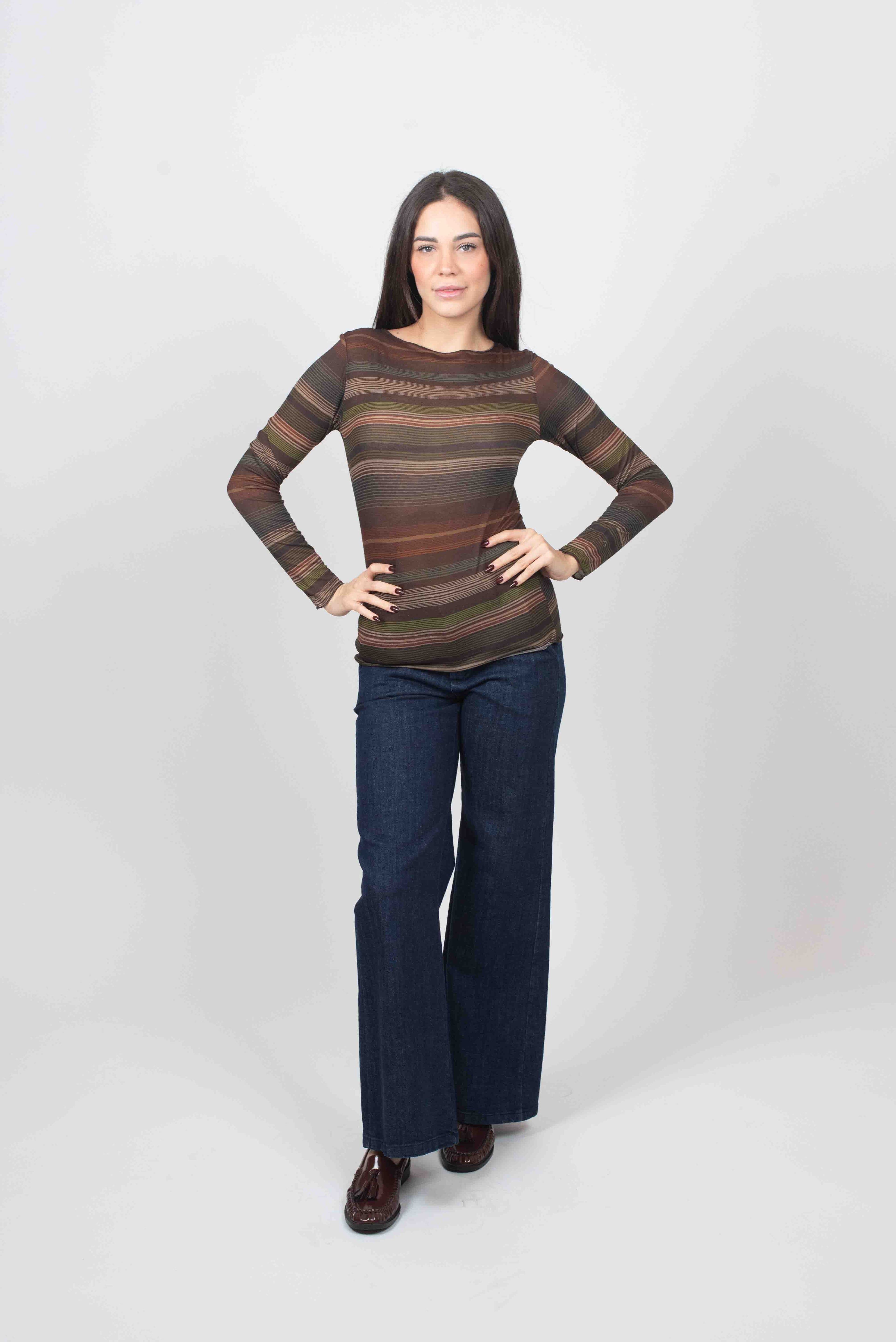 Via Vai Maglia Righe Cashmere - MORO/VERDE