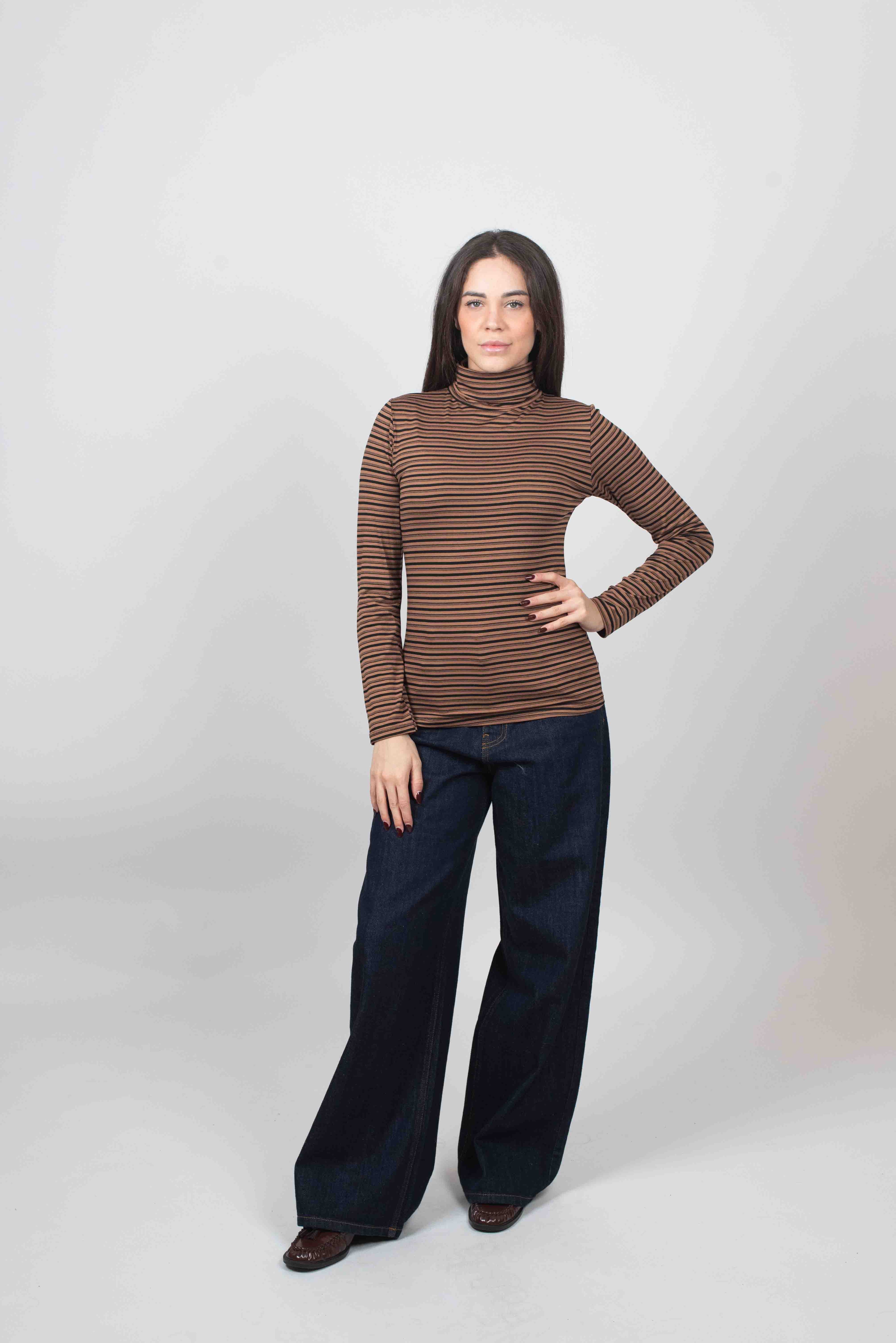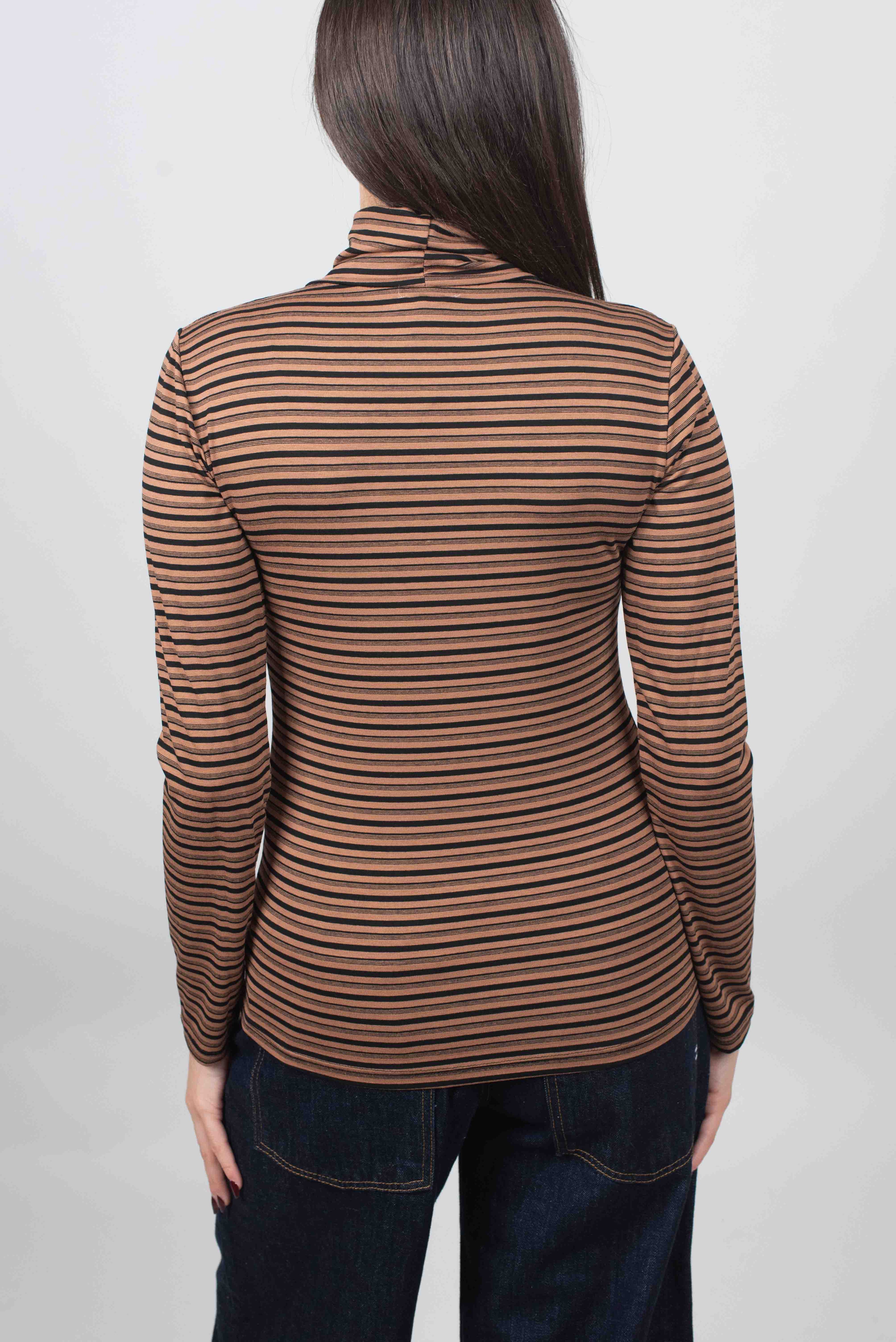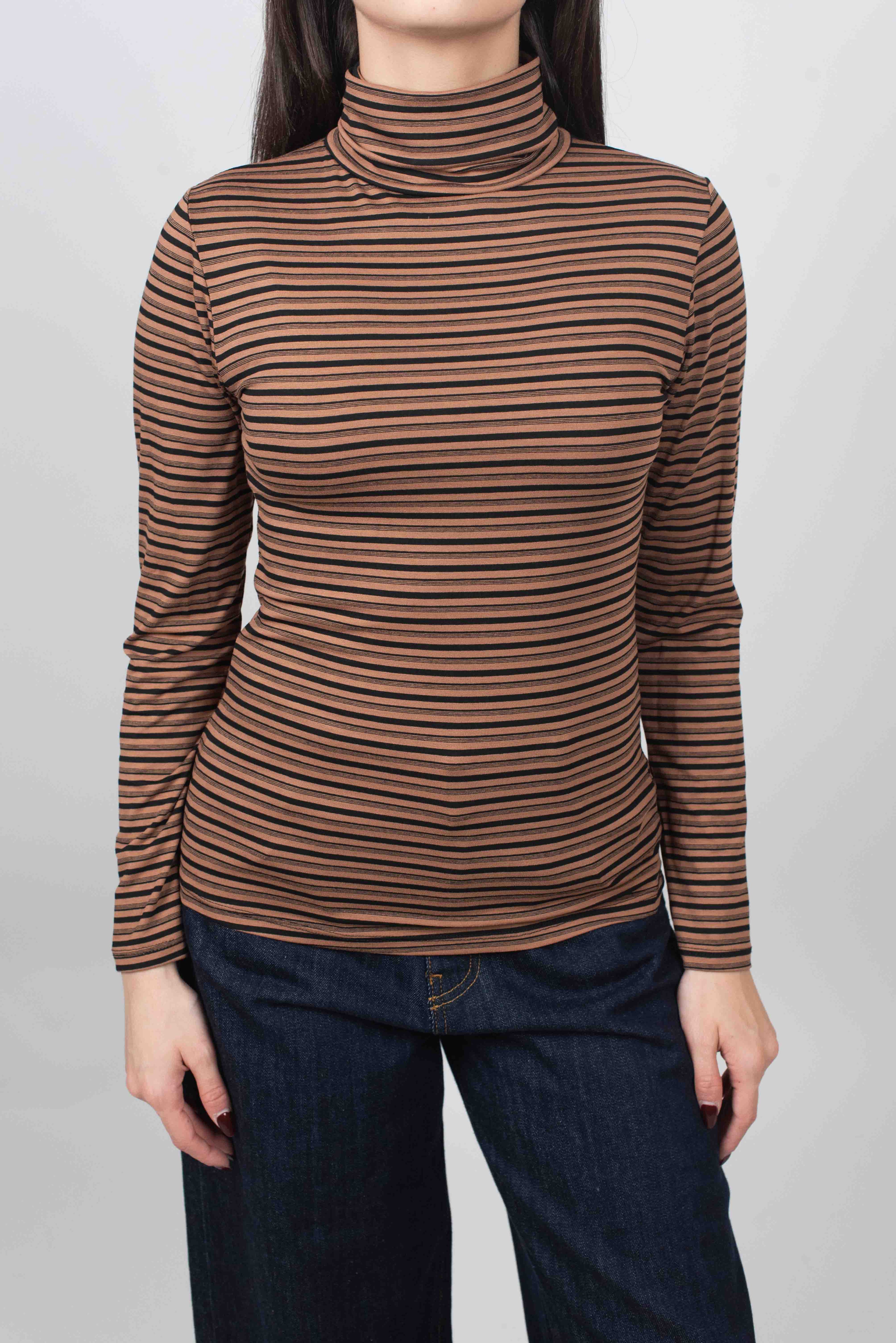 Via Vai Maglia Riga Multipla Collo Alto - CUOIO/NERO