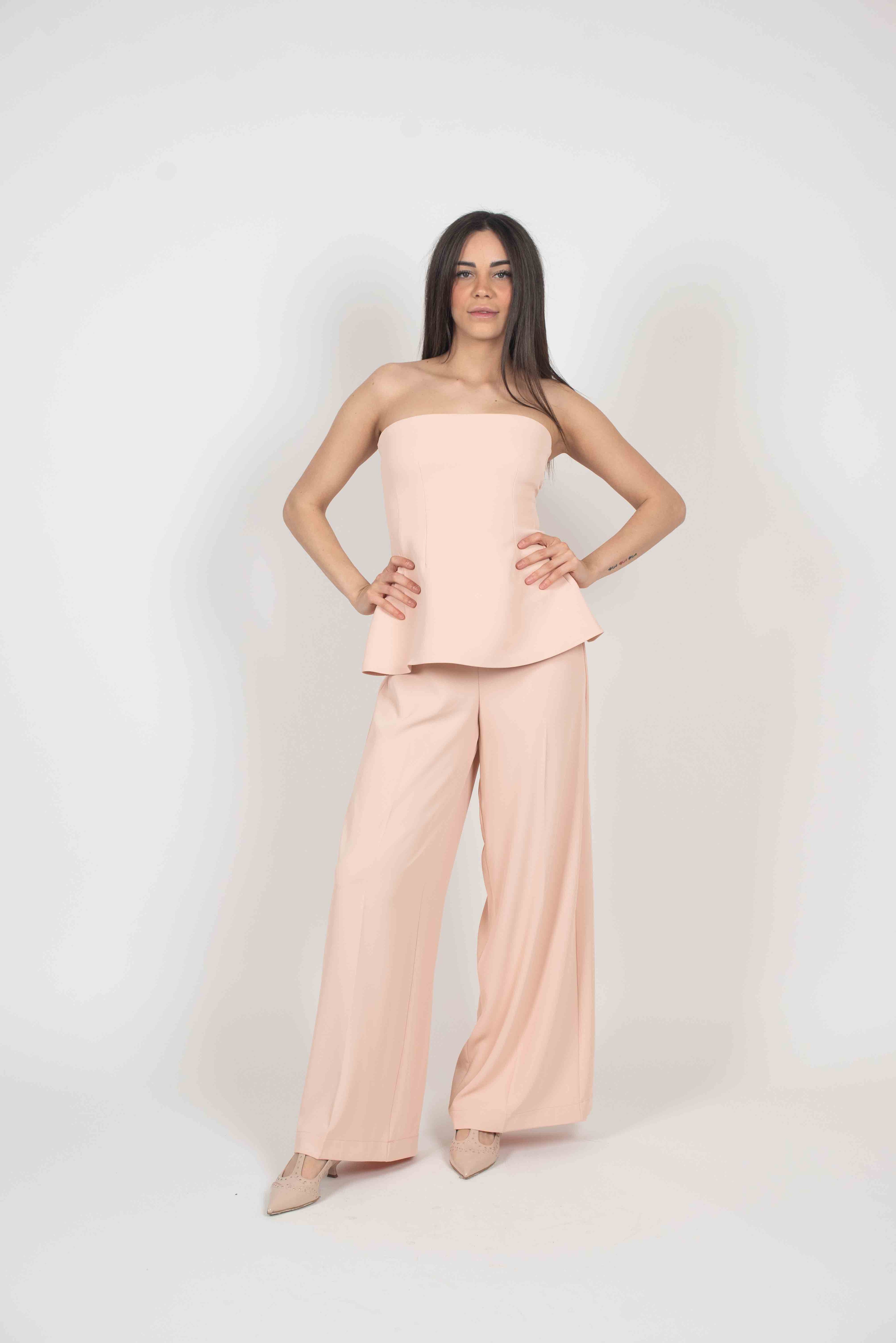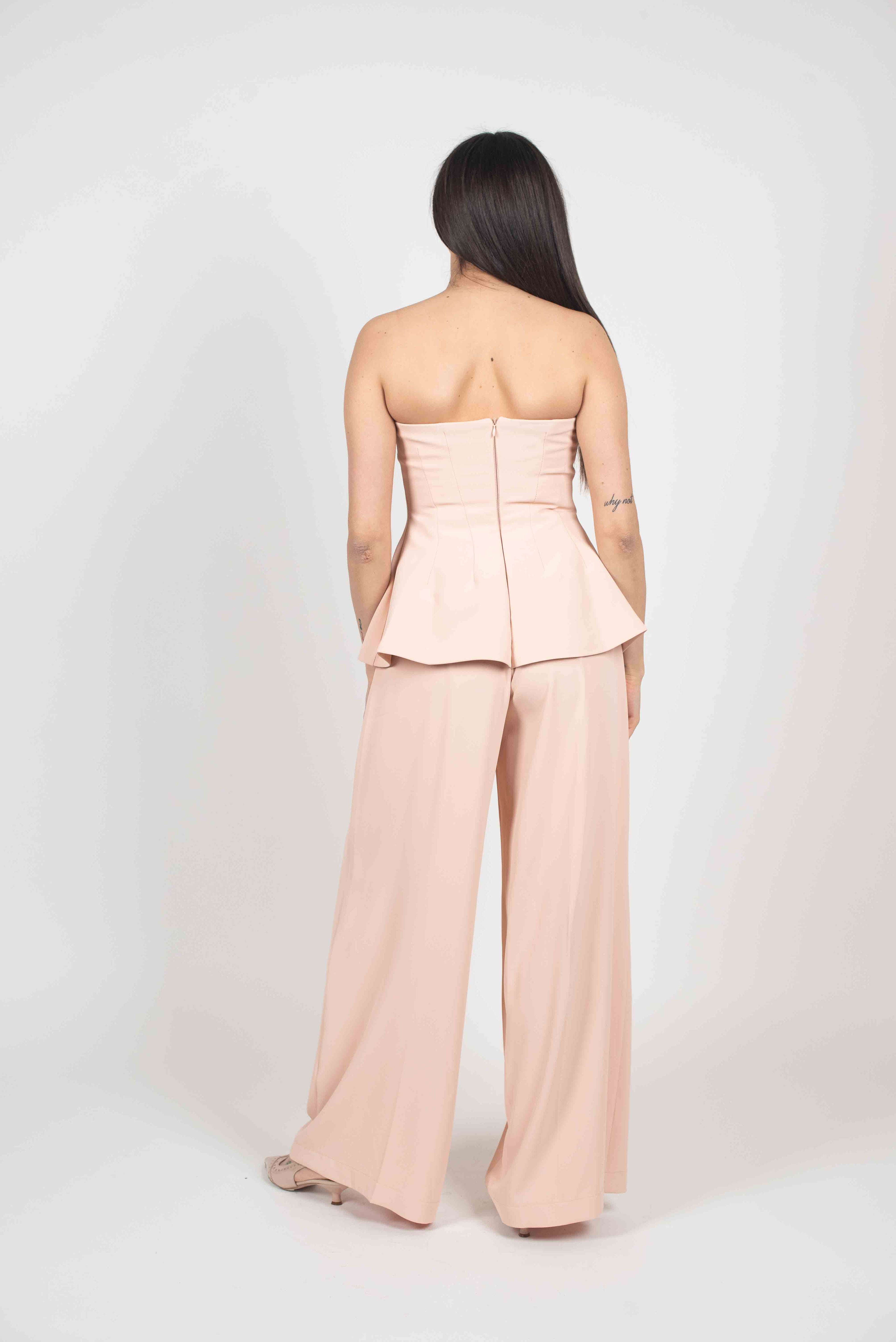 Tuta Bustino con pantalone palazzo e zip sul retro.