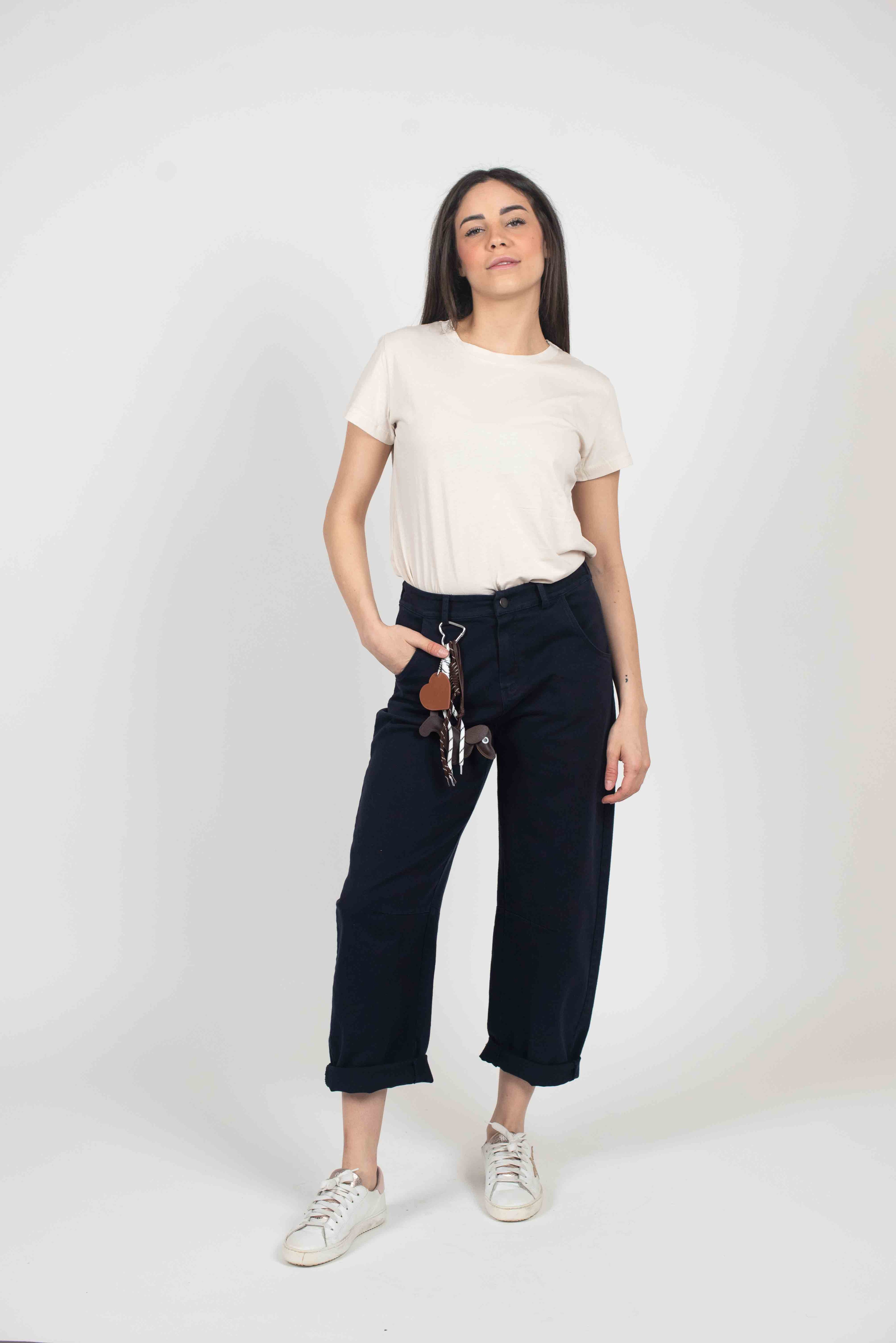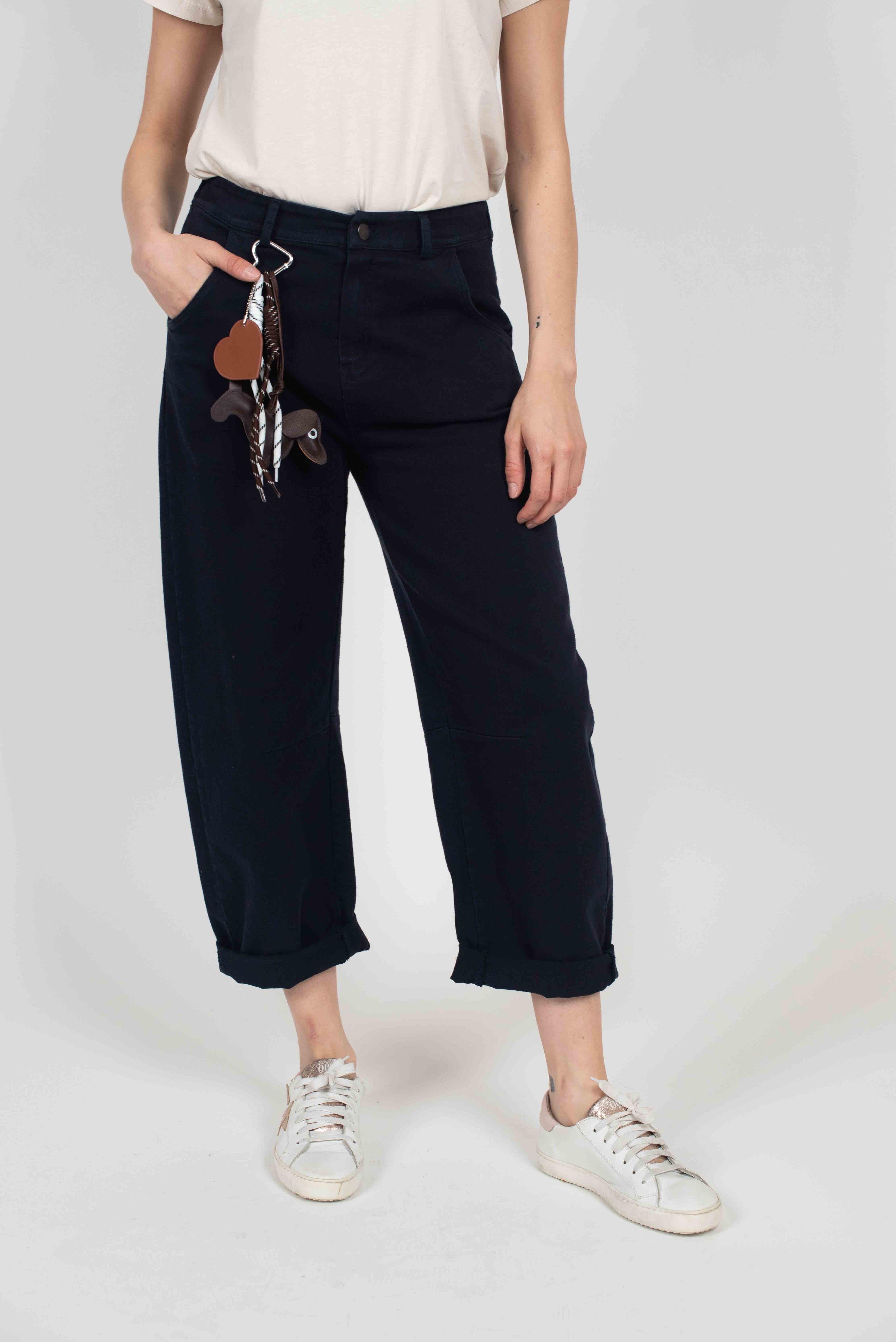 Pantalone baggy con elastico in vita dietro e portachiave.
