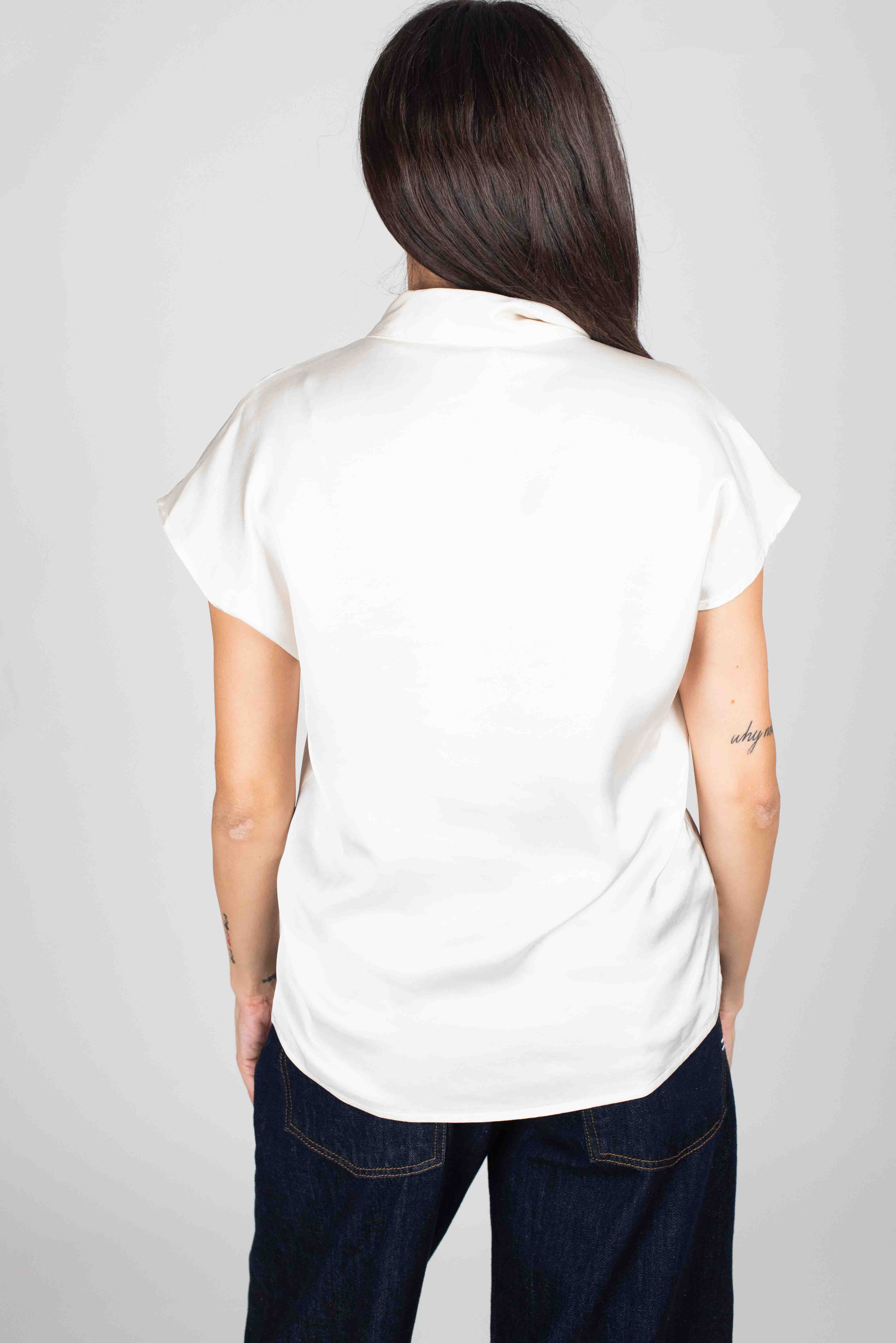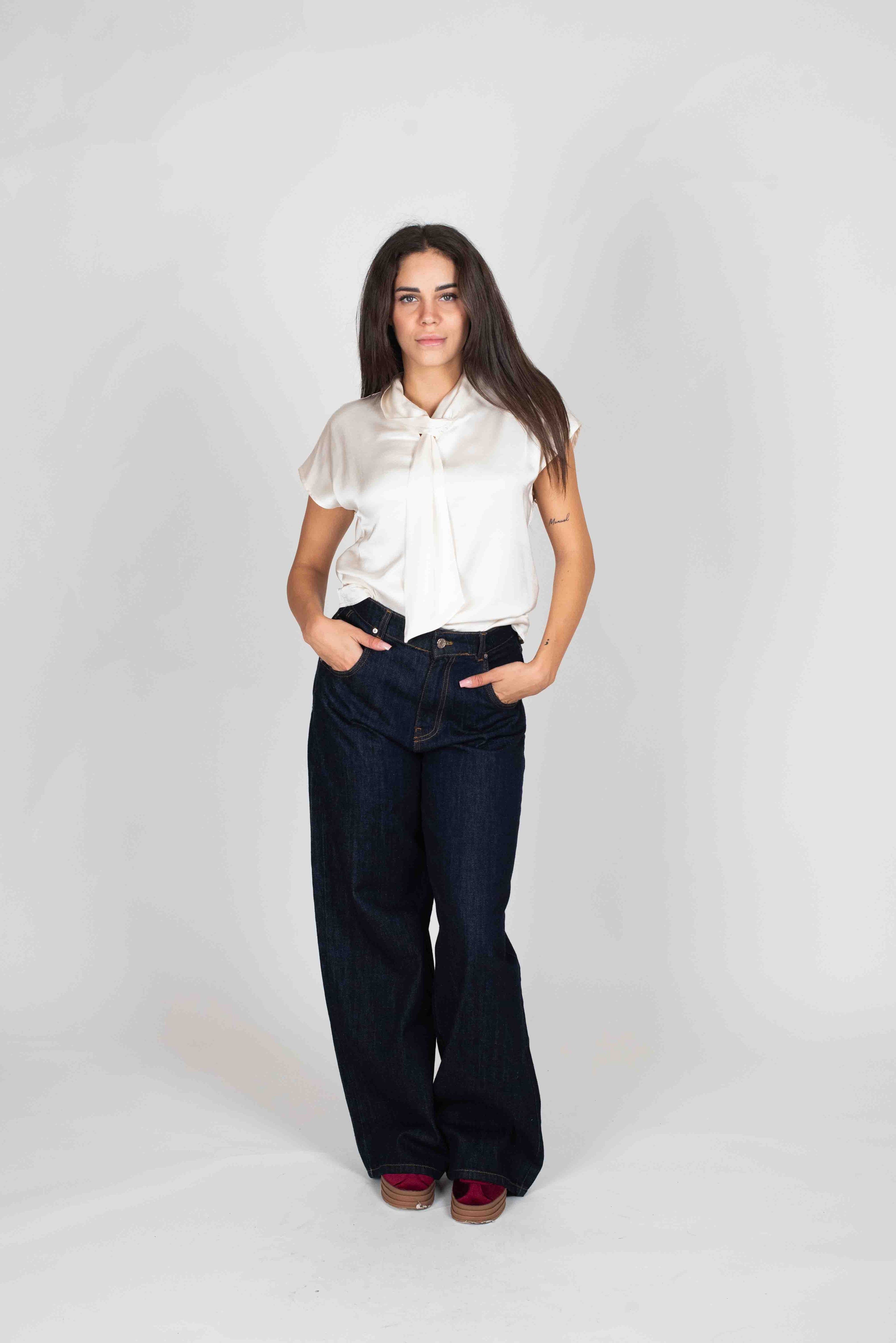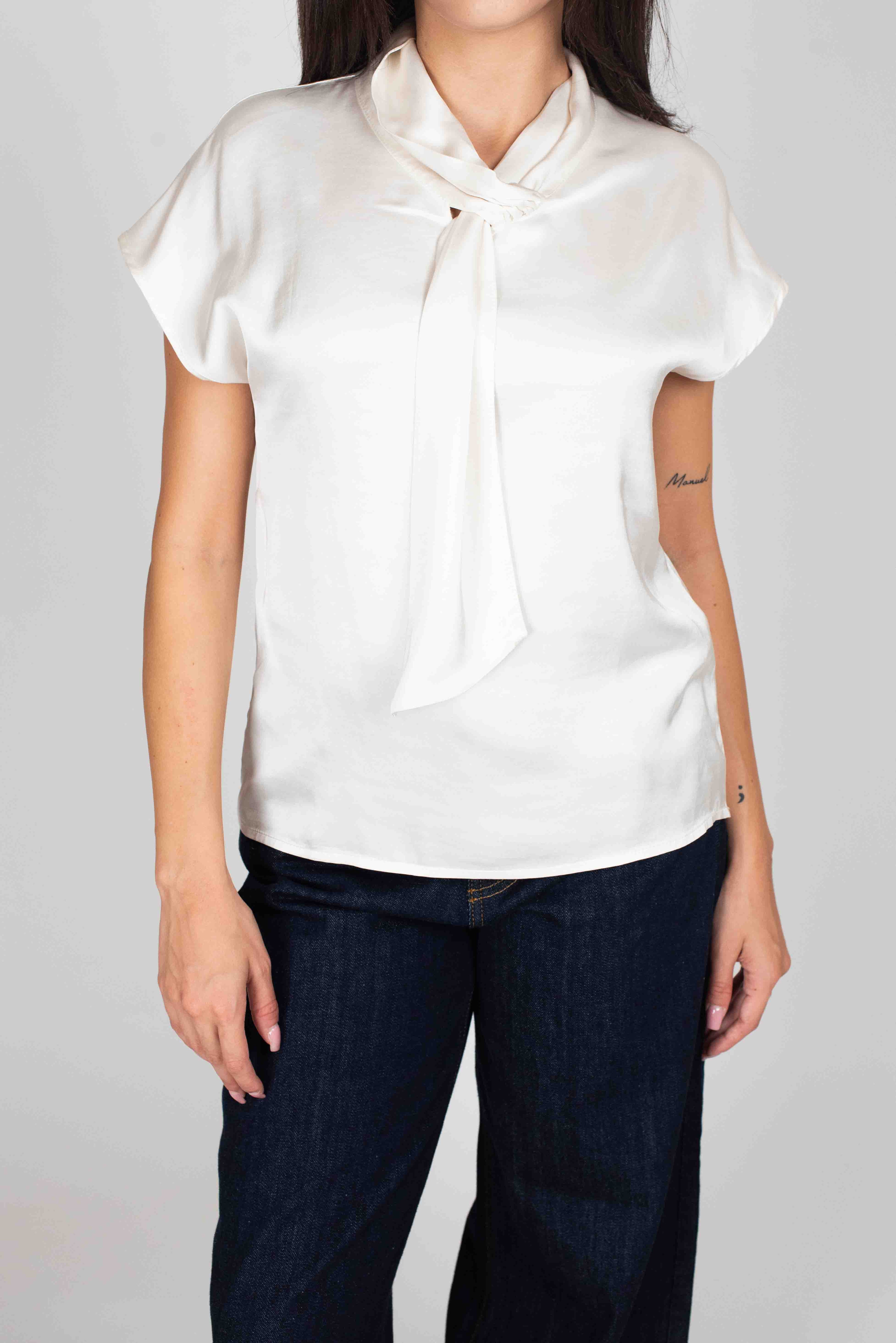 Blusa in raso manica scesa con fusciacca a cravatta.