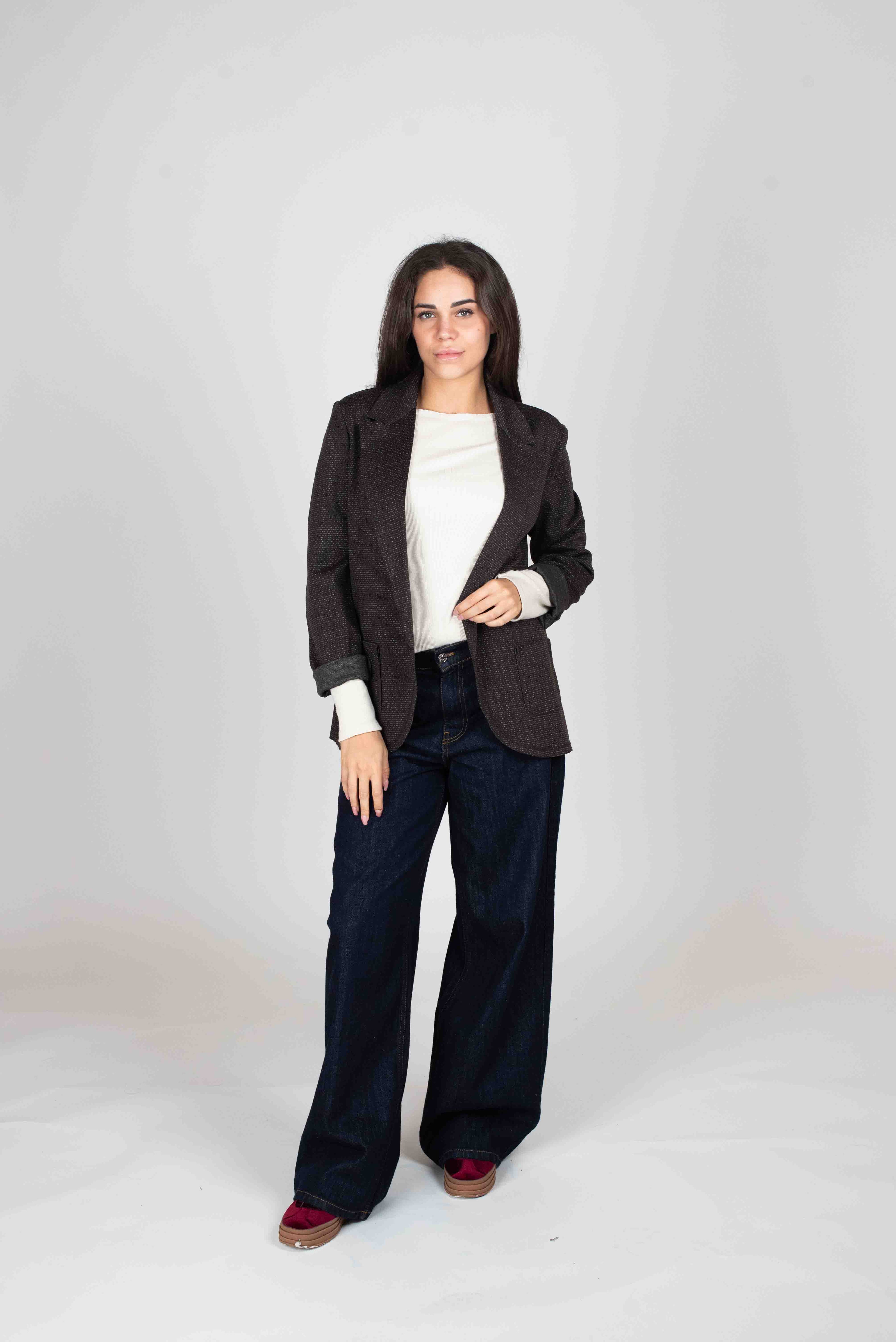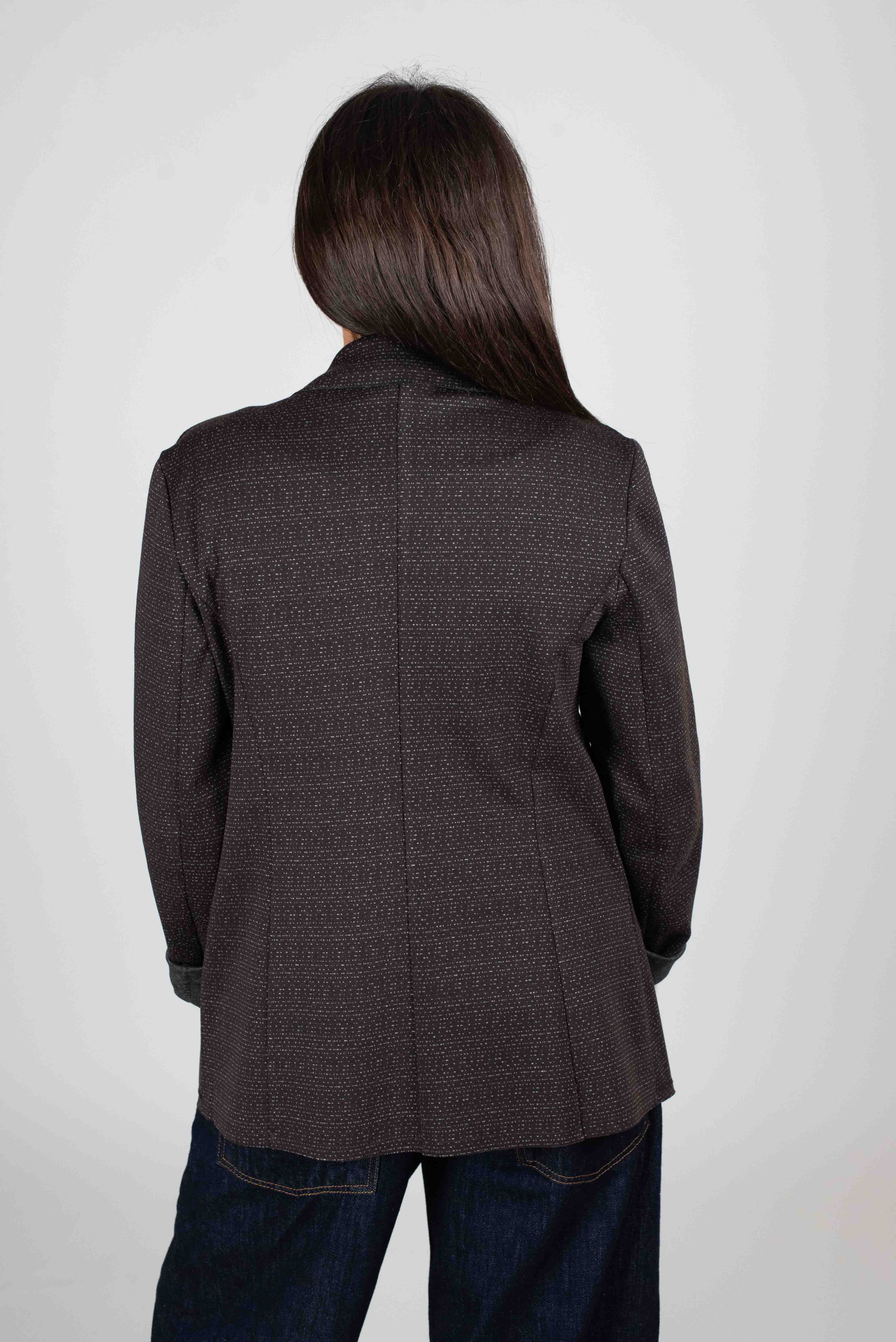Giacca destrutturata fantasia puntinata orlo vivo e tasca a toppa.
