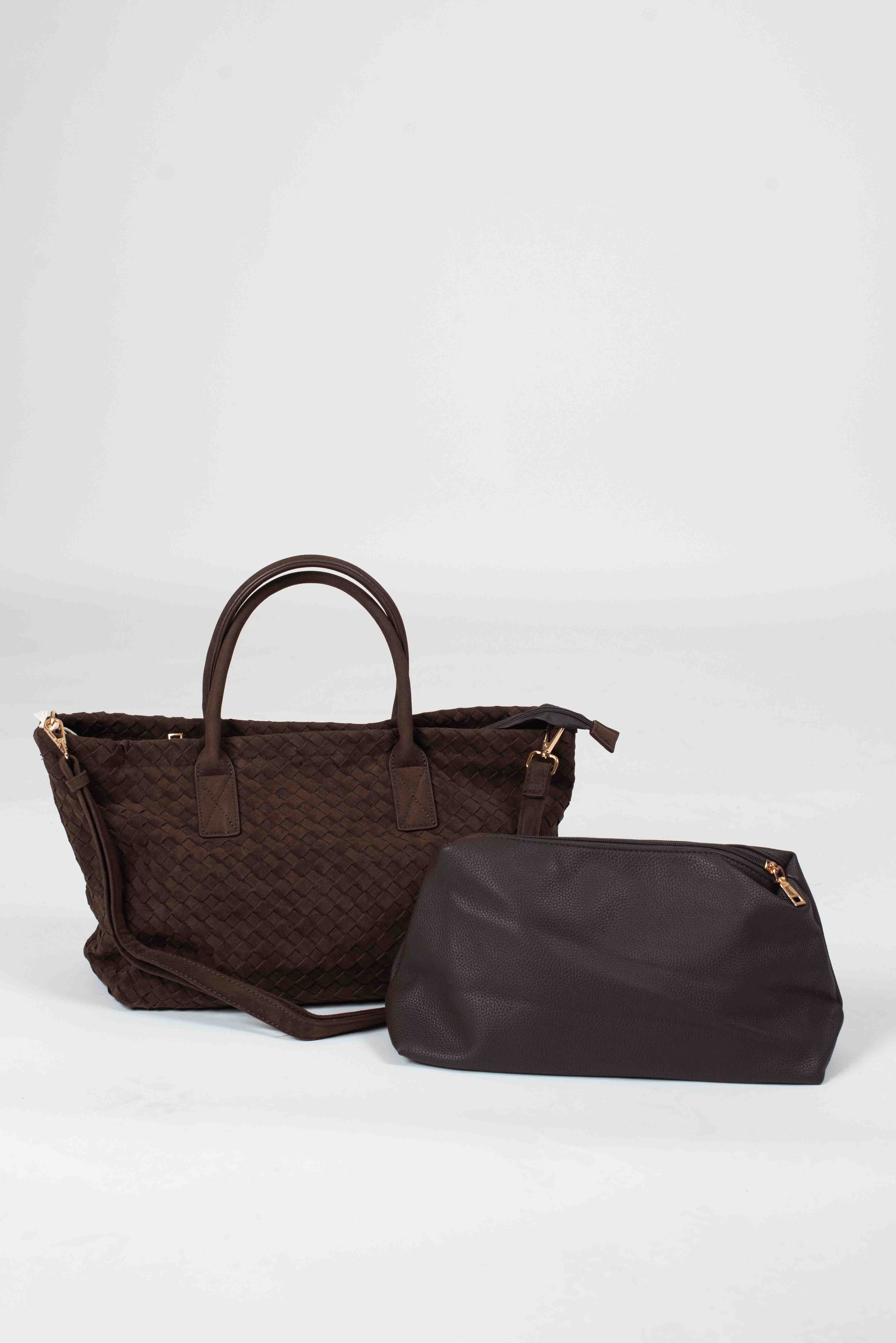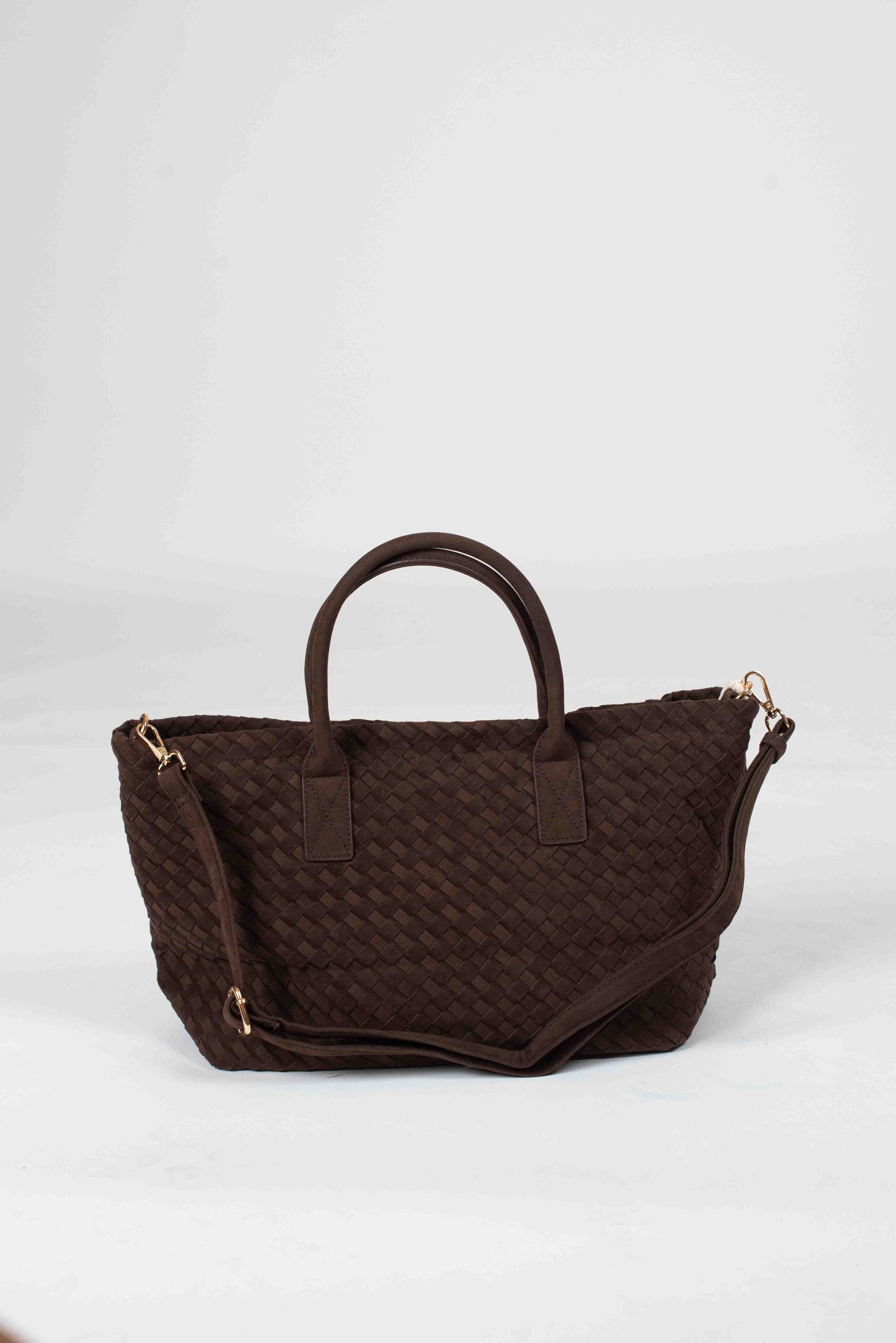 Borsa scamosciata intrecciata con tracolla e pochette interna.