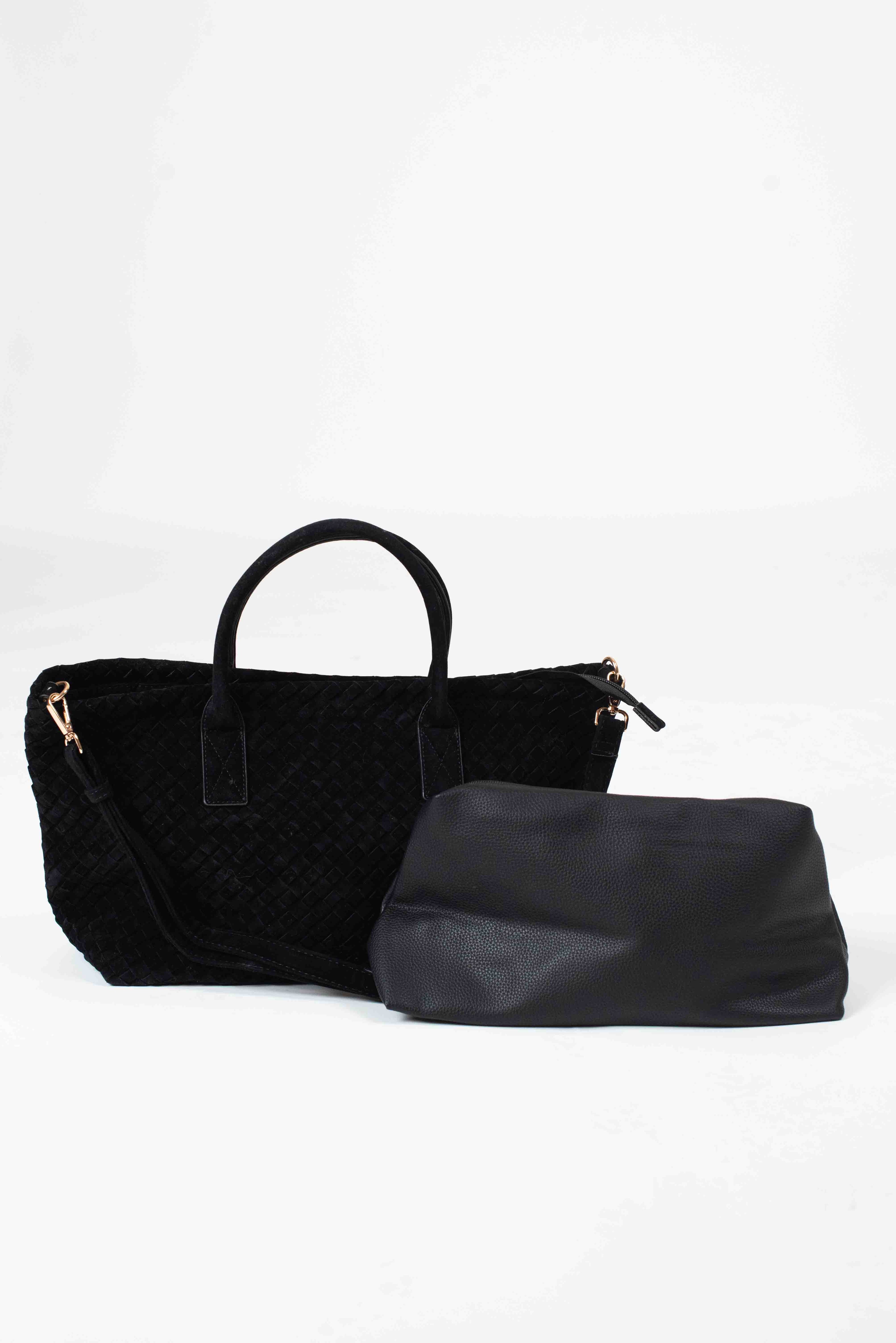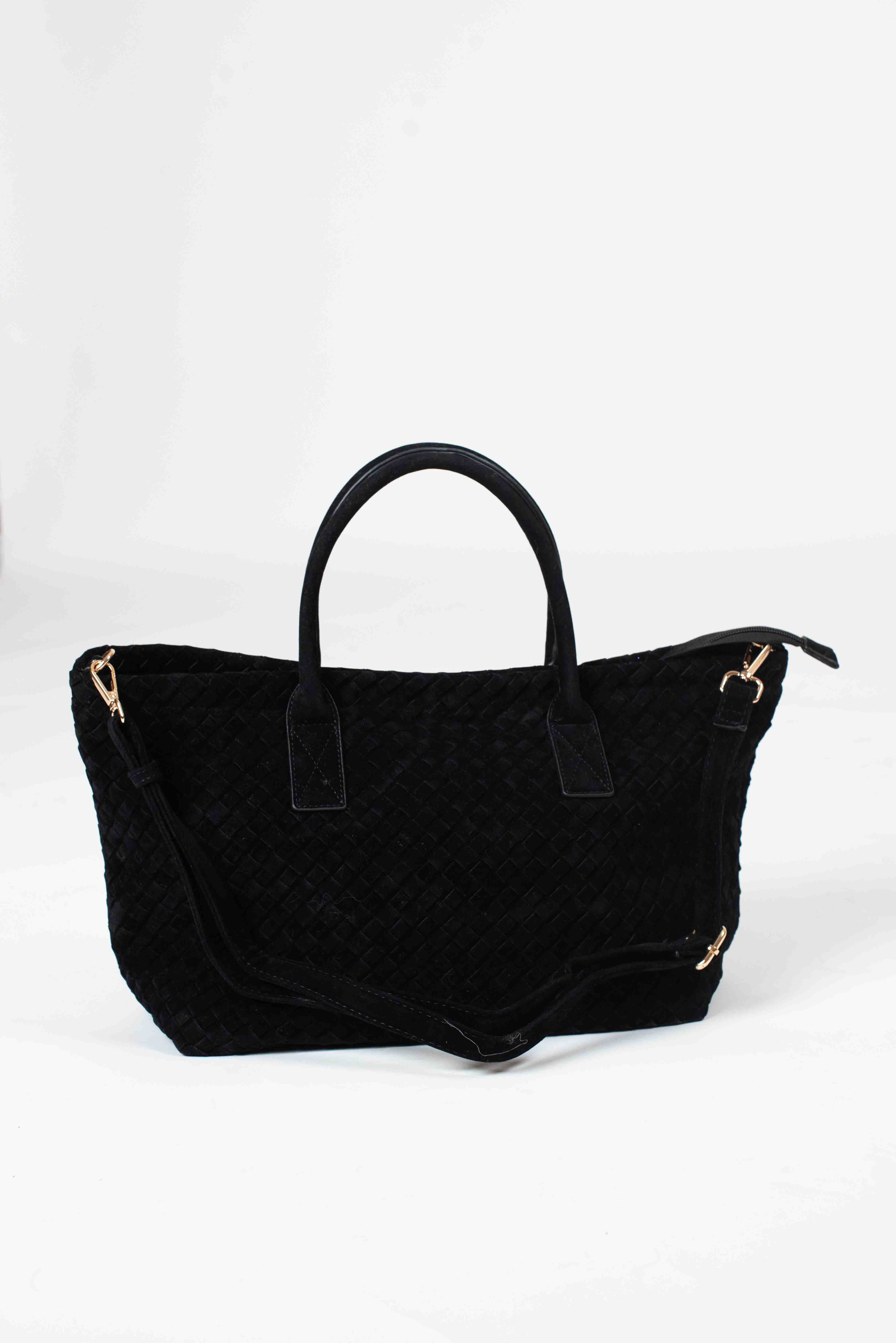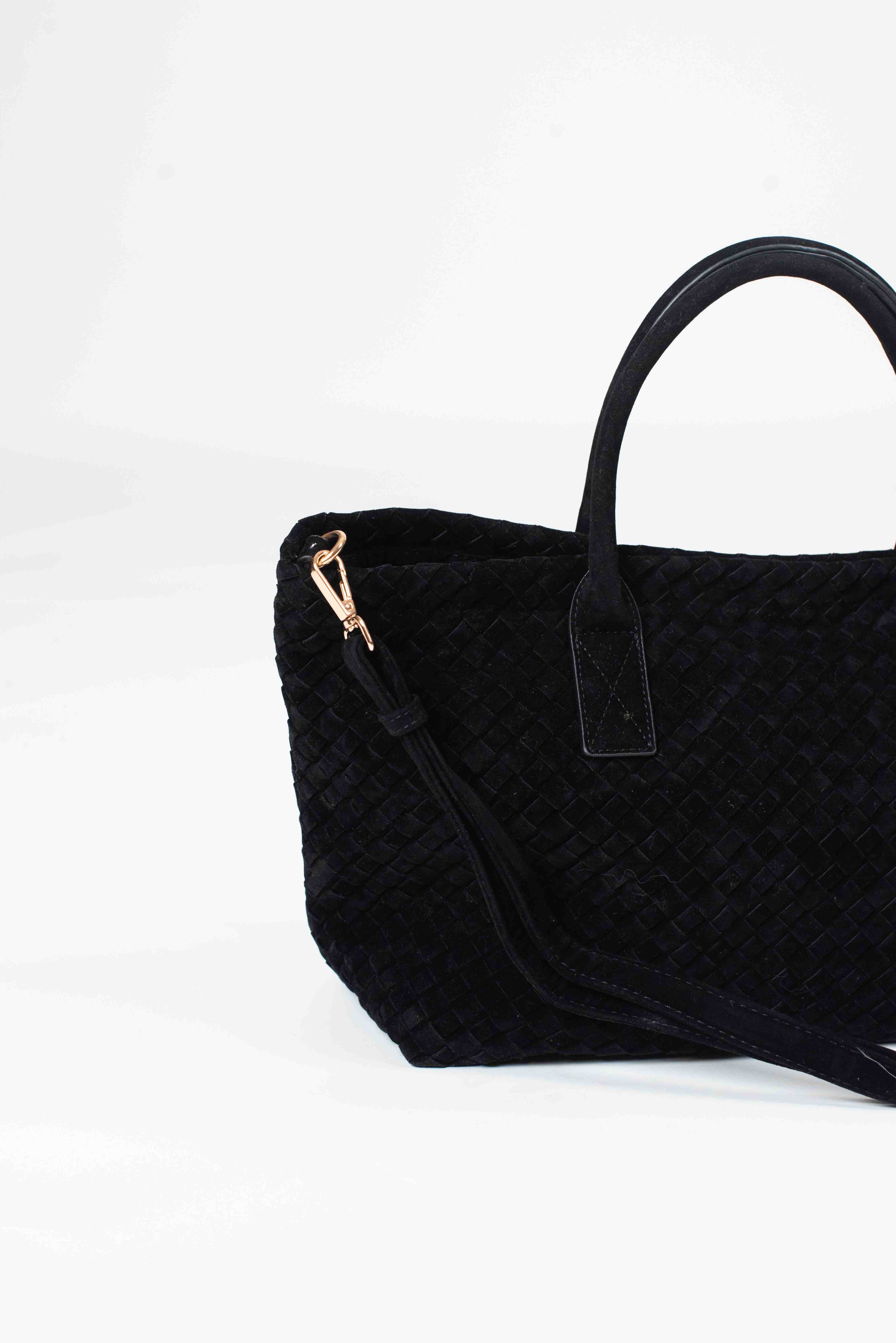 Borsa scamosciata intrecciata con tracolla e pochette interna.
