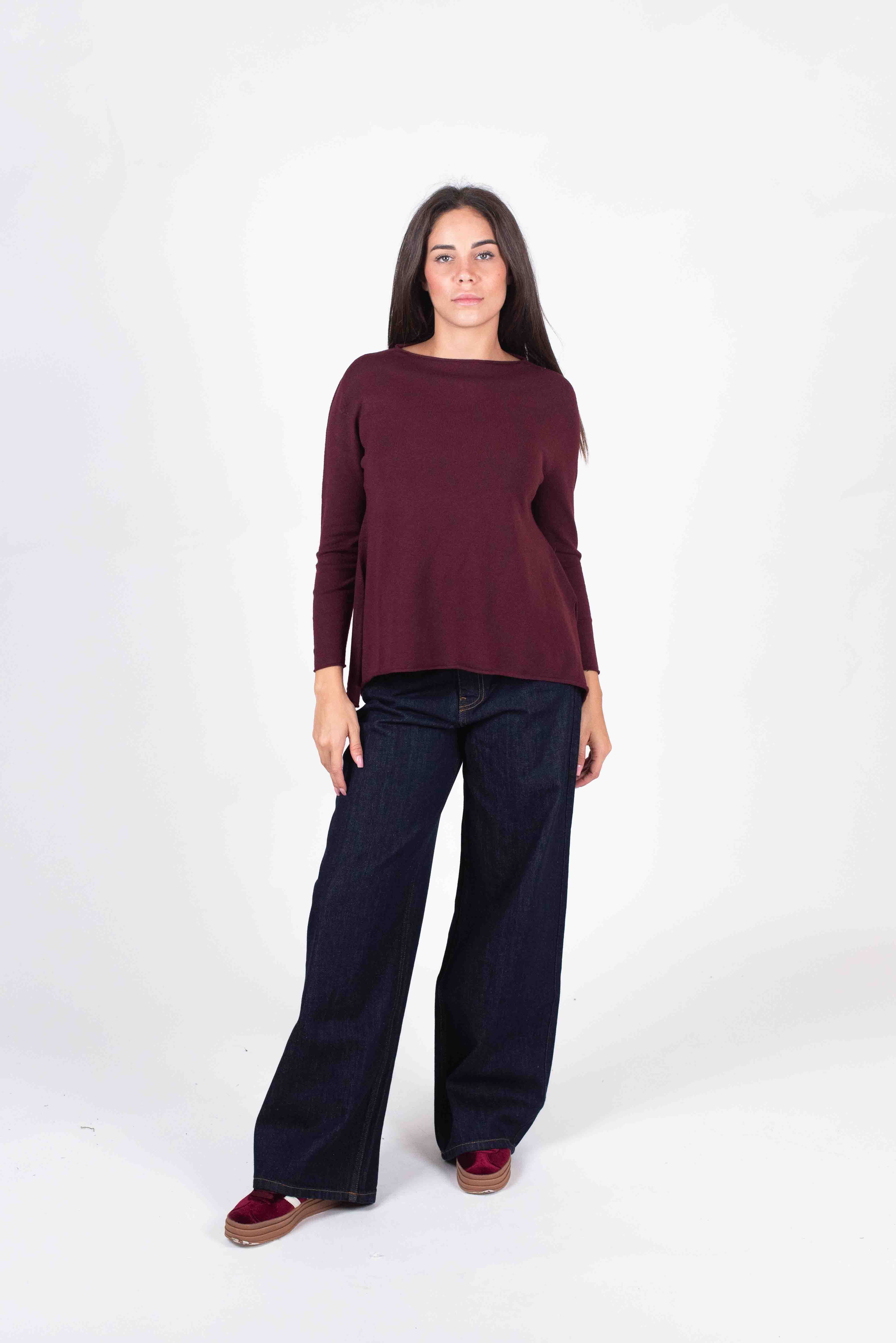 Maglia a scatola con collo a barca e spacchetti laterali.