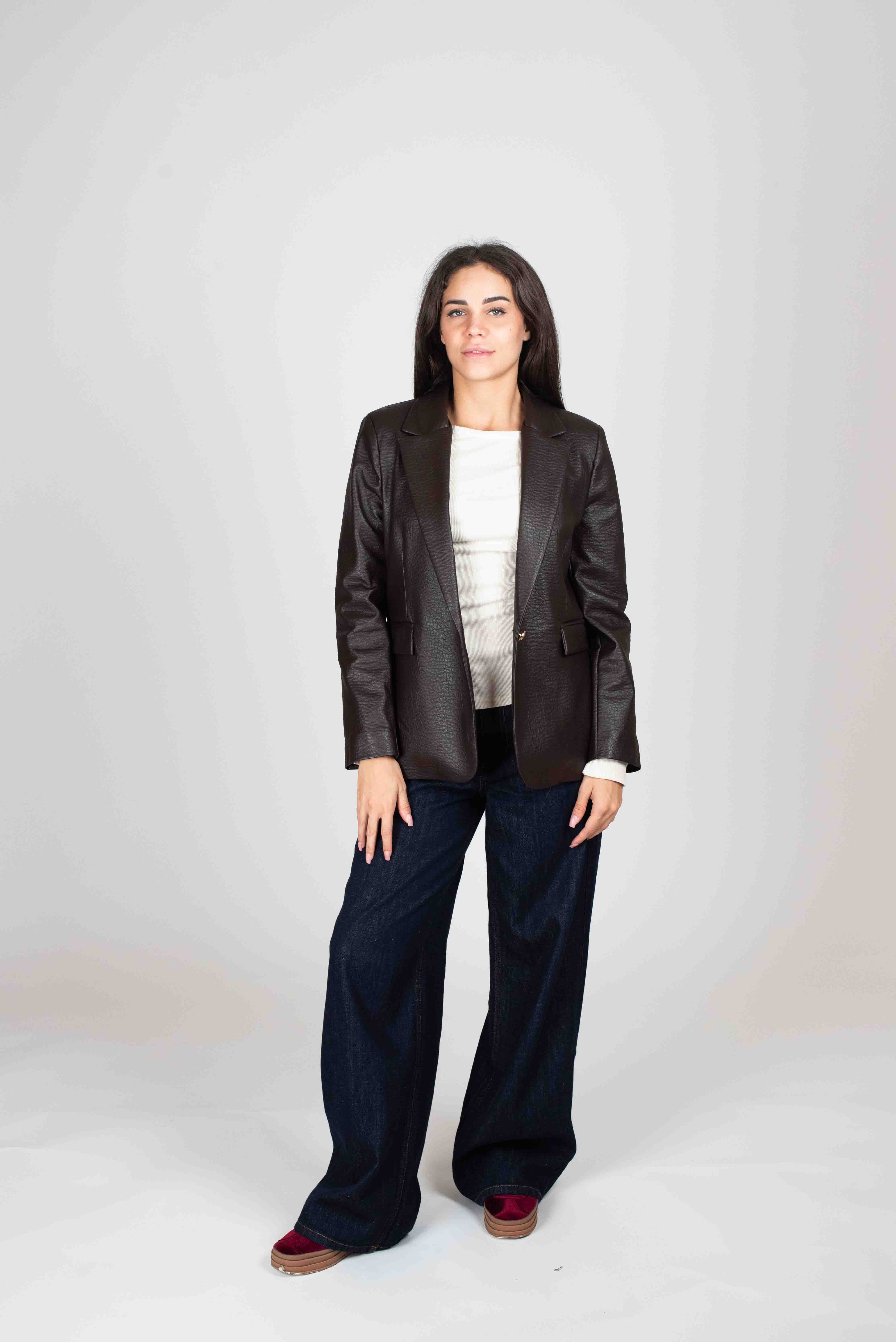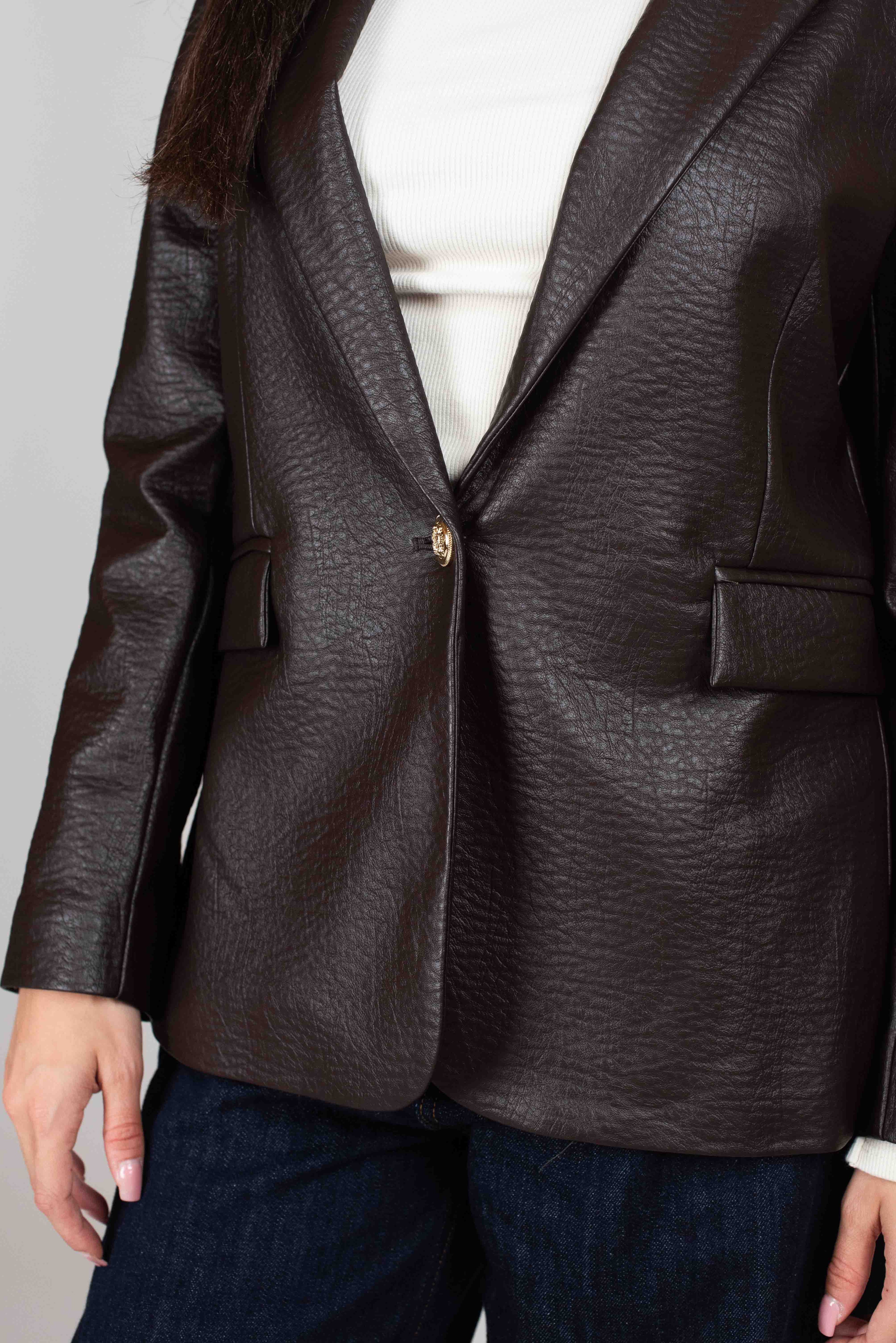 Tensione IN Giacca Monopetto Ecopelle - MORO