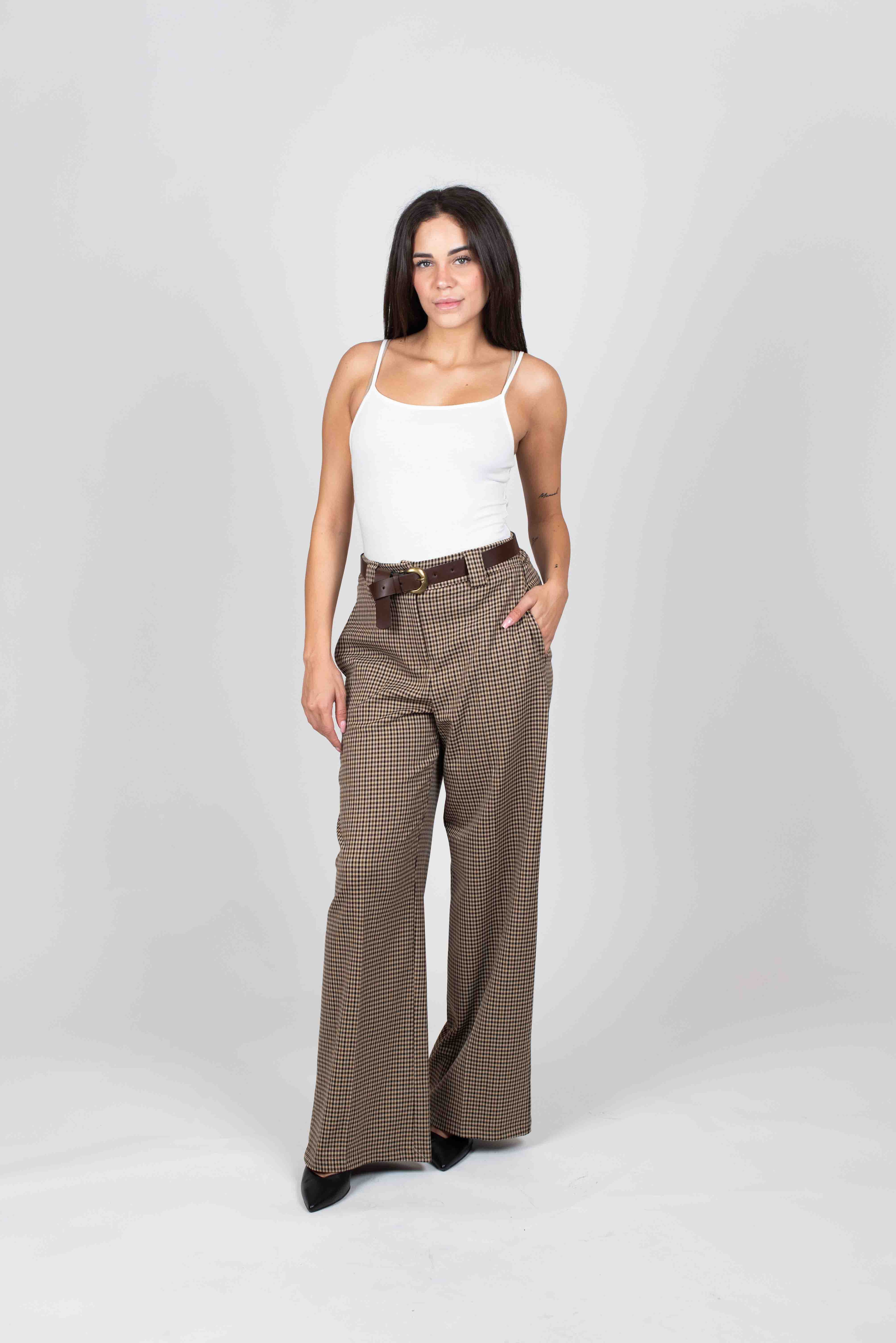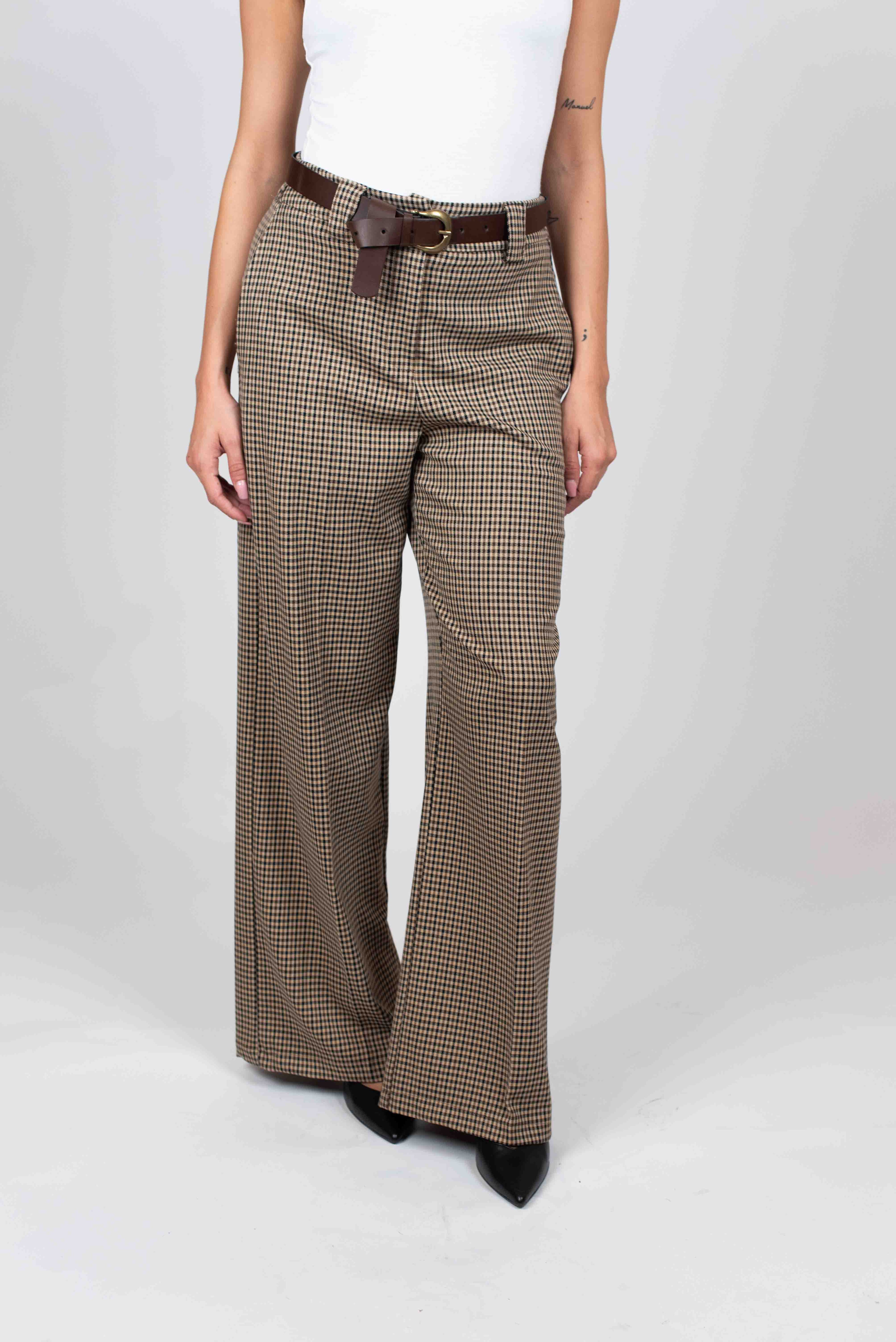 Tensione In Pantaloni Quadro C/Cintura - Ecru/Biscotto/Nero