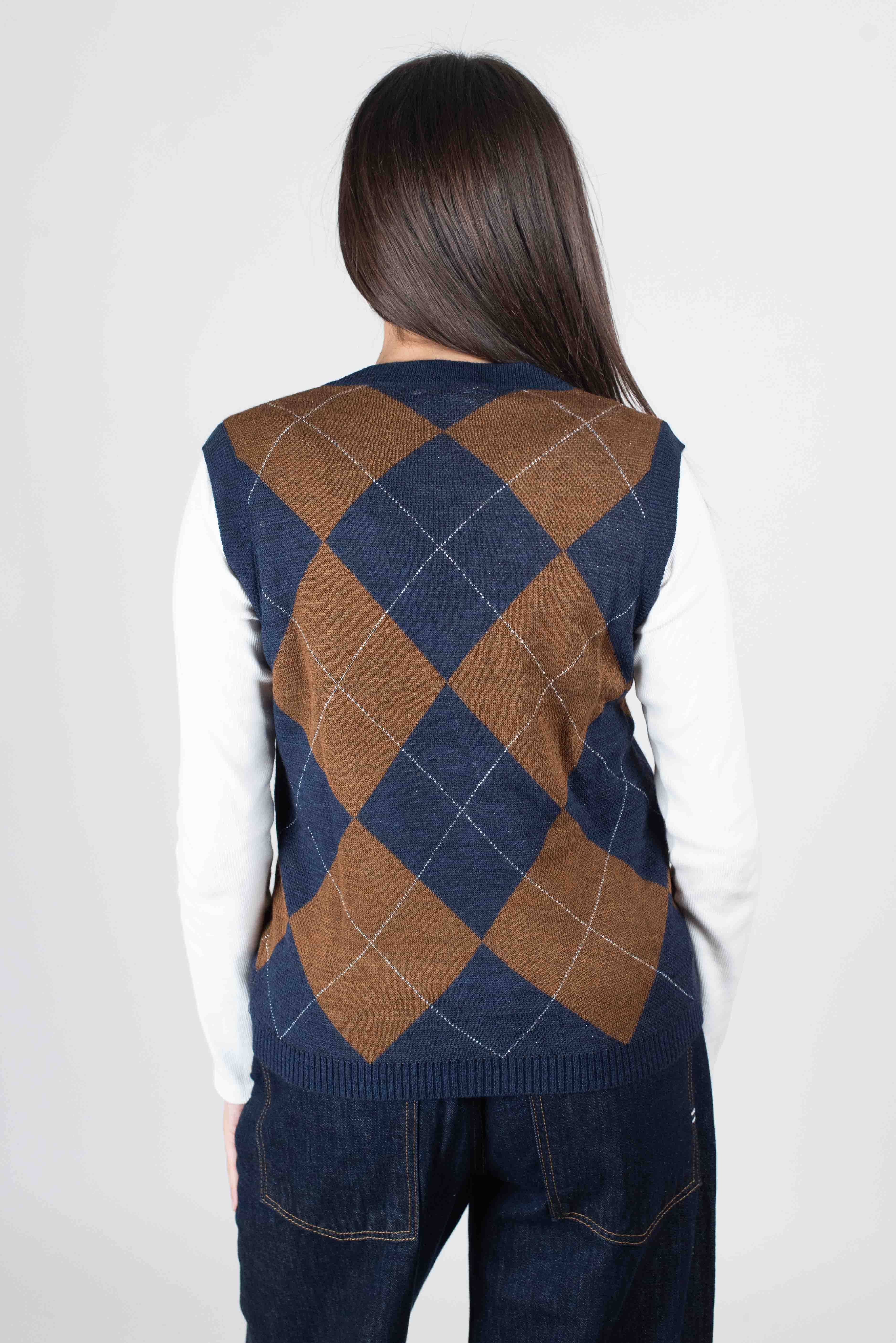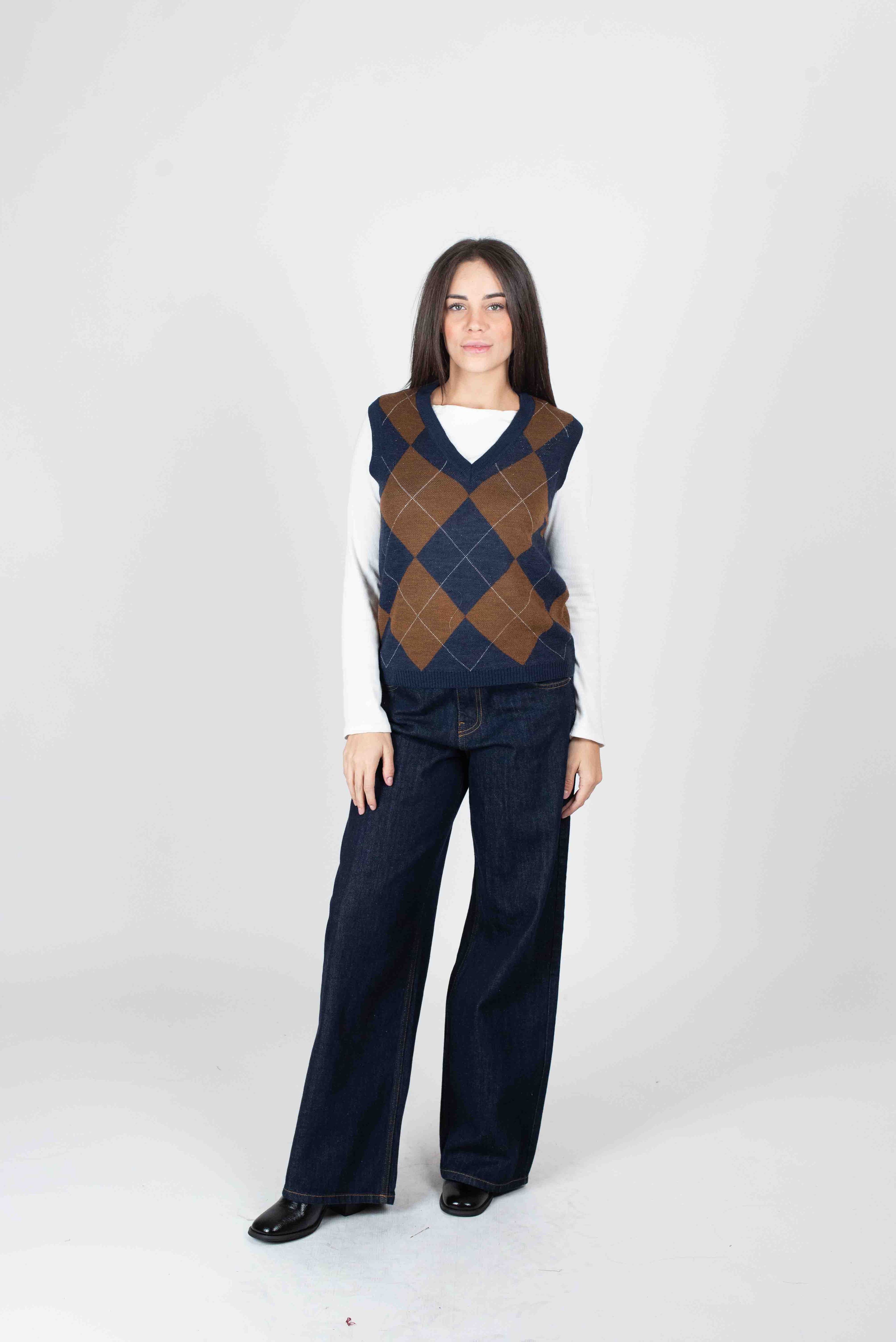 Via Vai Gilet Slim Maglia V - BLU/CUOIO