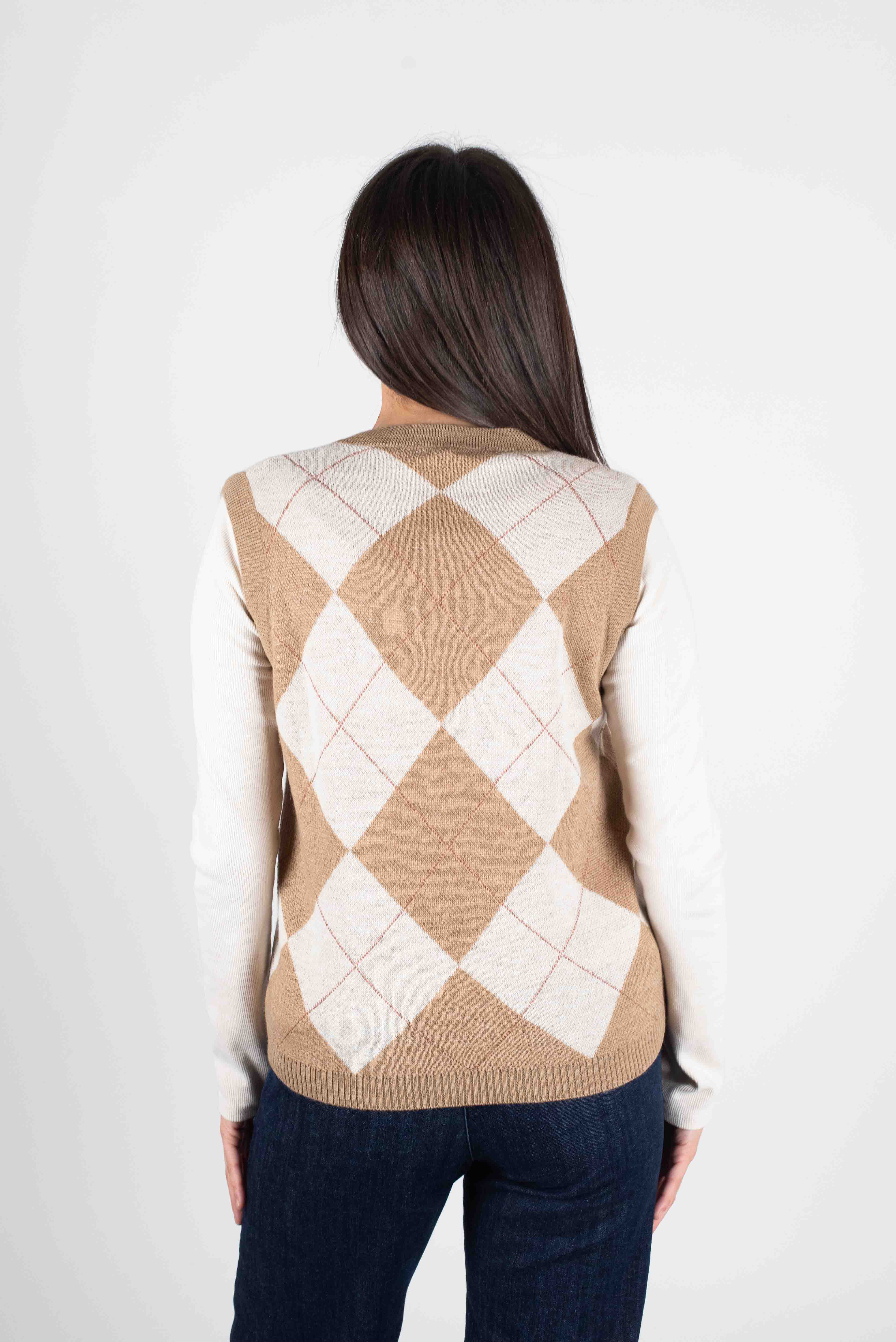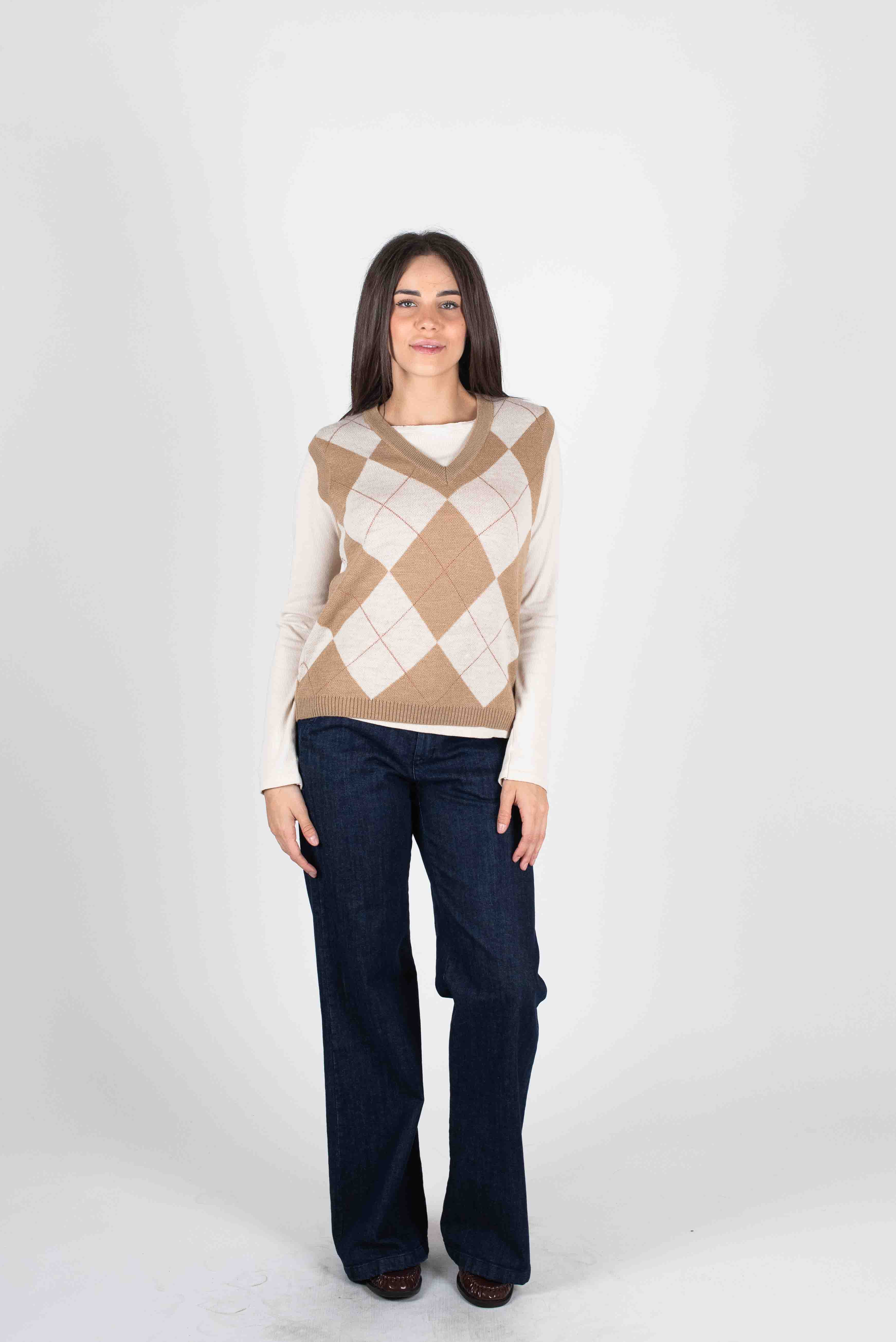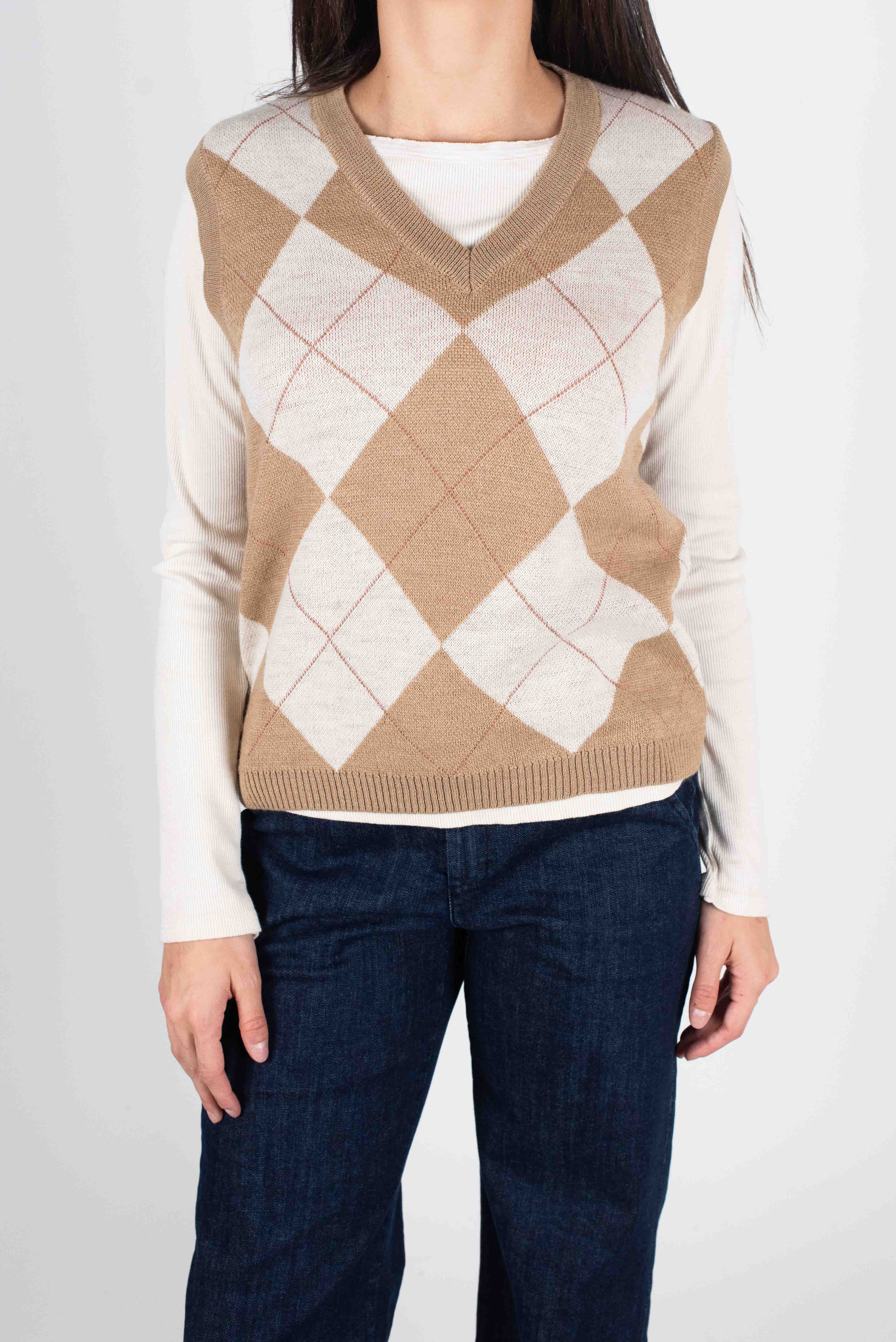Gilet slim con disegno rombi in maglia.
