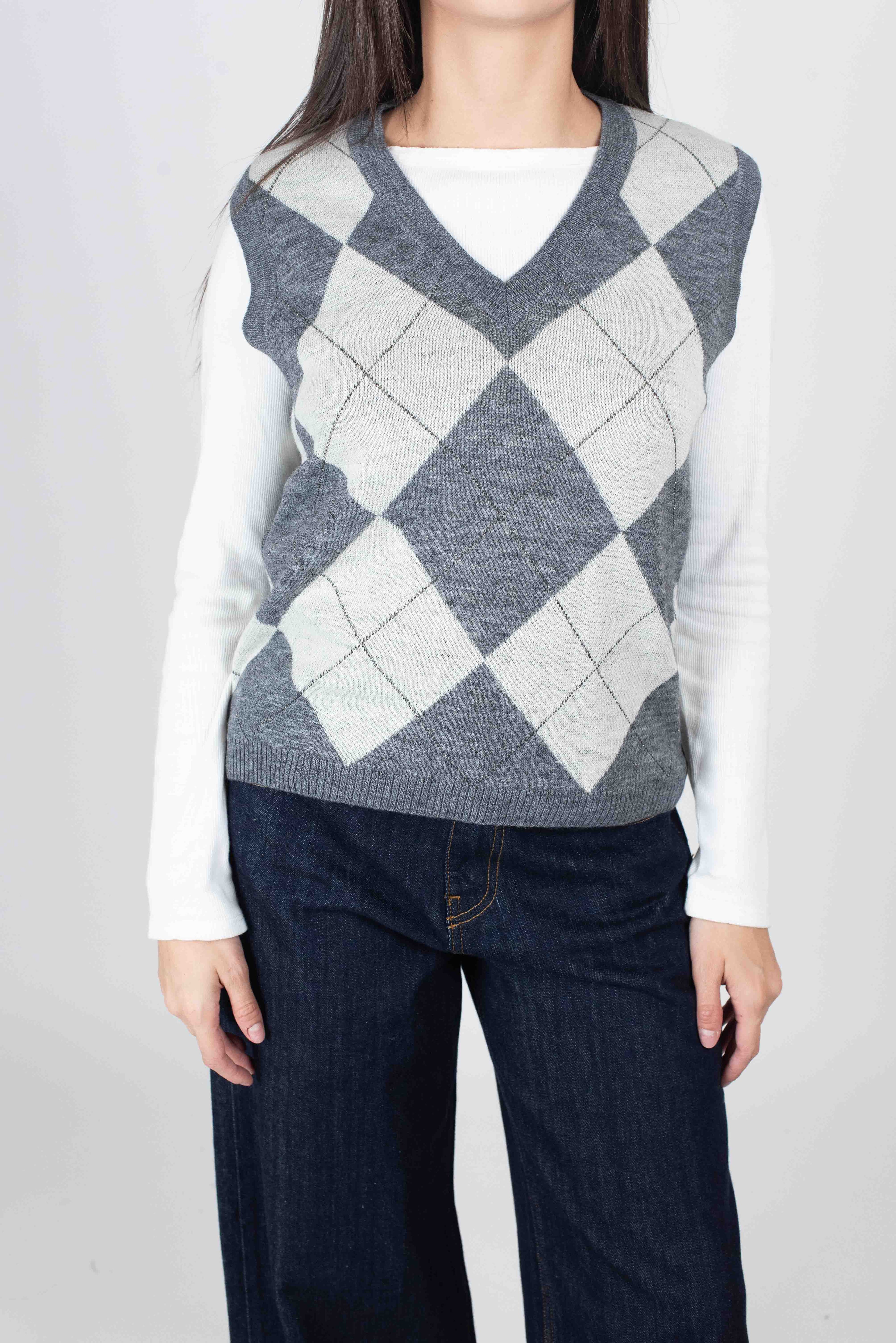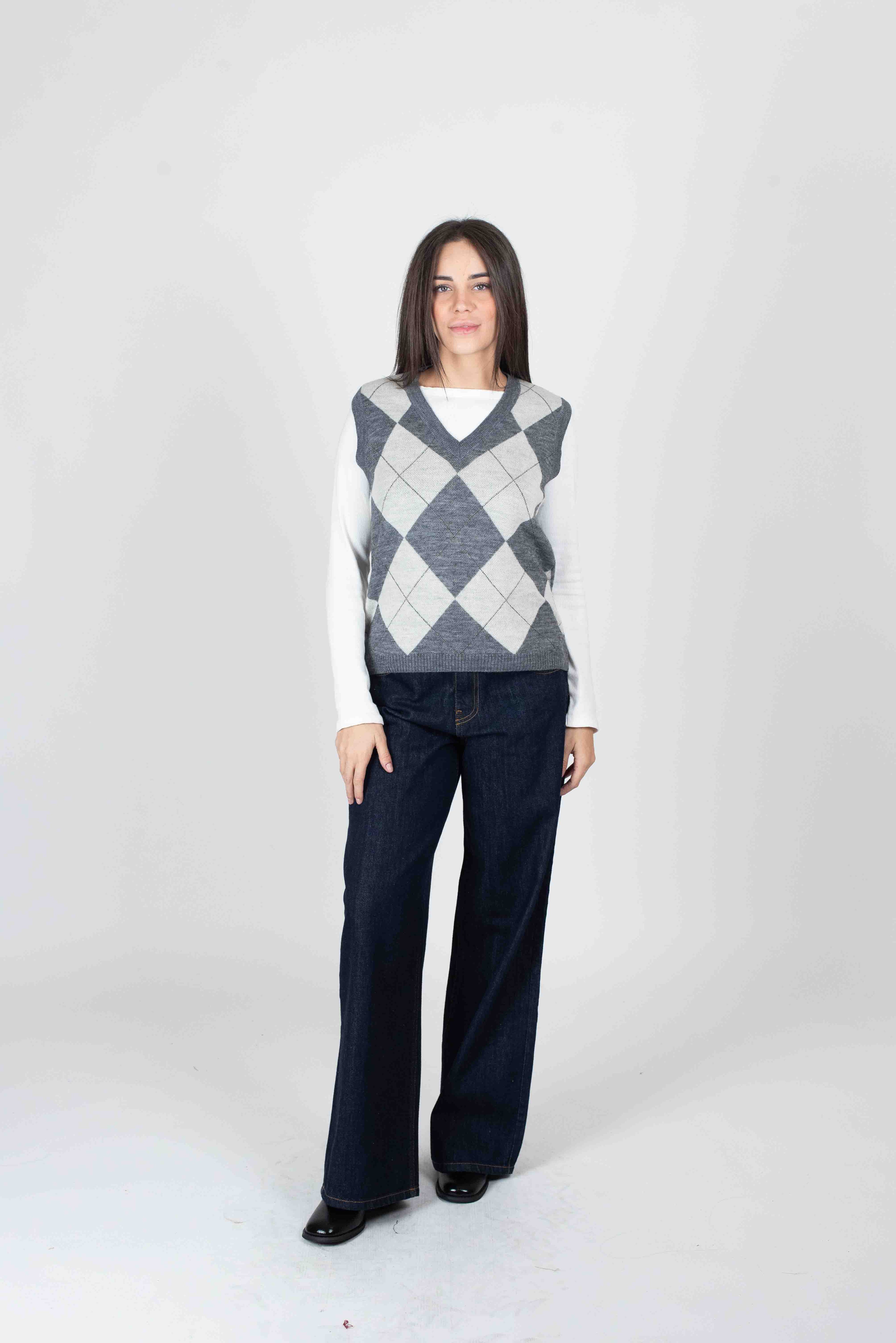 Gilet slim con disegno rombi in maglia.