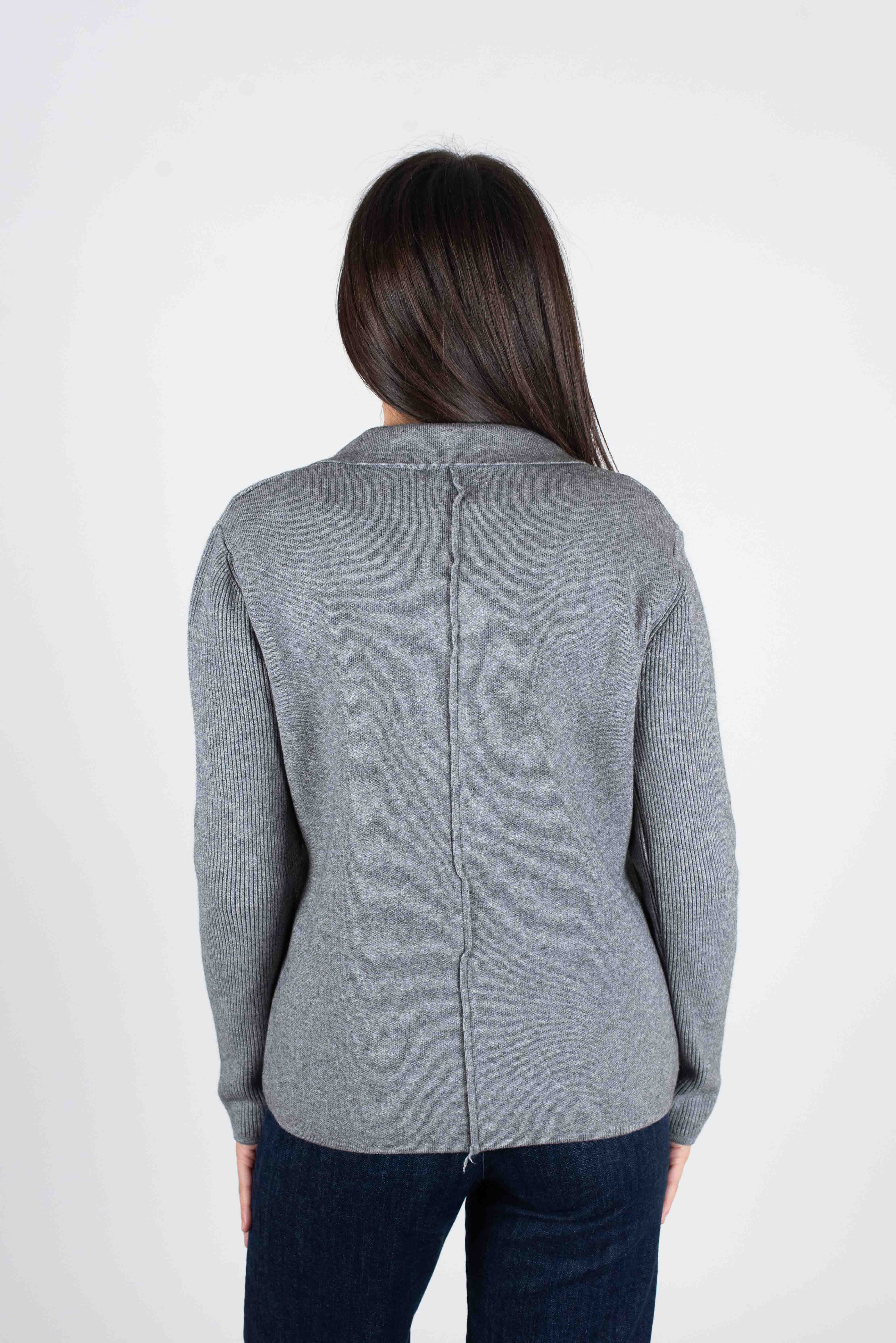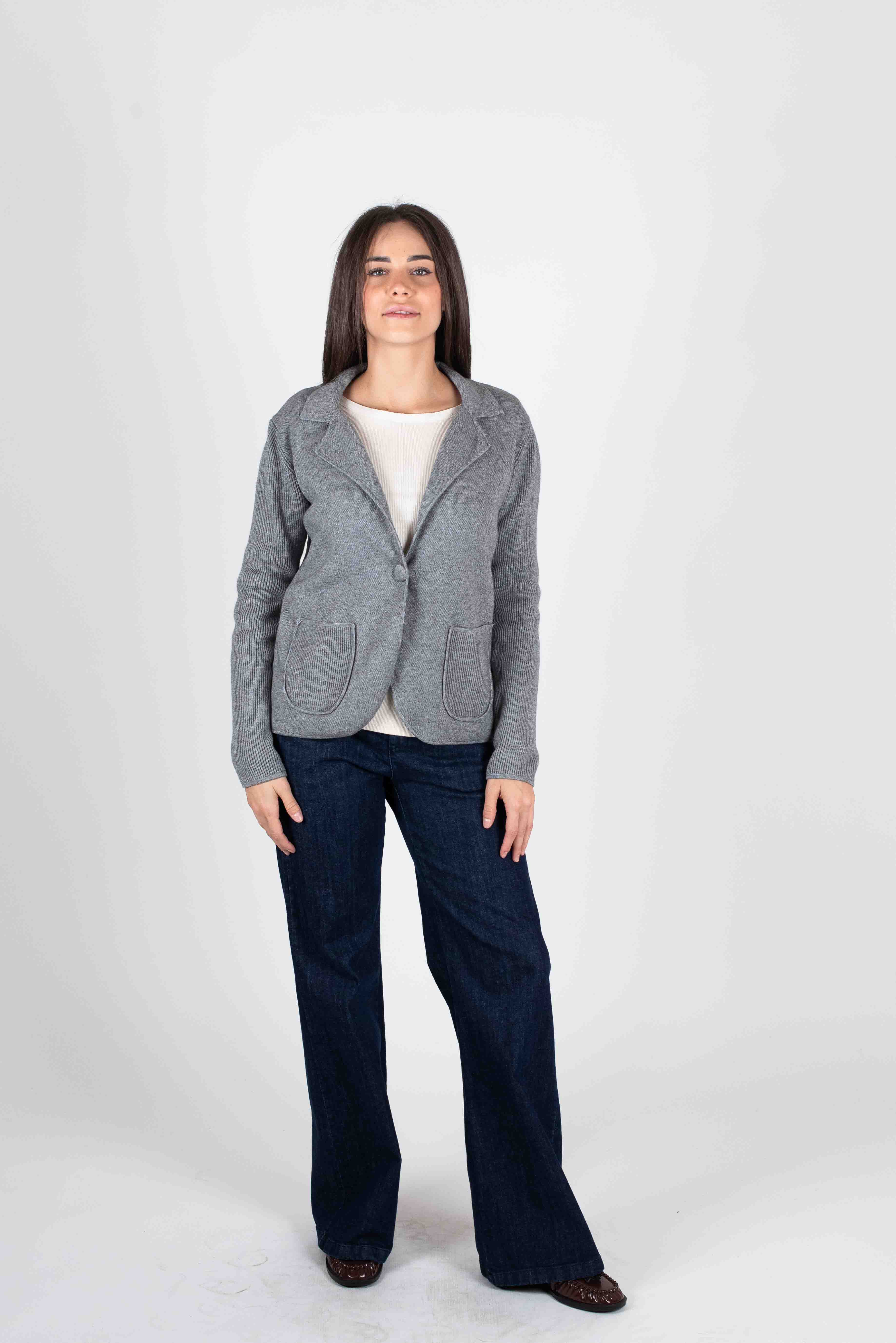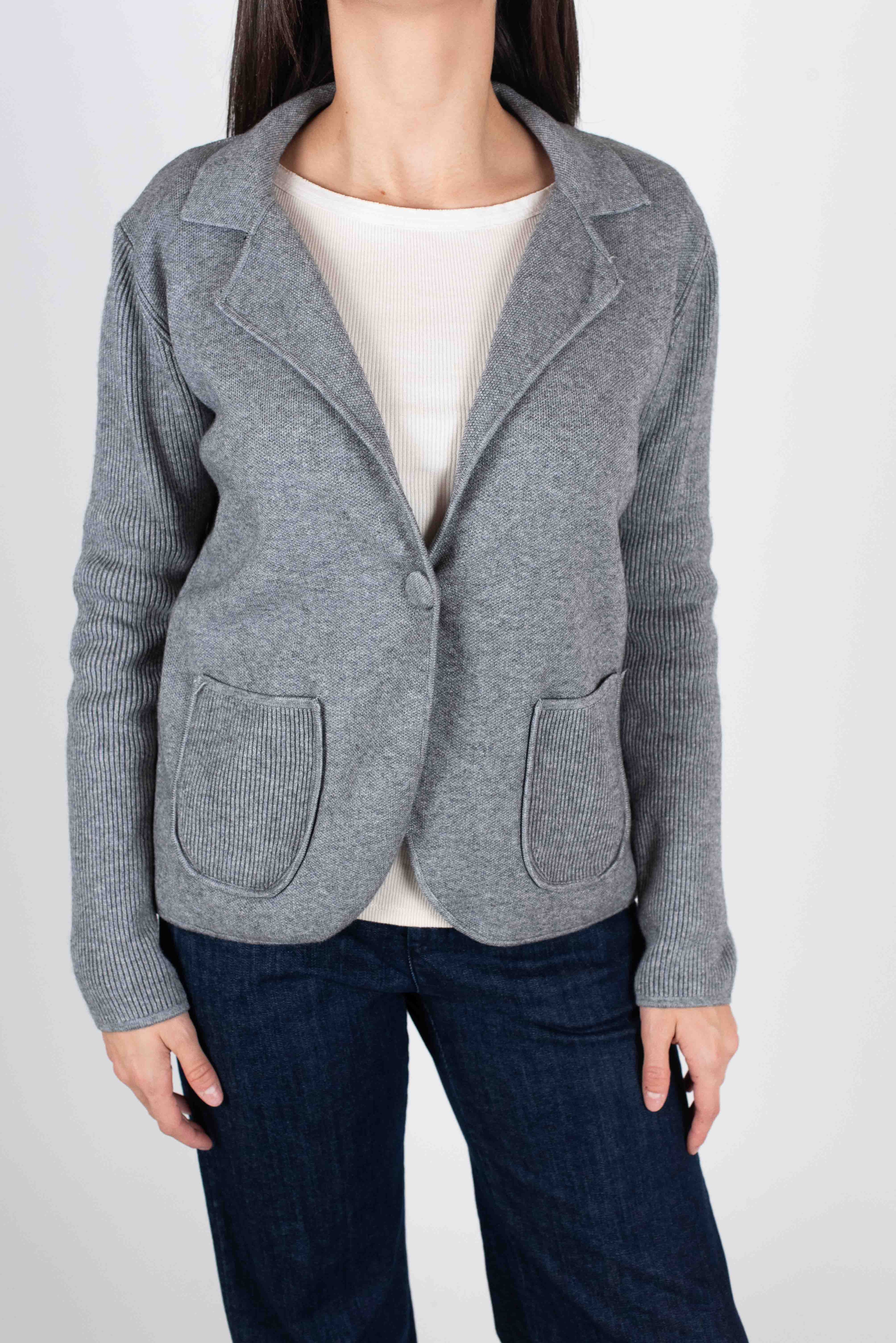 Giacca maglia a un bottone con maniche e tasche frontali a costine.
