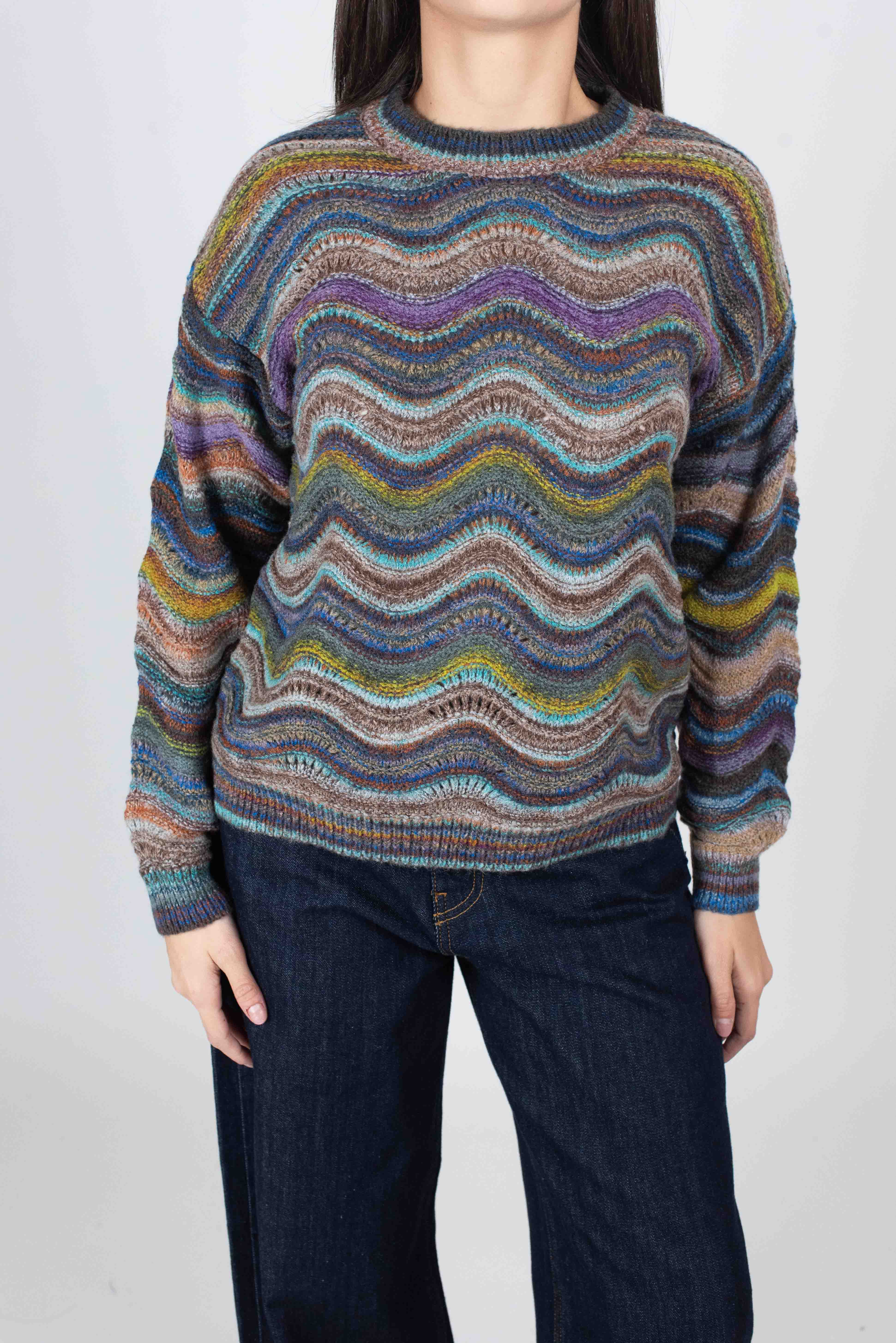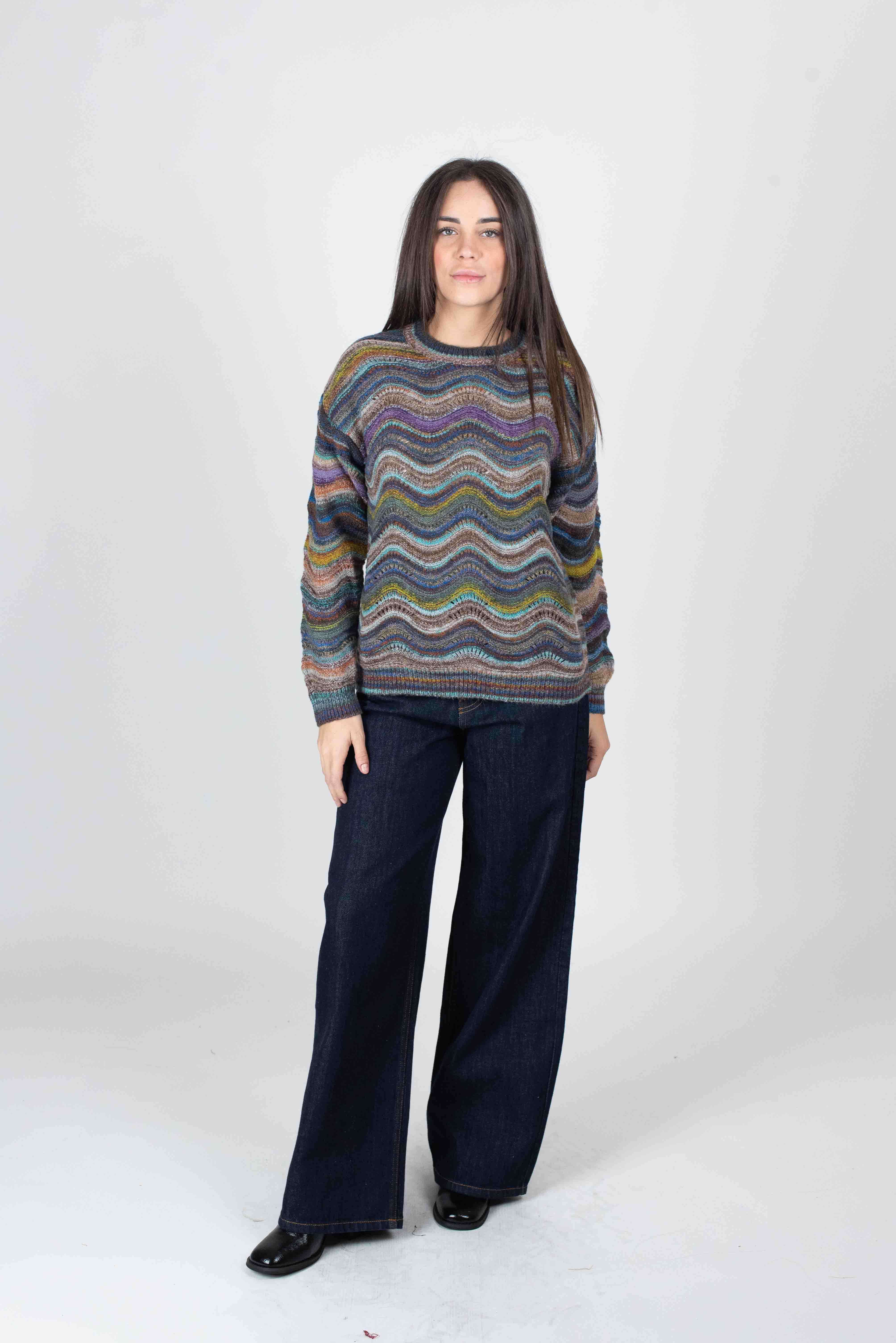 Maglia girocollo multicolor.