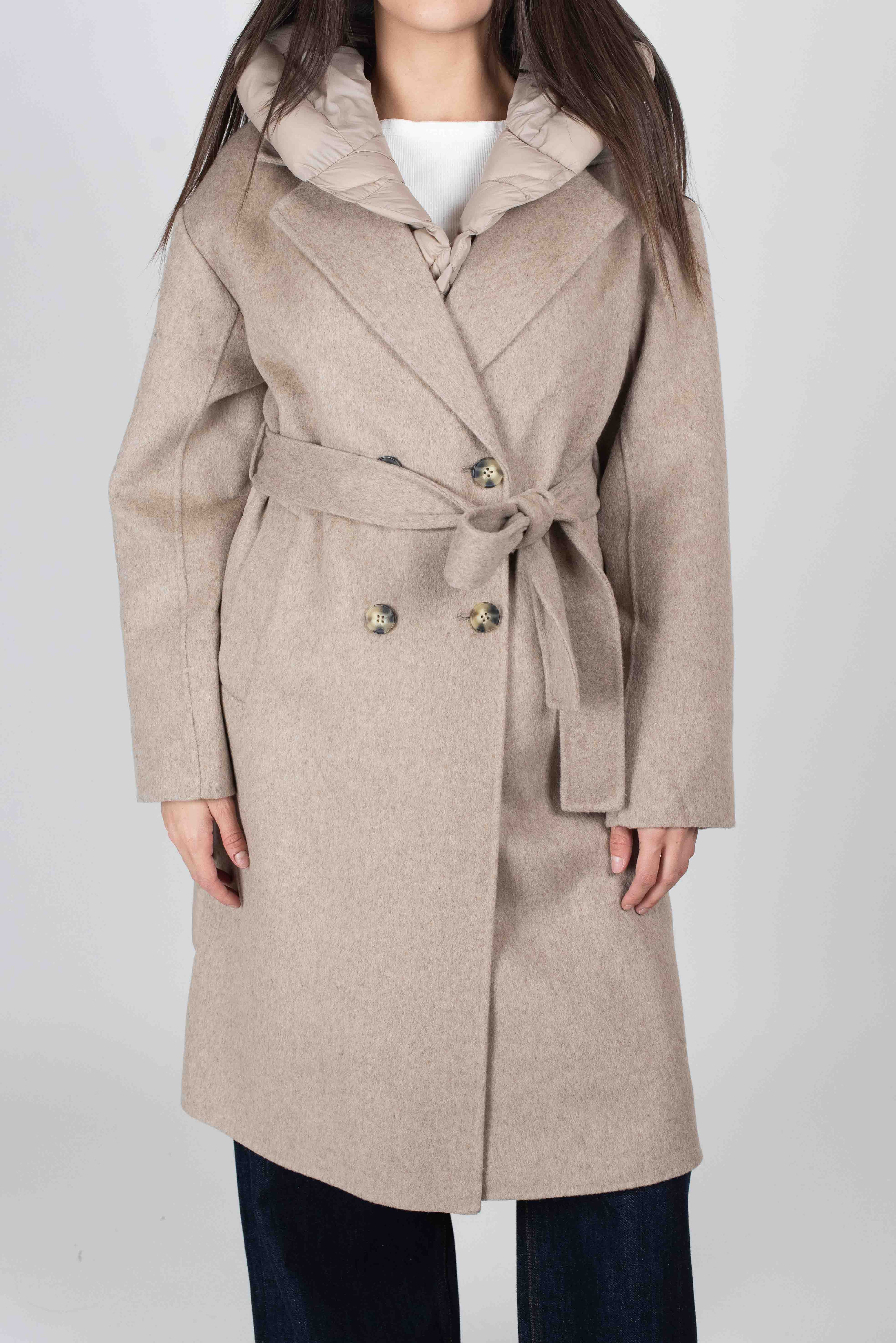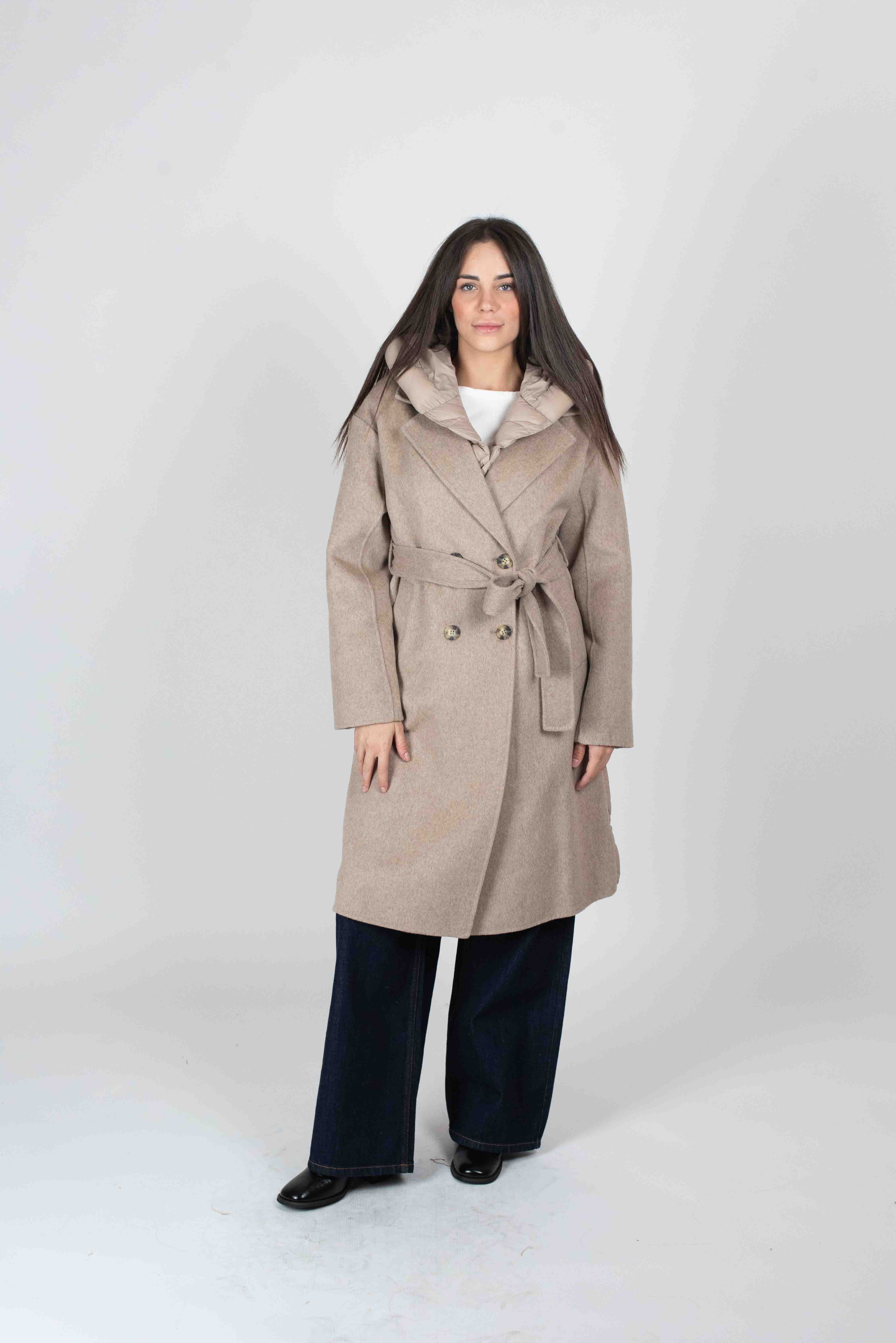 Cappotto Outdoor doppiopetto con cappuccio ed inserti in piumino removibili.