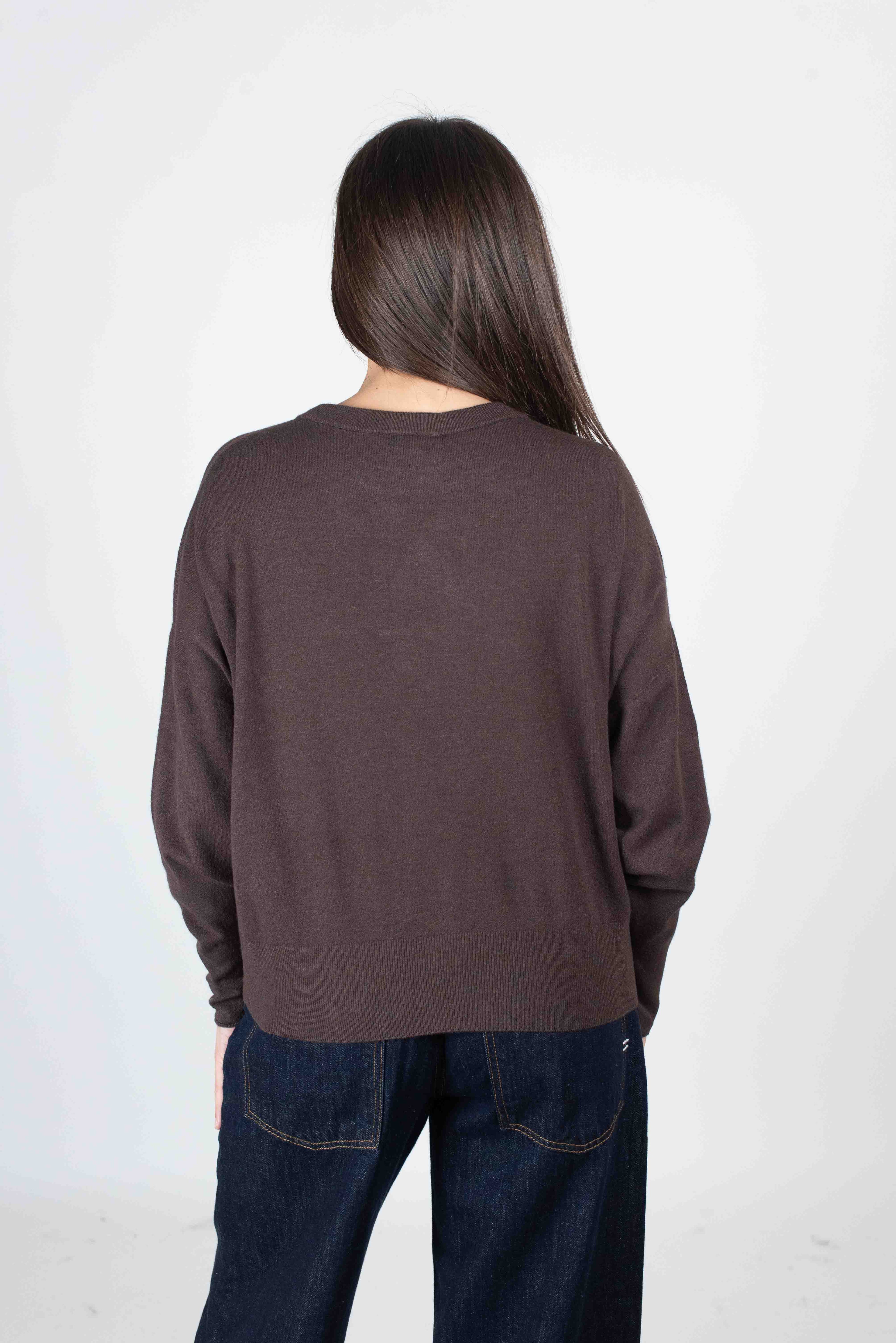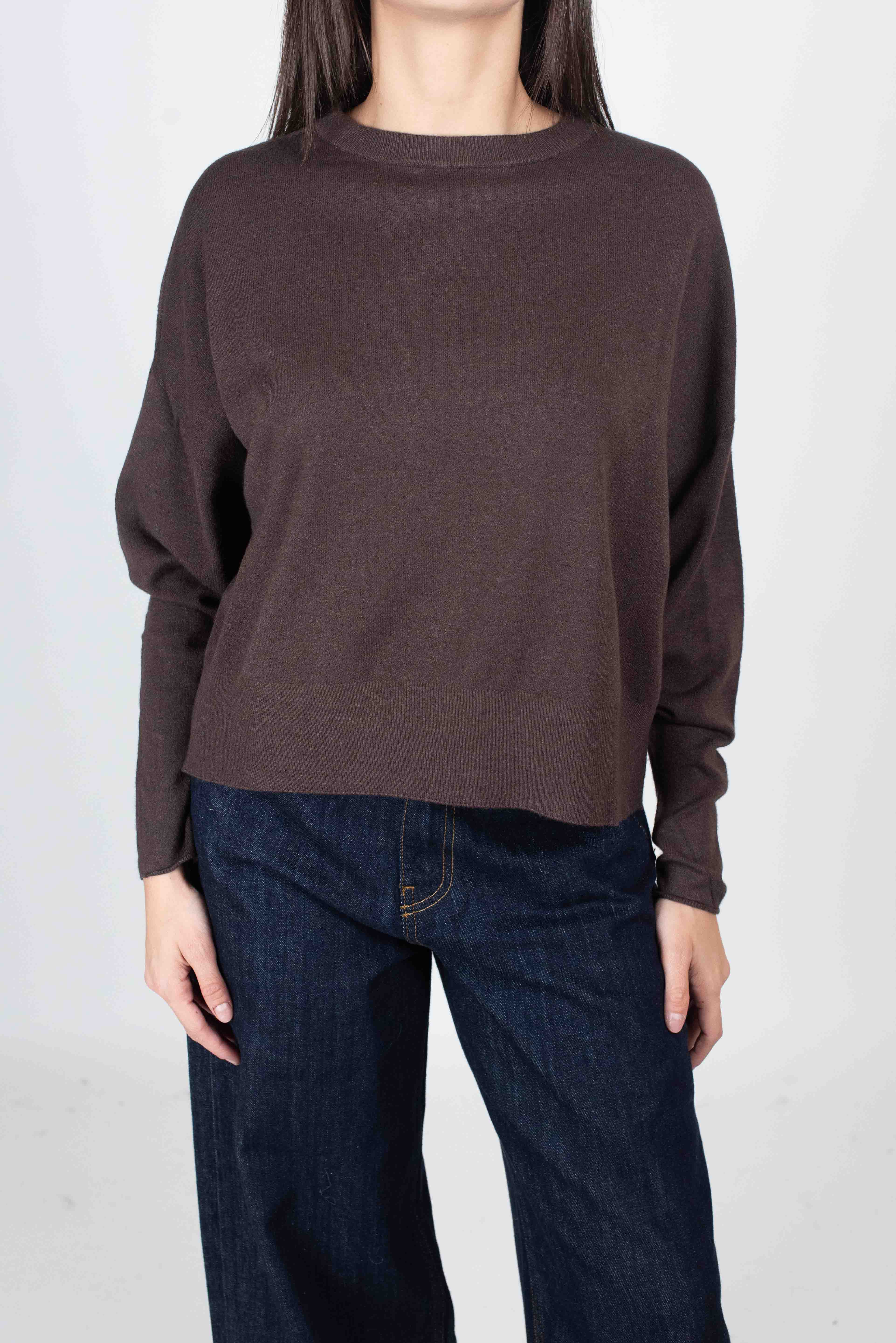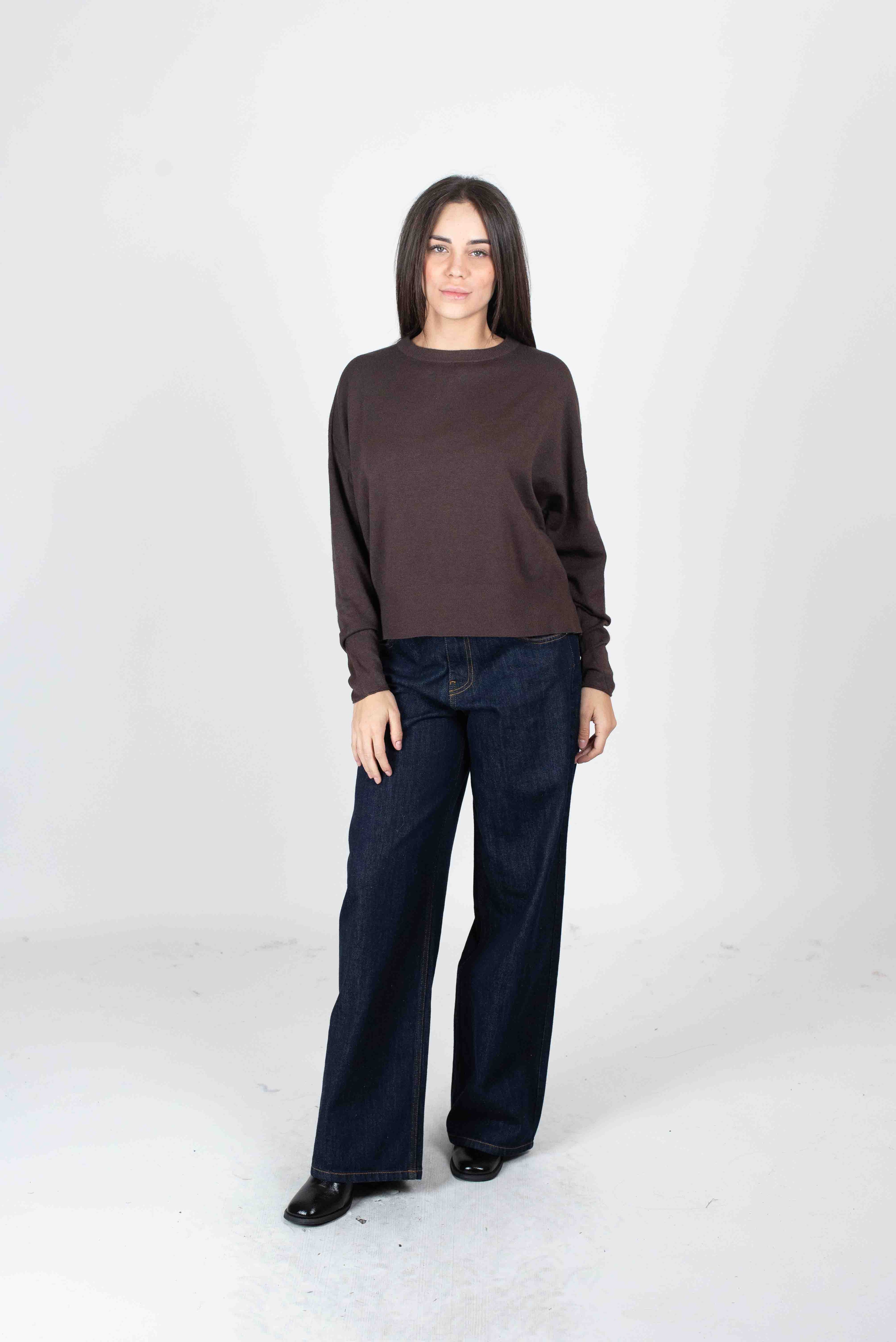 Maglia scatola con manica a pipistrello e cannolè alto.