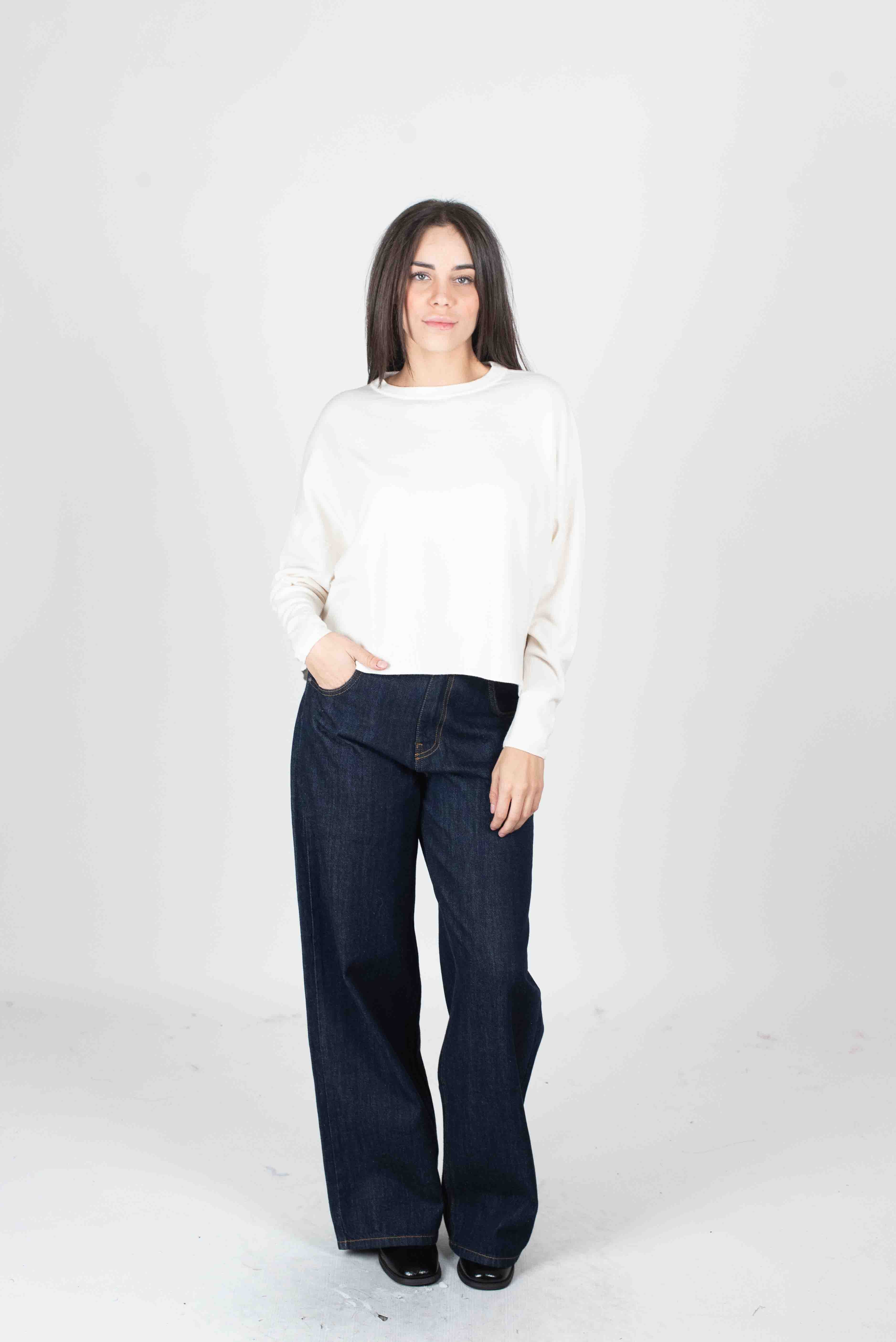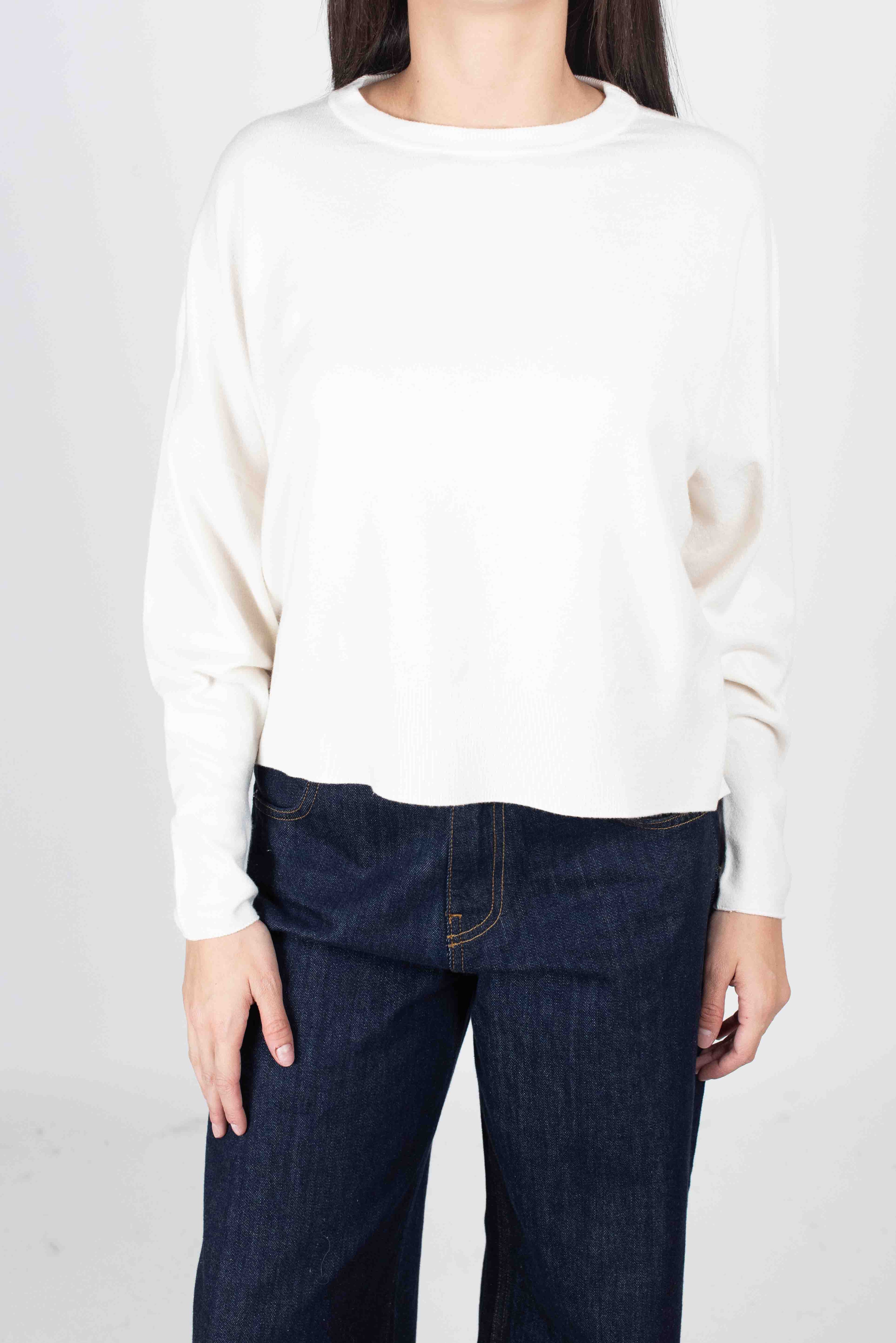 Maglia scatola con manica a pipistrello e cannolè alto.