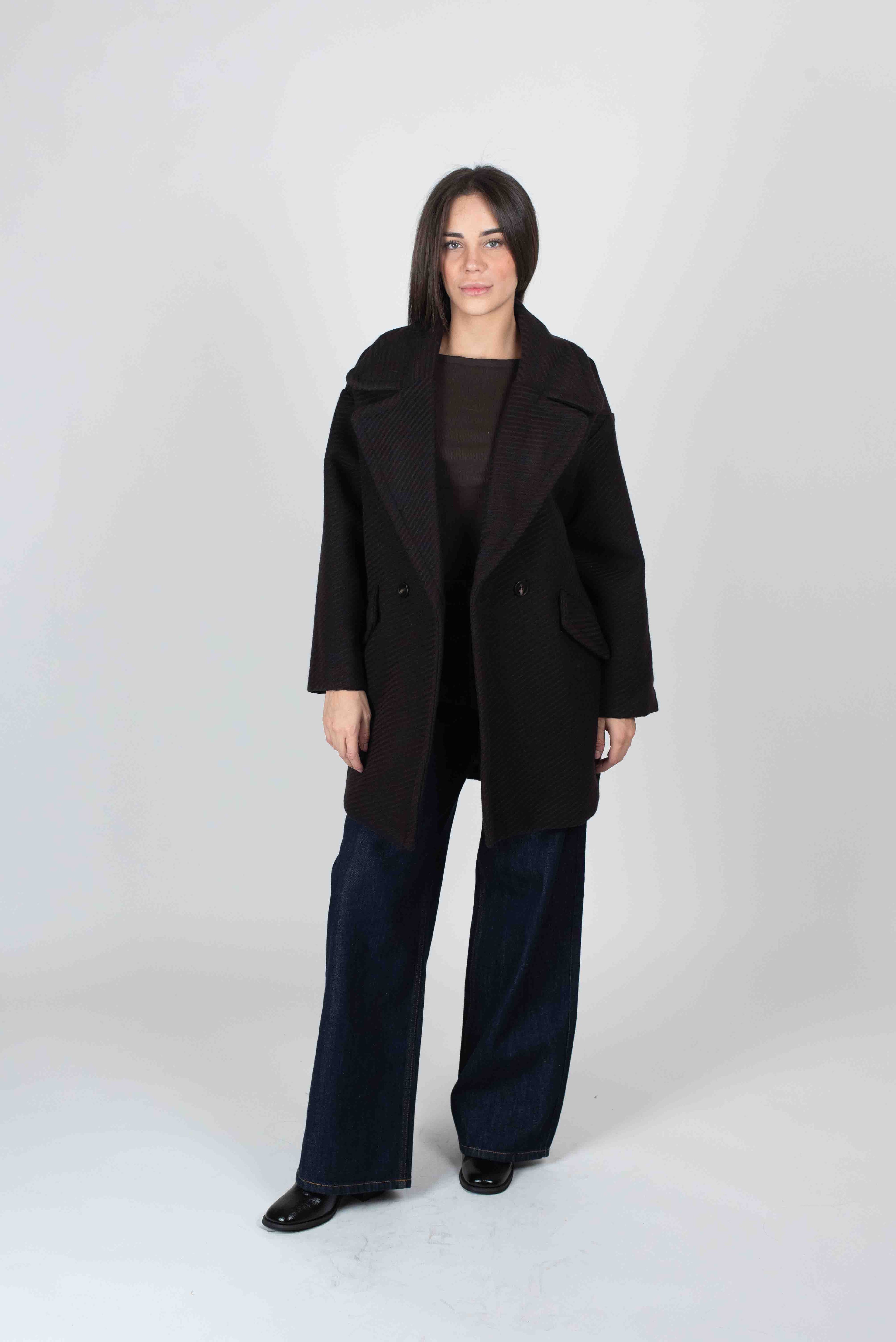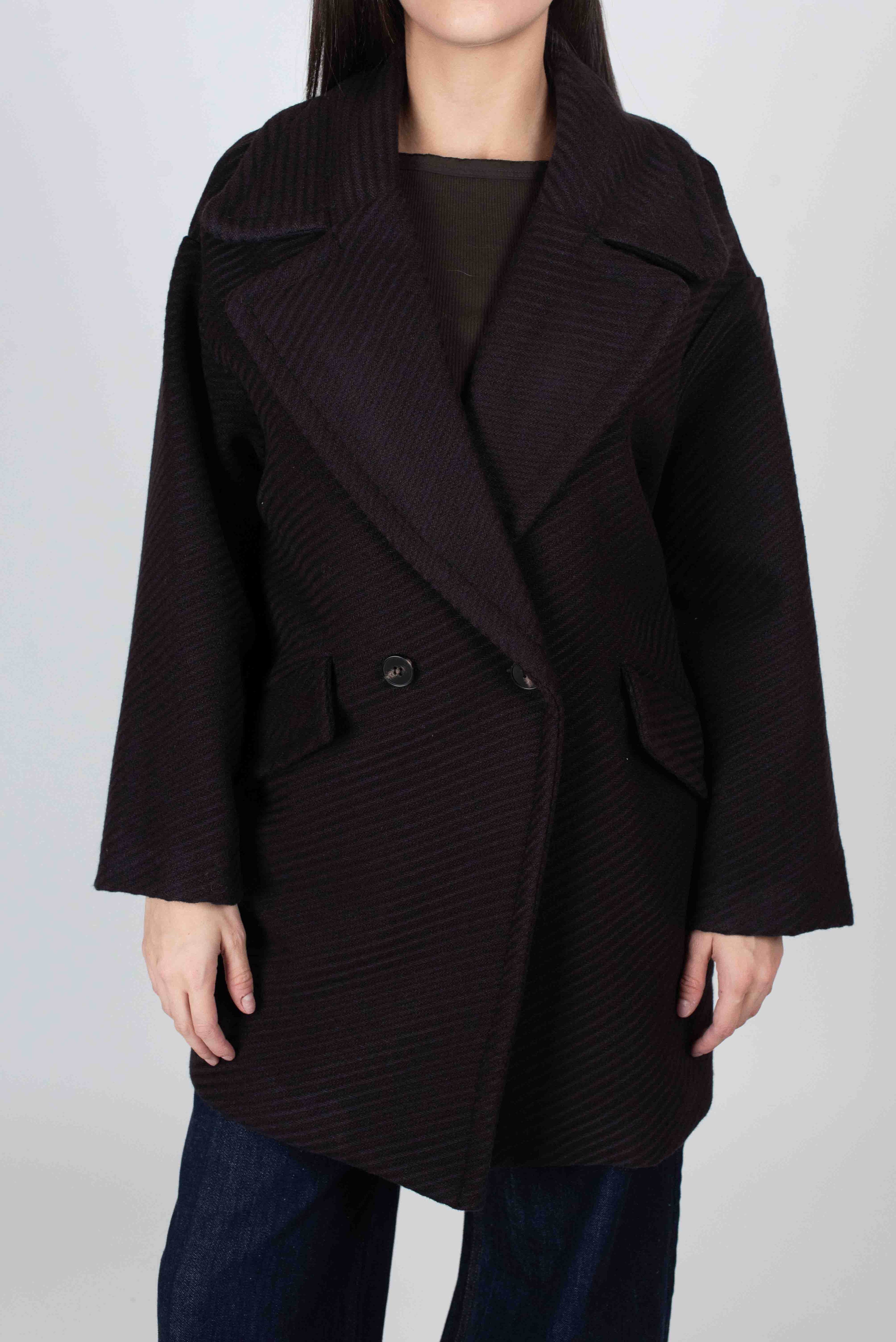 Cappotto doppiopetto con trama obliqua.