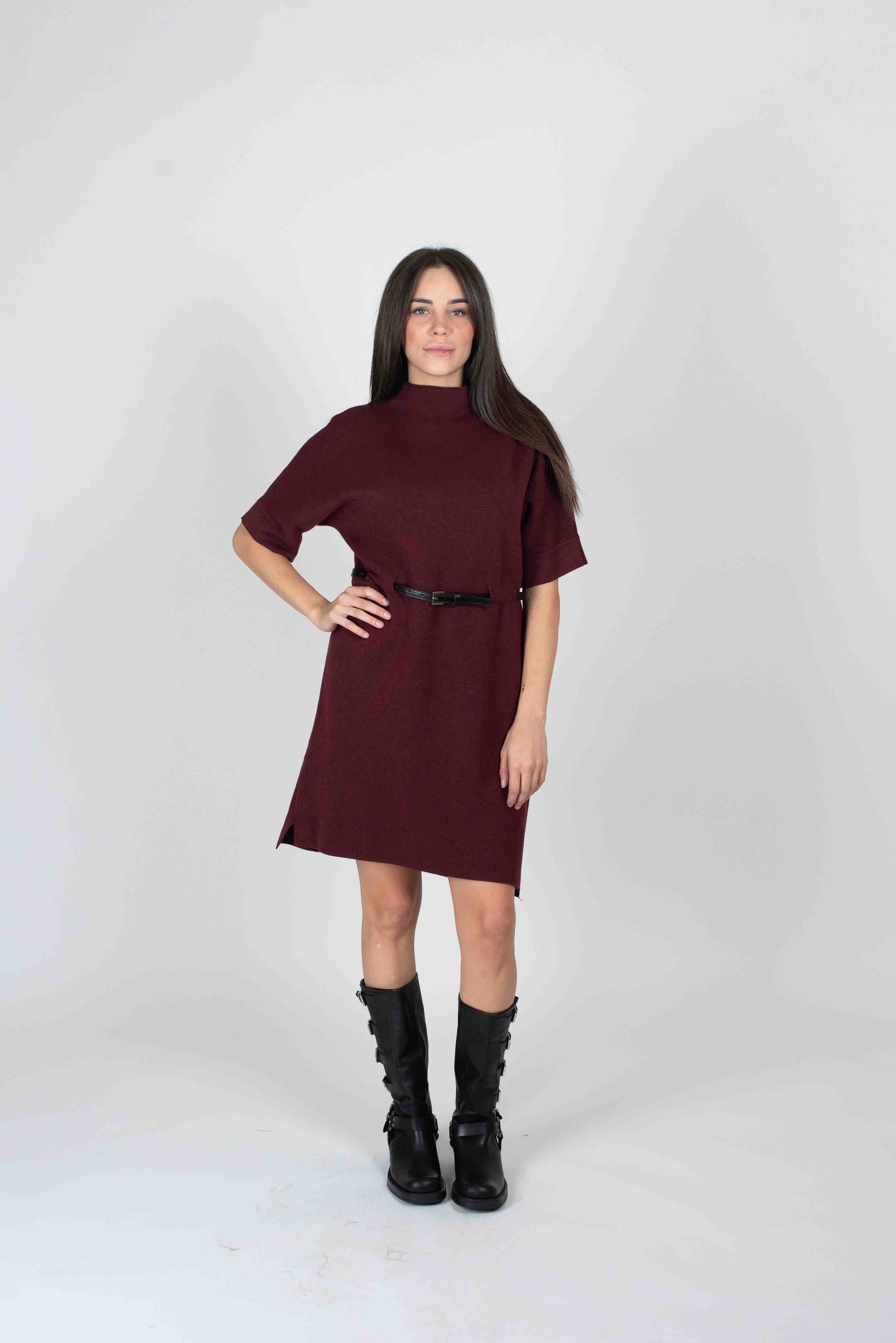 Abito in maglia mezza manica con cintura in vita.