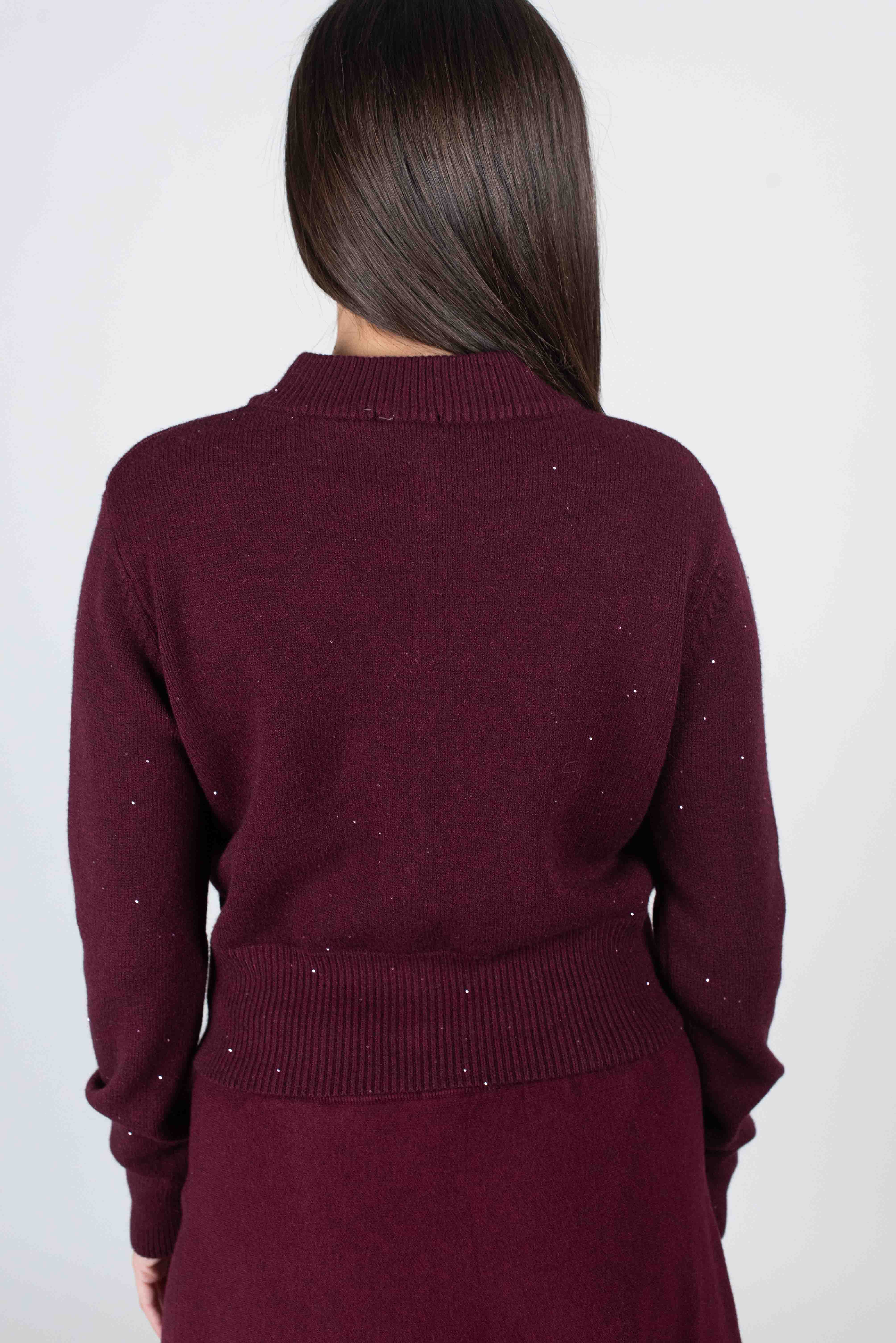 Via Vai Cardigan C/Bottoni Gioiello - BORDEAUX