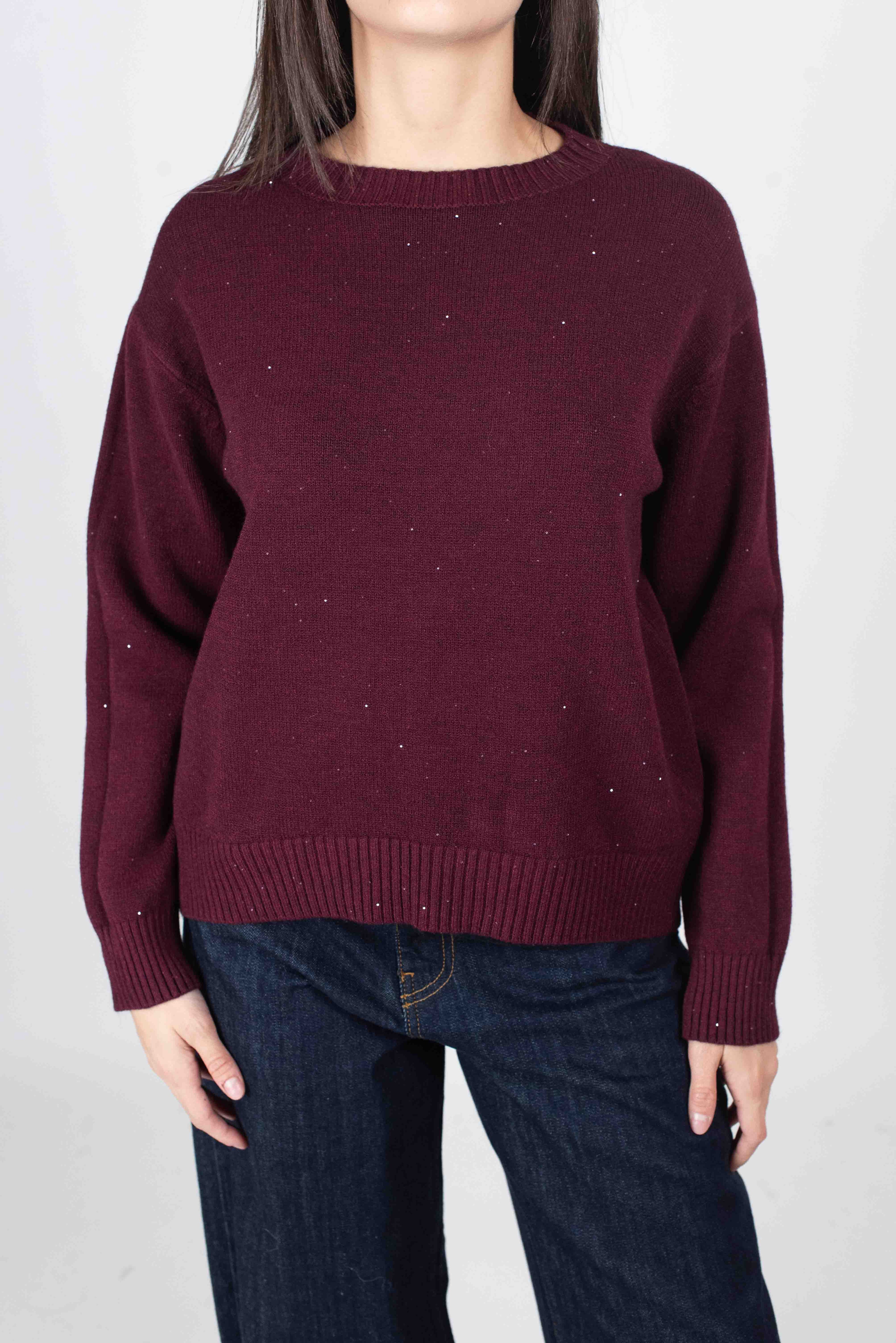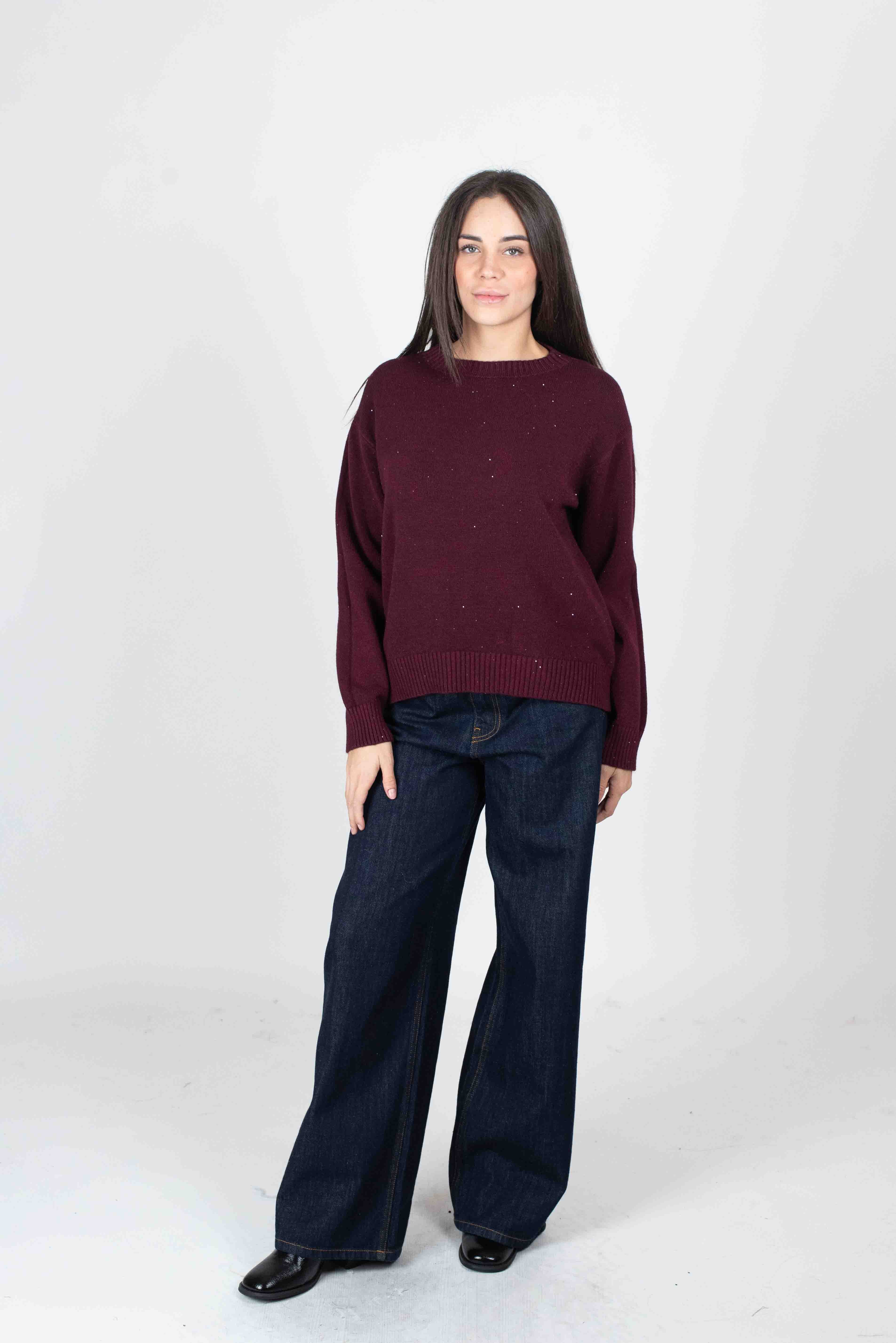 Via Vai Maglia Collo Barca Micro Paillettes - BORDEAUX
