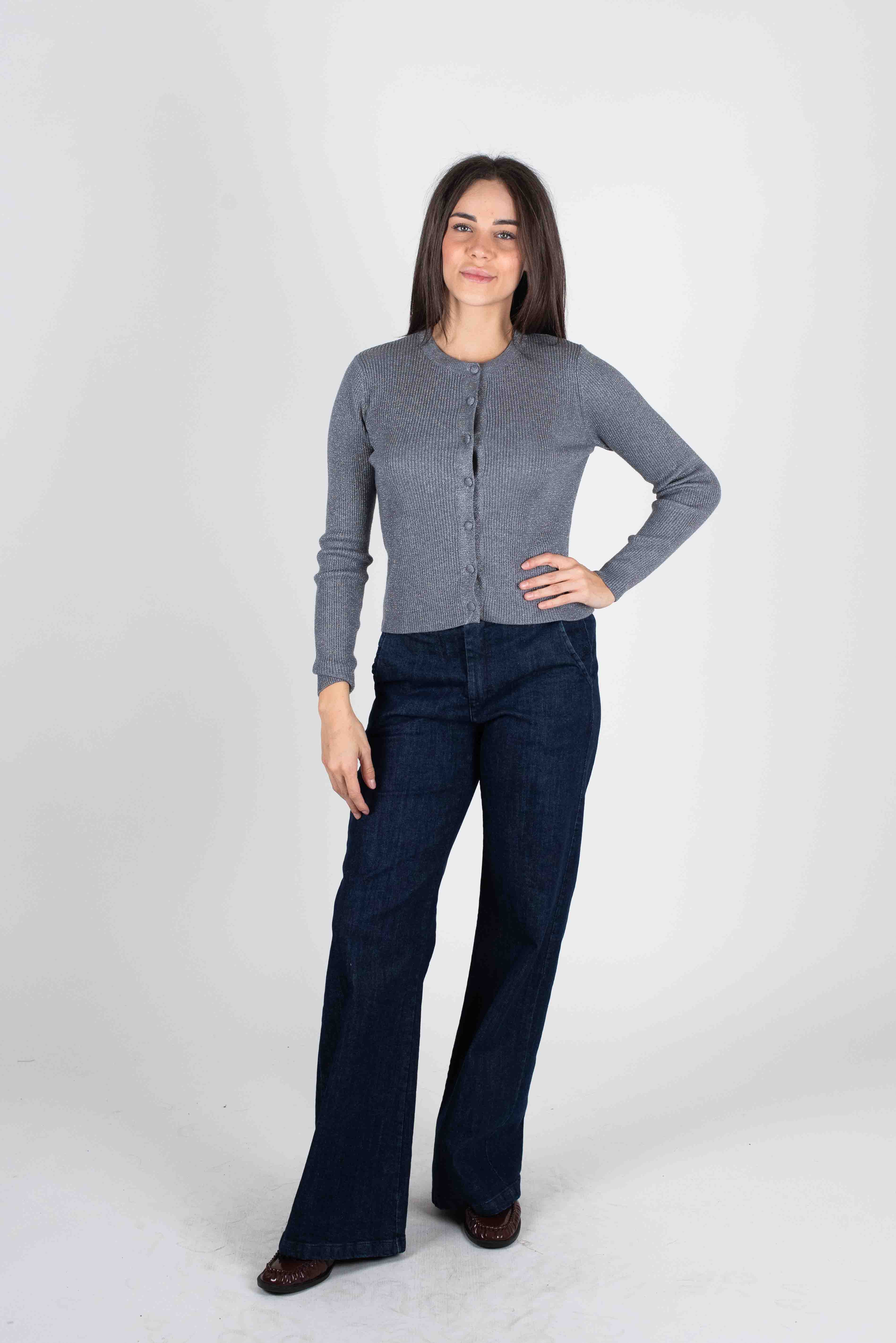 Susy Mix Cardigan Coste Lurex - GRIGIO