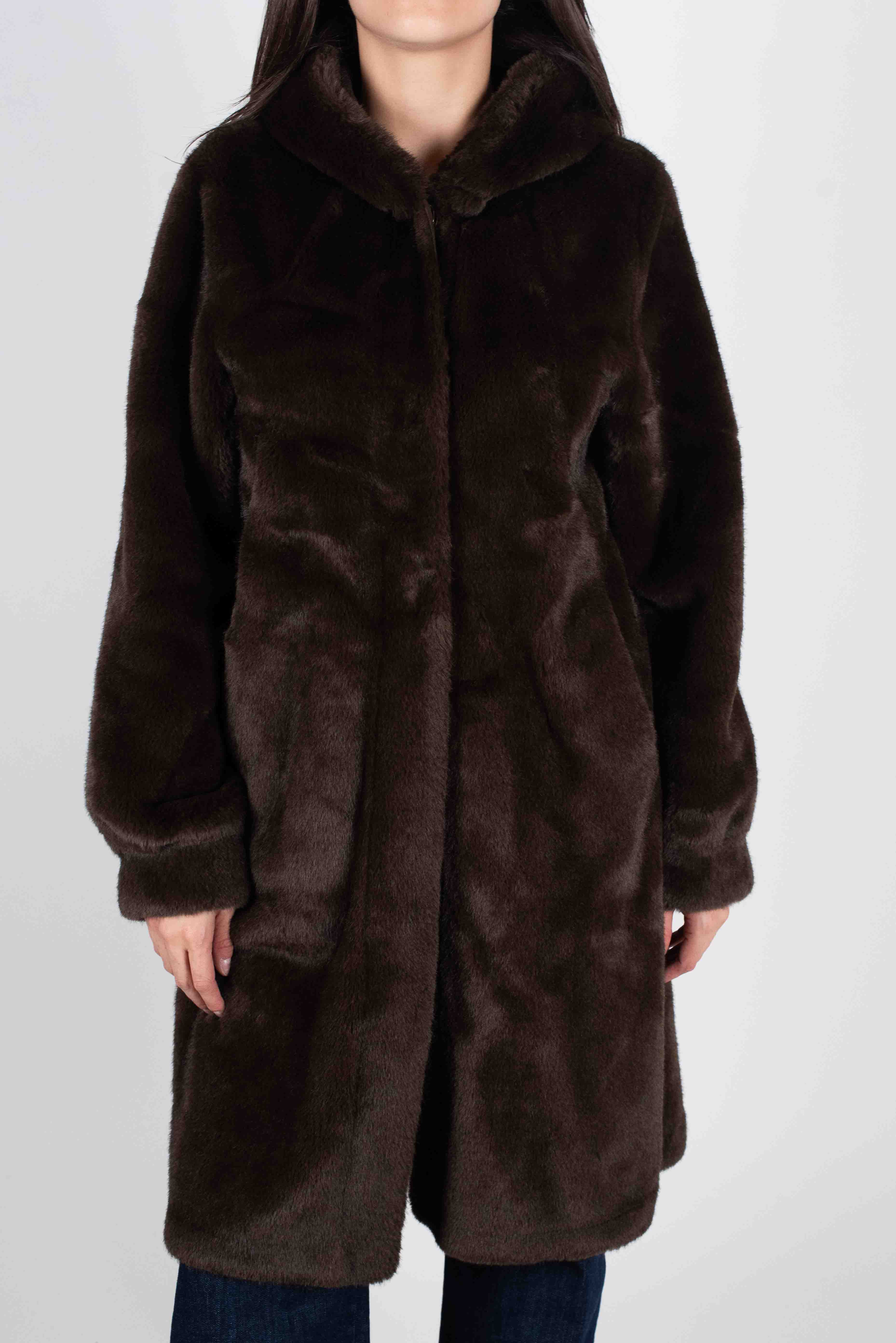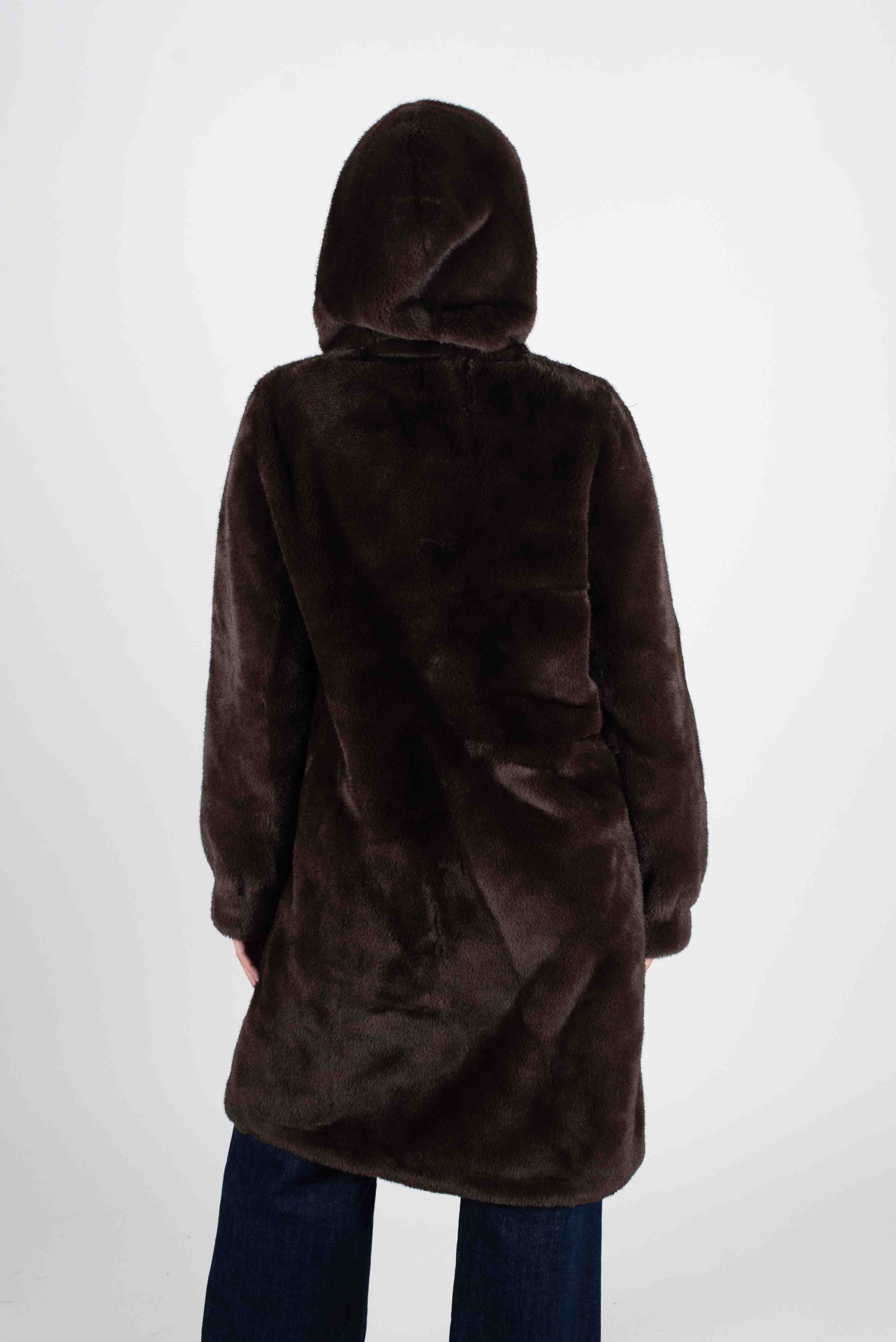 Susy Mix Cappotto Ecopelliccia C/Cappuccio - MORO