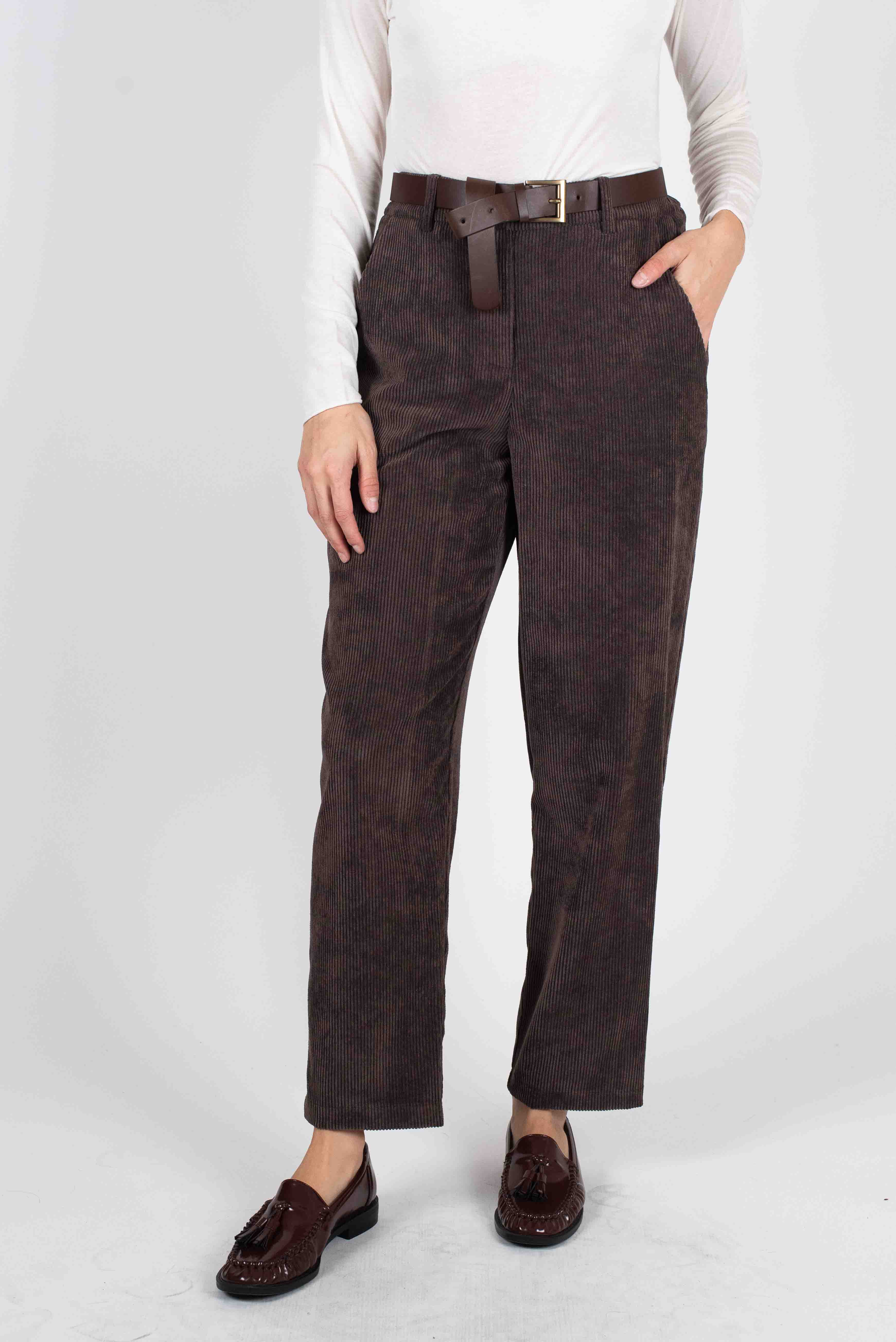 Tensione In Pantalone Velluto Elastico Vita Dietro - MORO