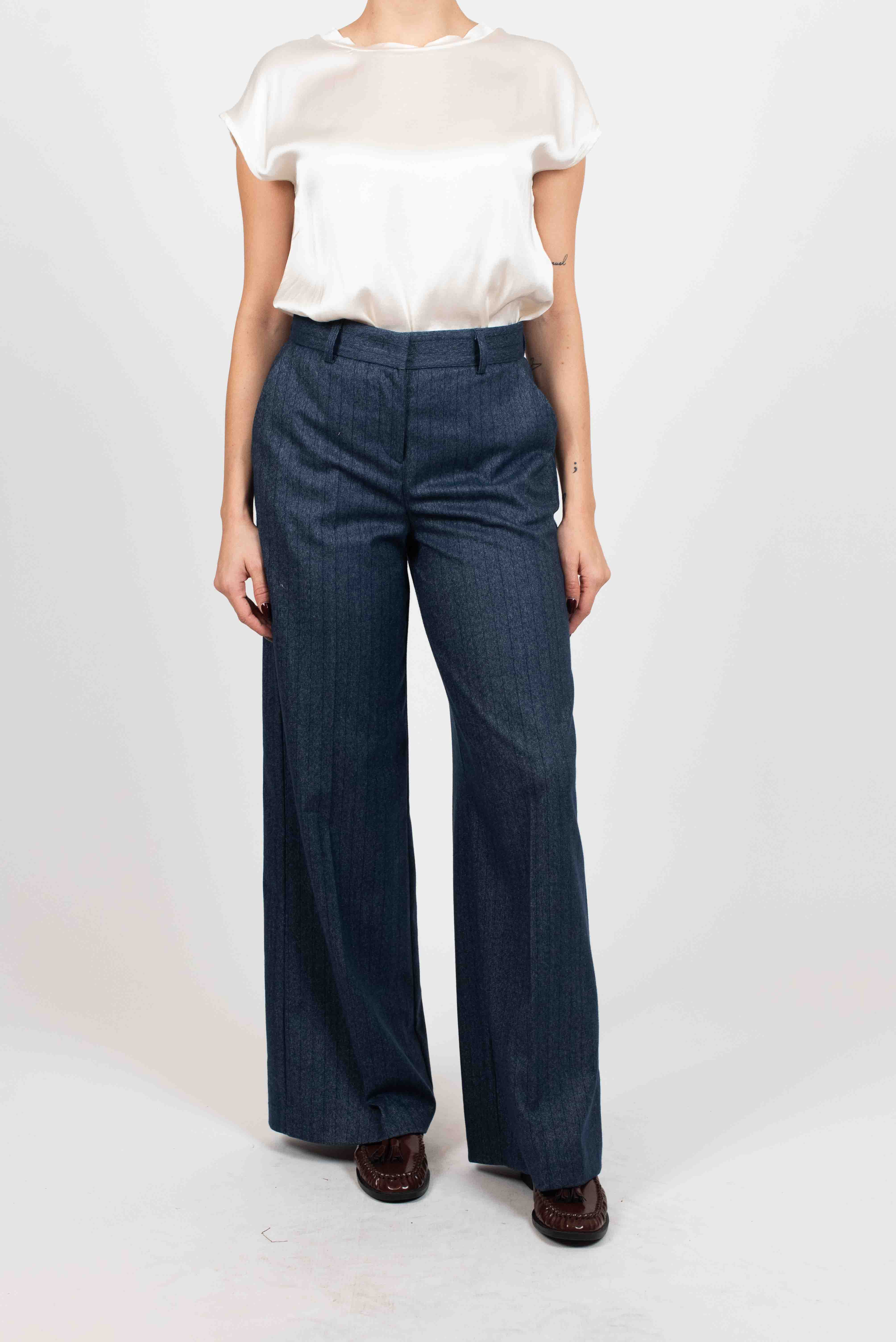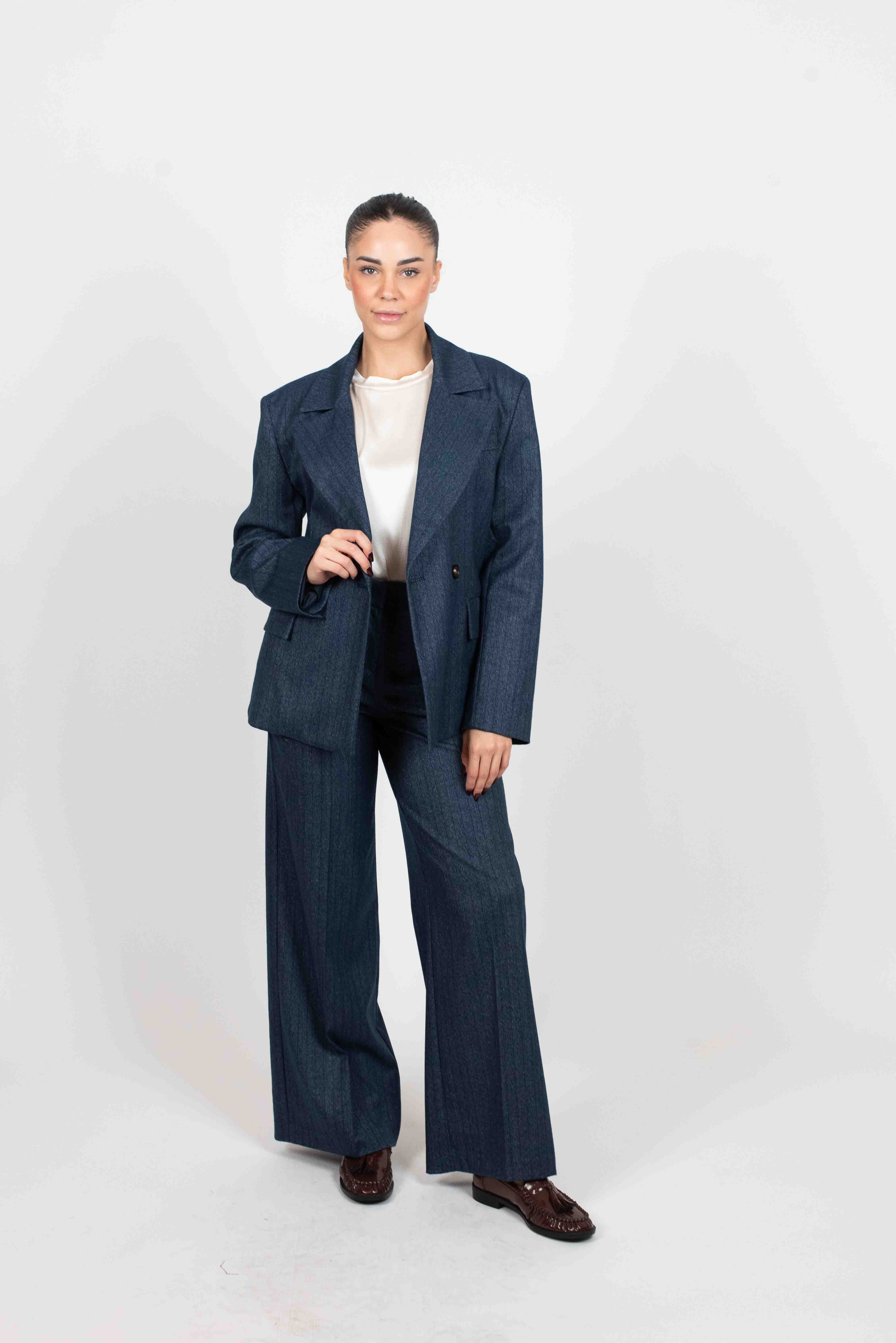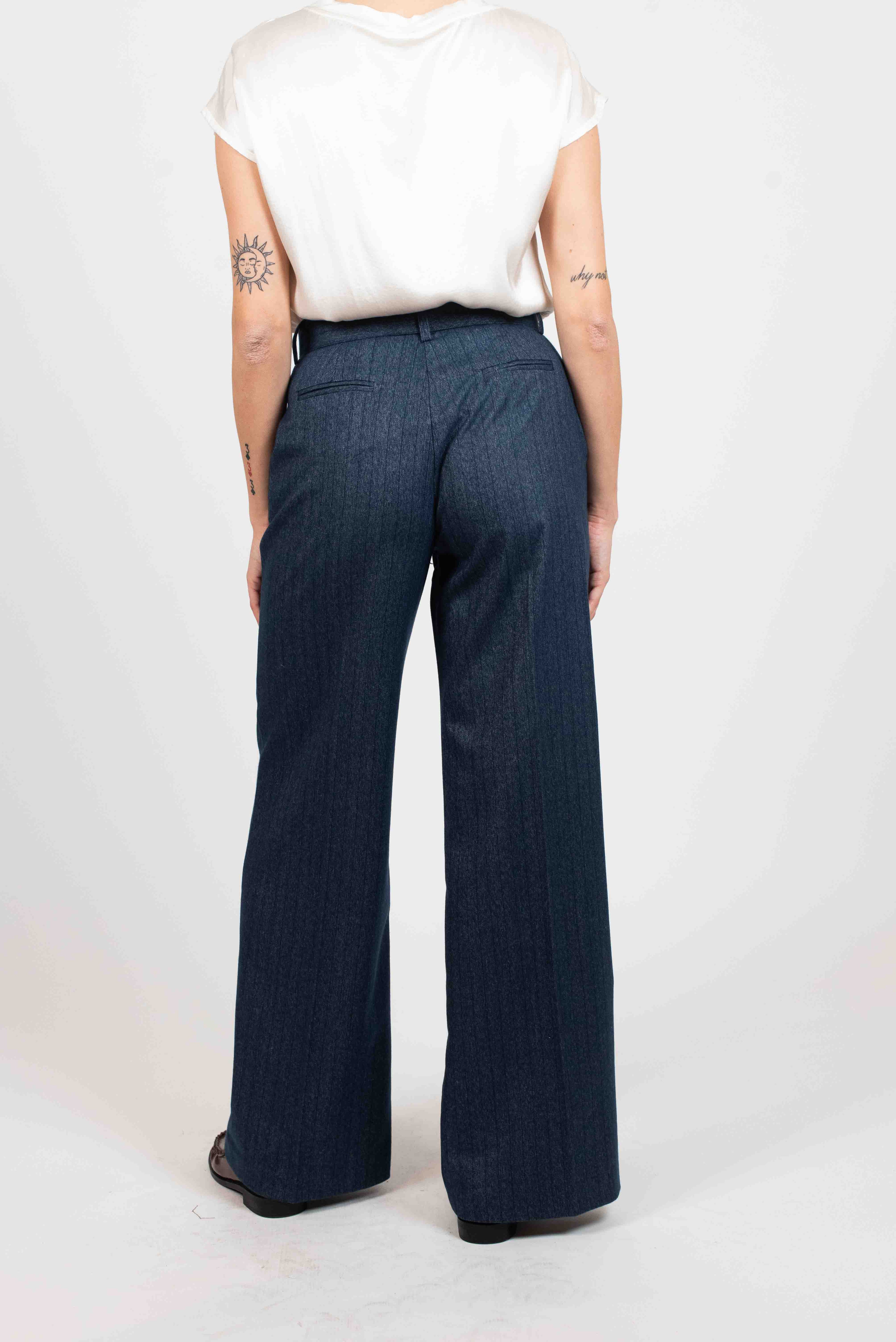 Tensione In Pantalone Palazzo Spigato Gessato - blu
