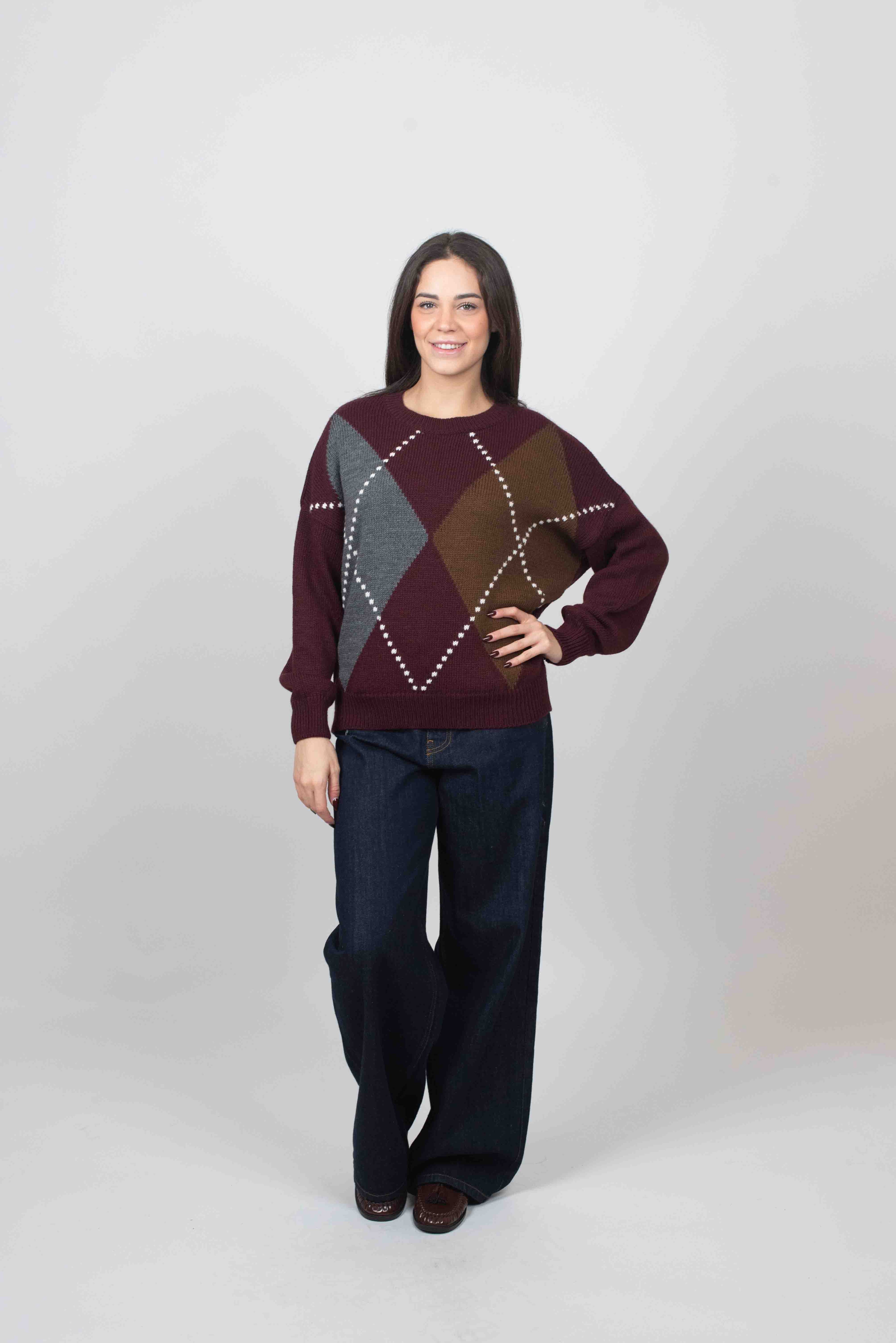 Maglia girocollo fantasia birombo.